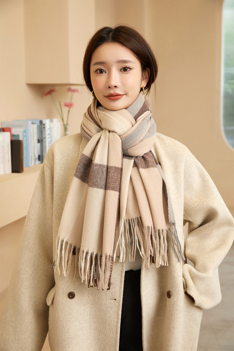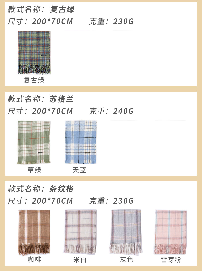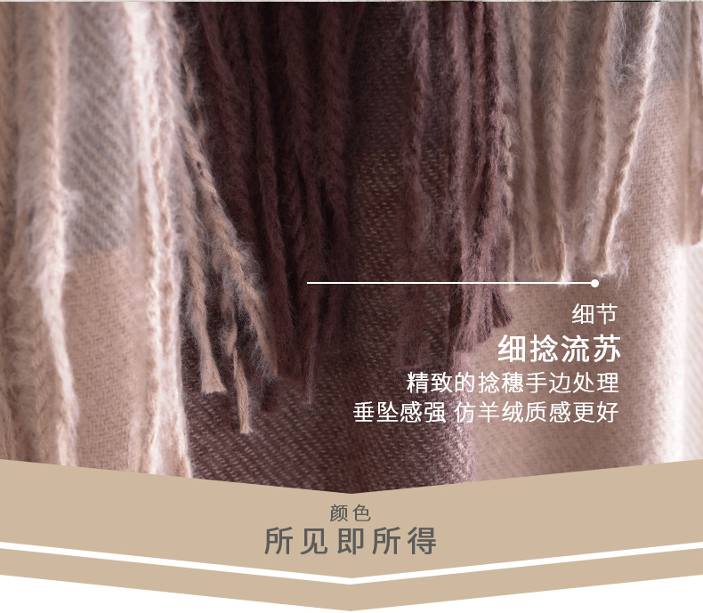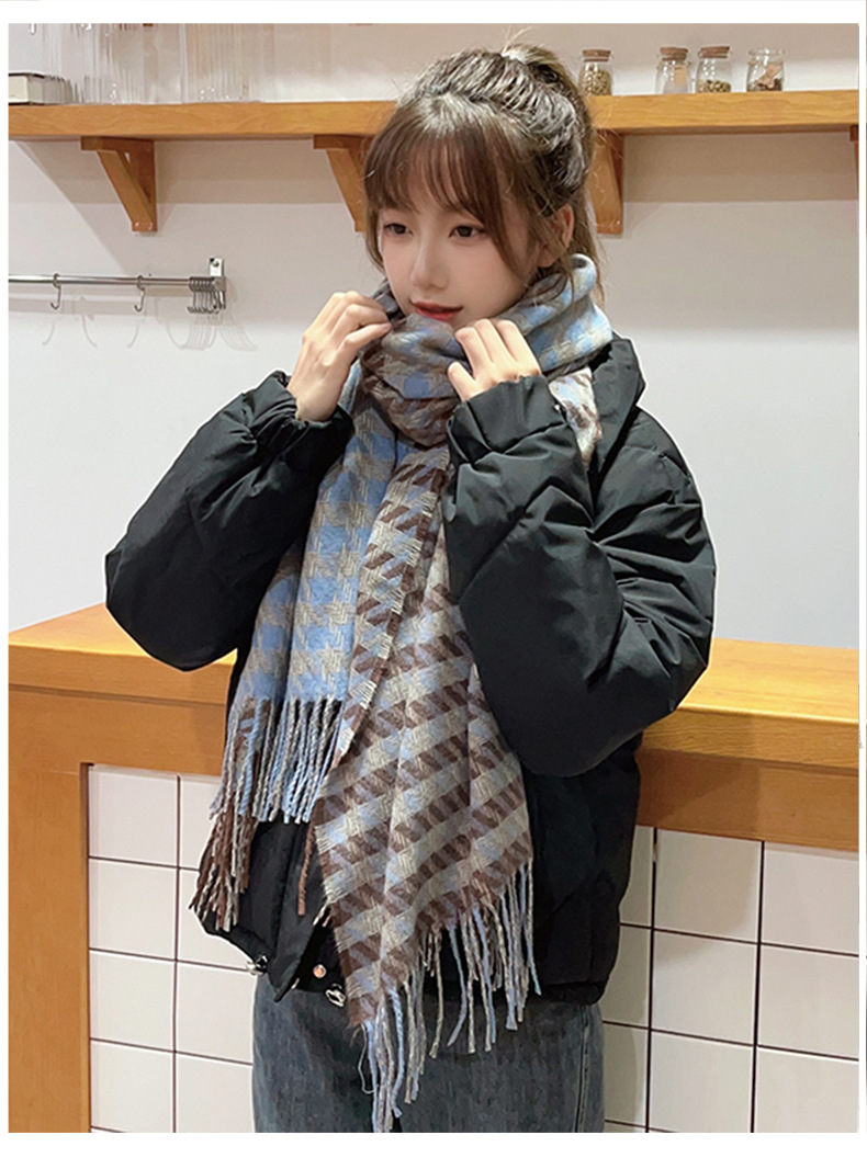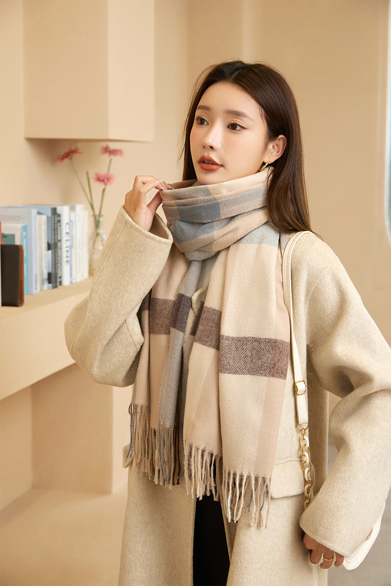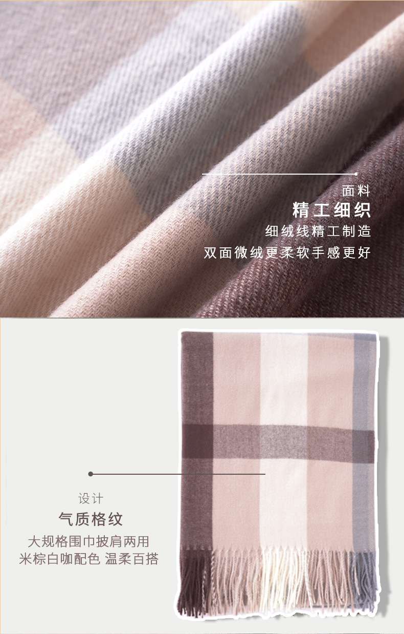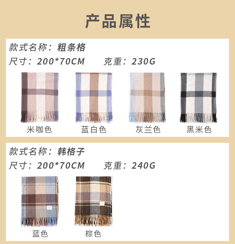 买一送一【新款冬季仿羊绒格子围巾】女款围巾披肩韩版百搭流苏围脖 保暖不怕冷柔软舒适不起球