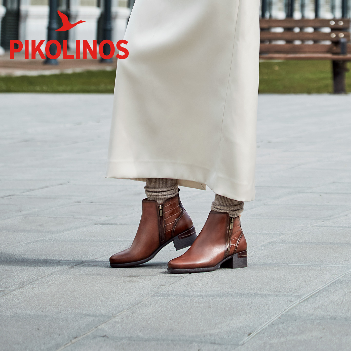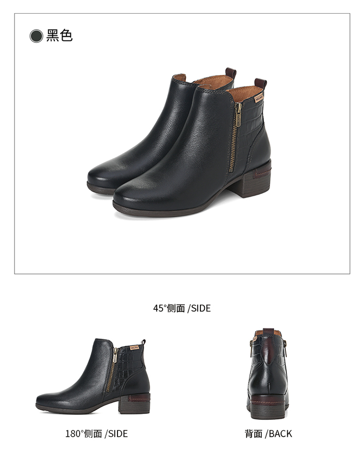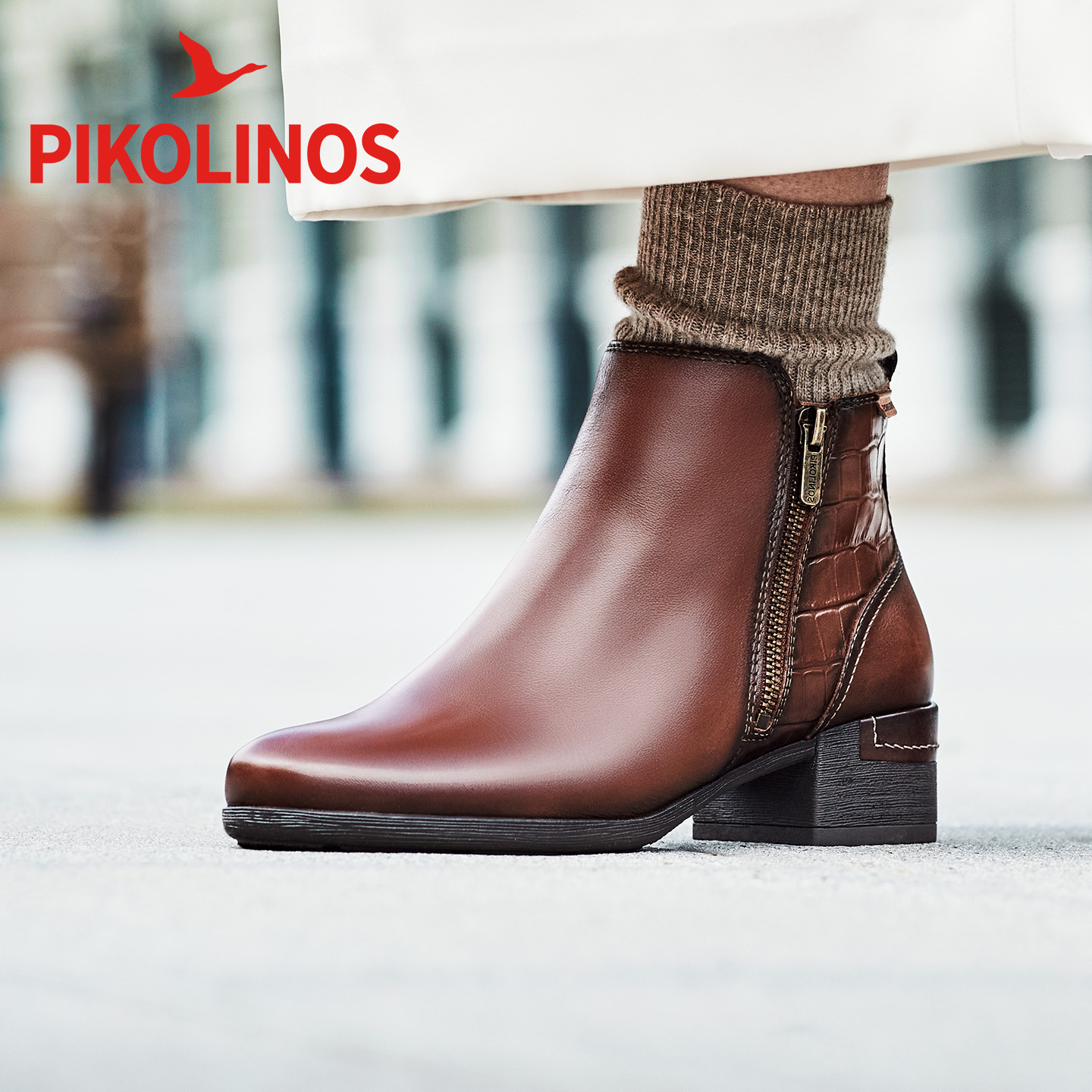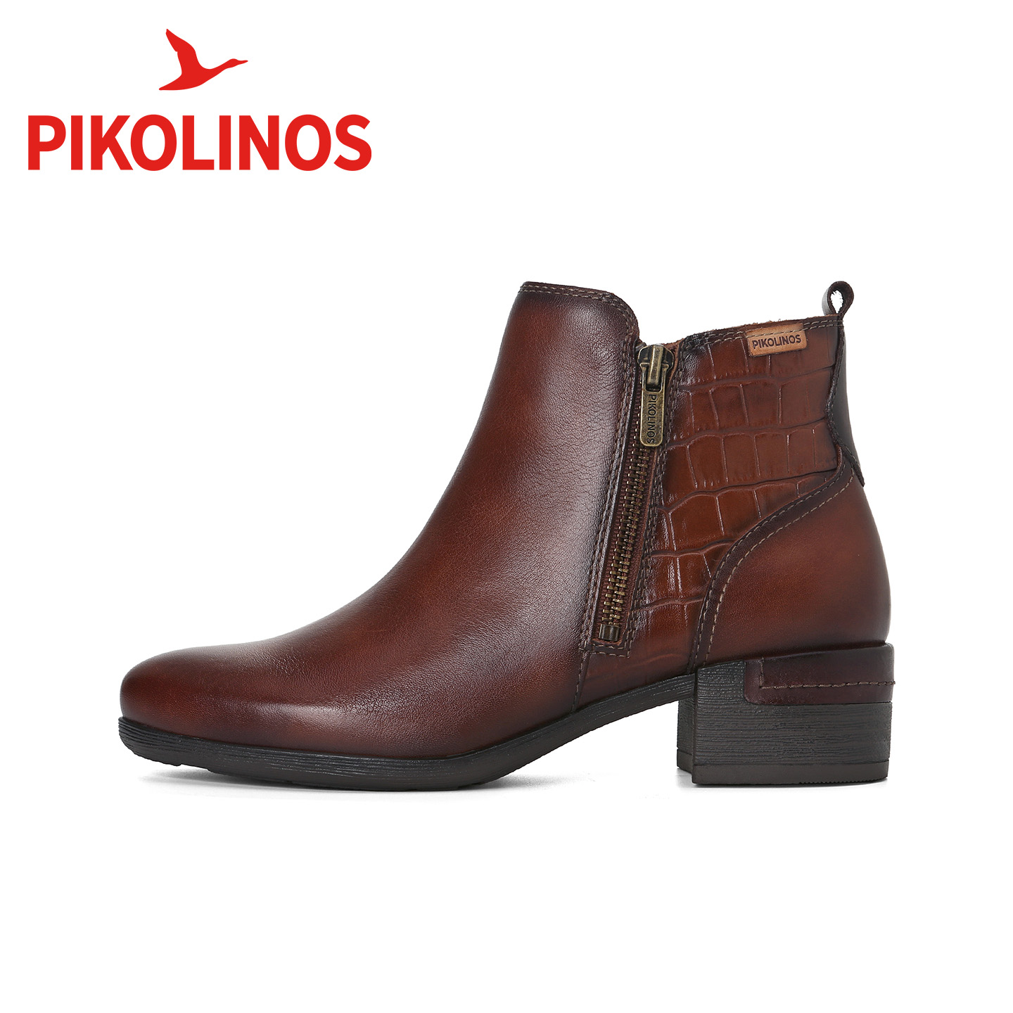【云粉节】BF楼Pikolinos派高雁冬季牛皮拼色牛皮圆头中粗跟时尚短靴PA252715.吊牌价2880