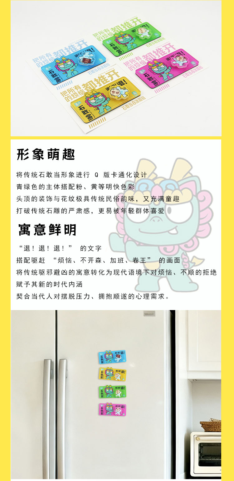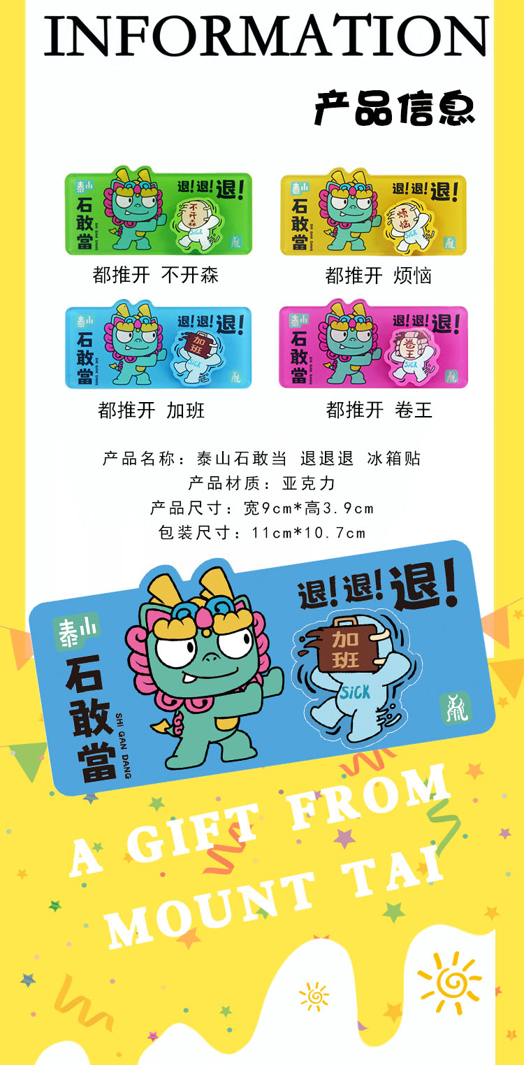 Tai集泰山文创冰箱贴石敢当卡通萌兽可旋转打工人减压挡小人神器