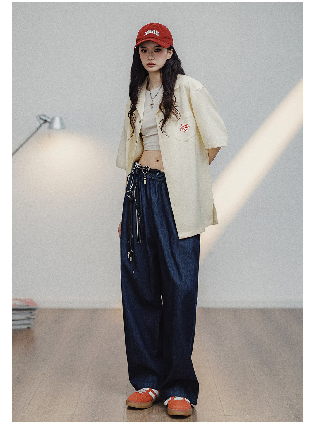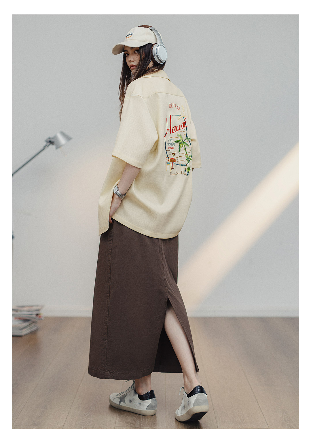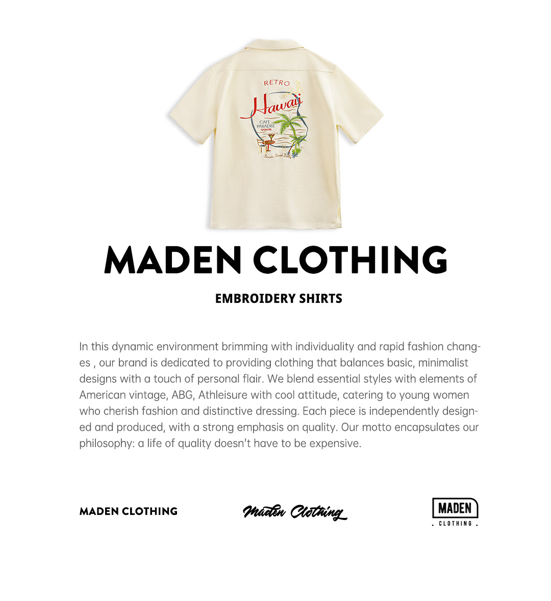 马登夏威夷风刺绣衬衫设计感宽松休闲T恤美式复古短袖衬衣夏季女