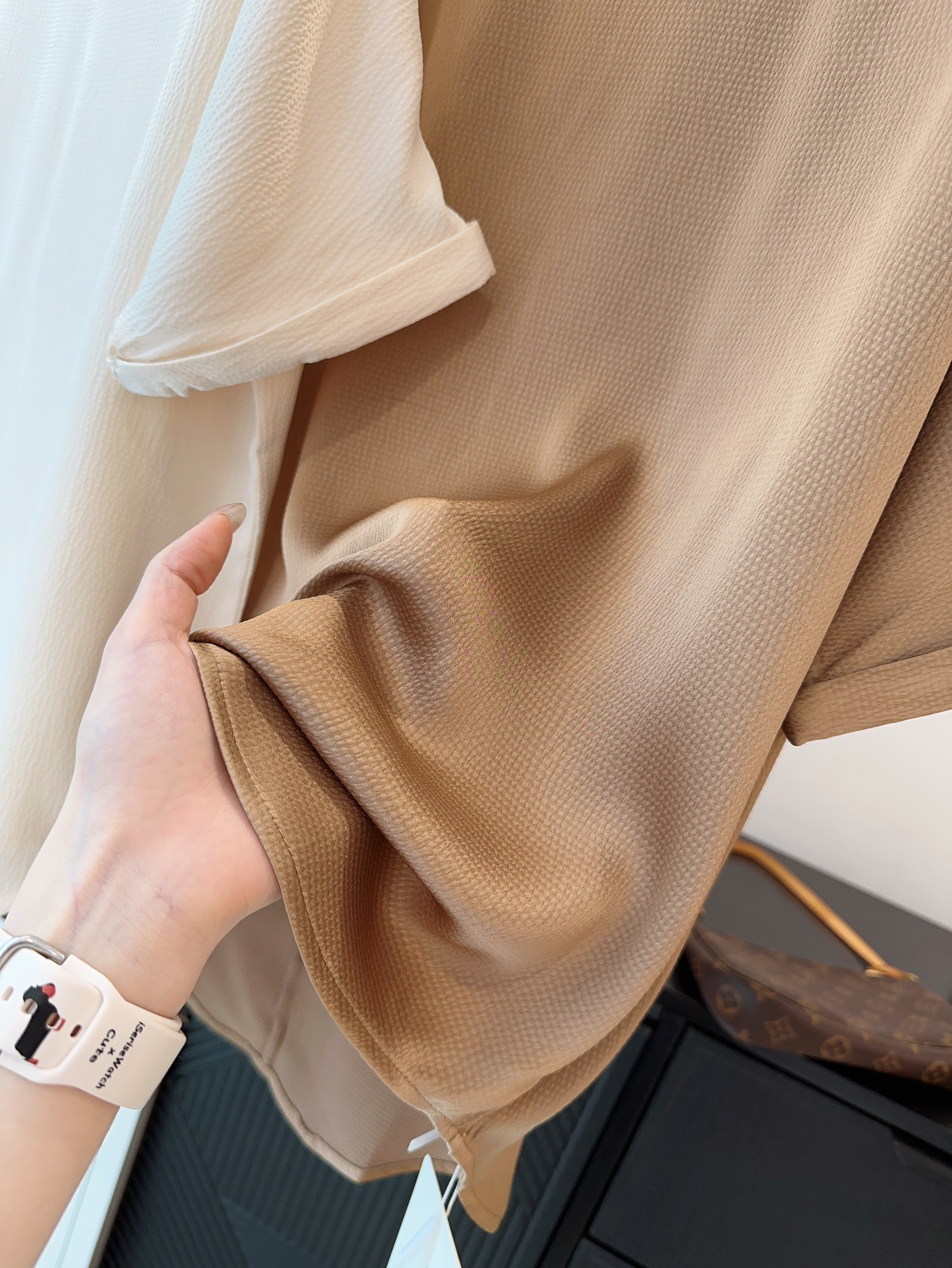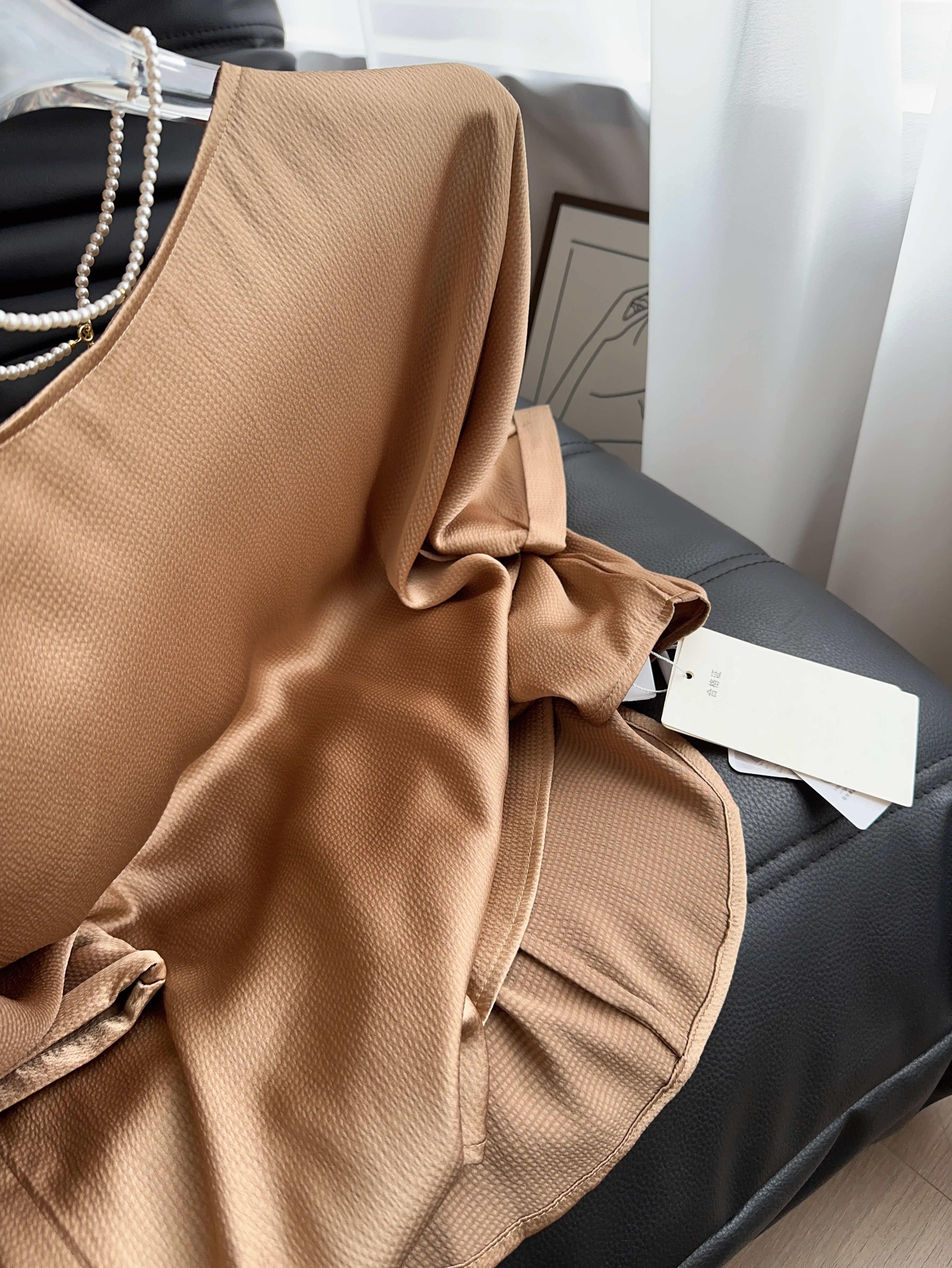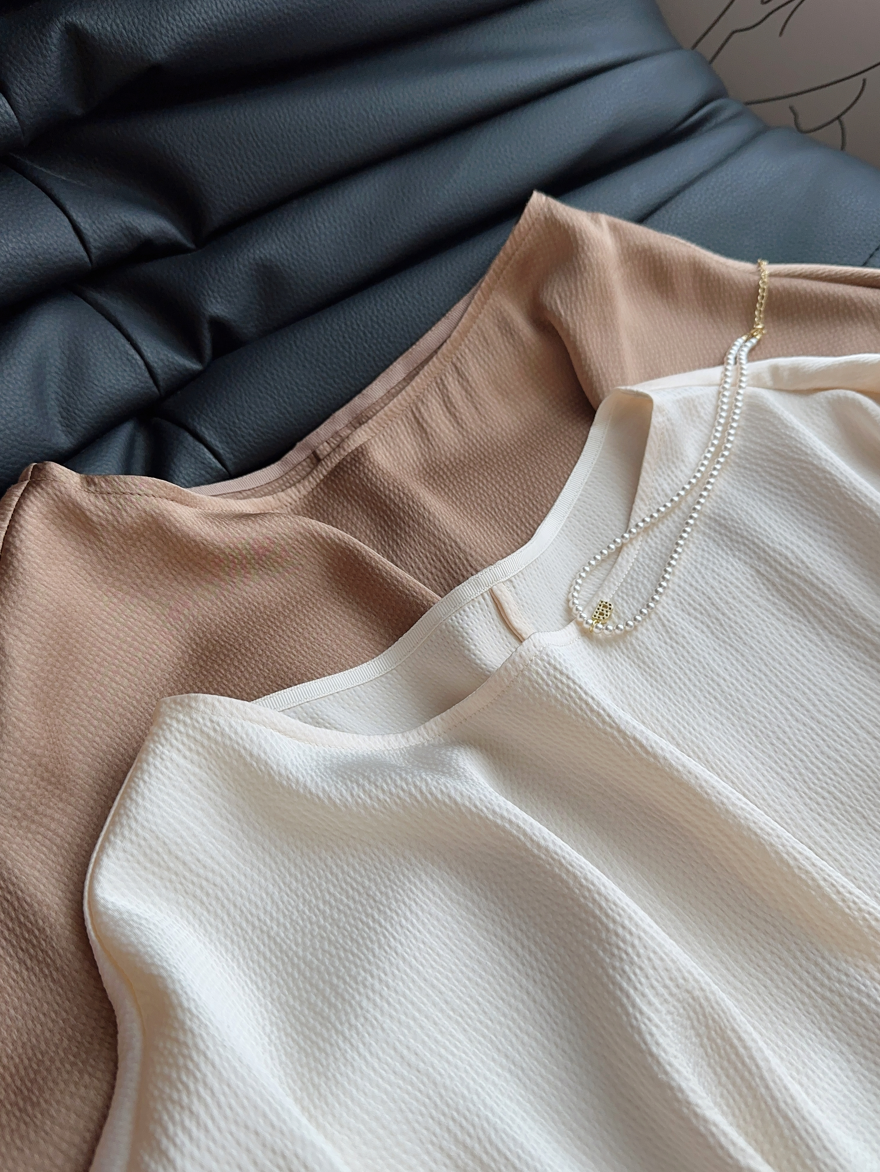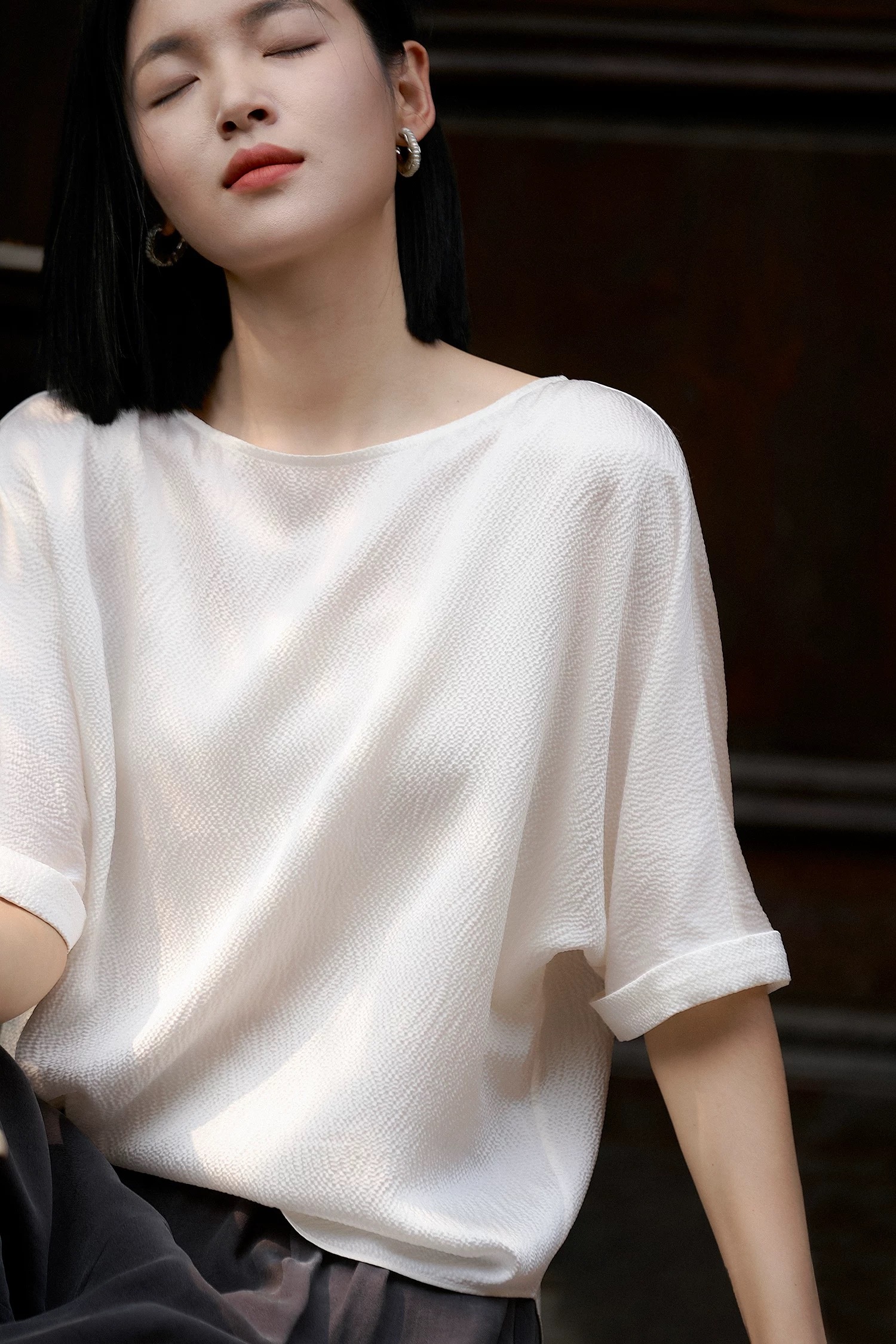 高级珍珠缎真丝面料,泛着珍珠般的莹润光泽, 触感细腻丝滑,宛如第二层肌肤般舒服!