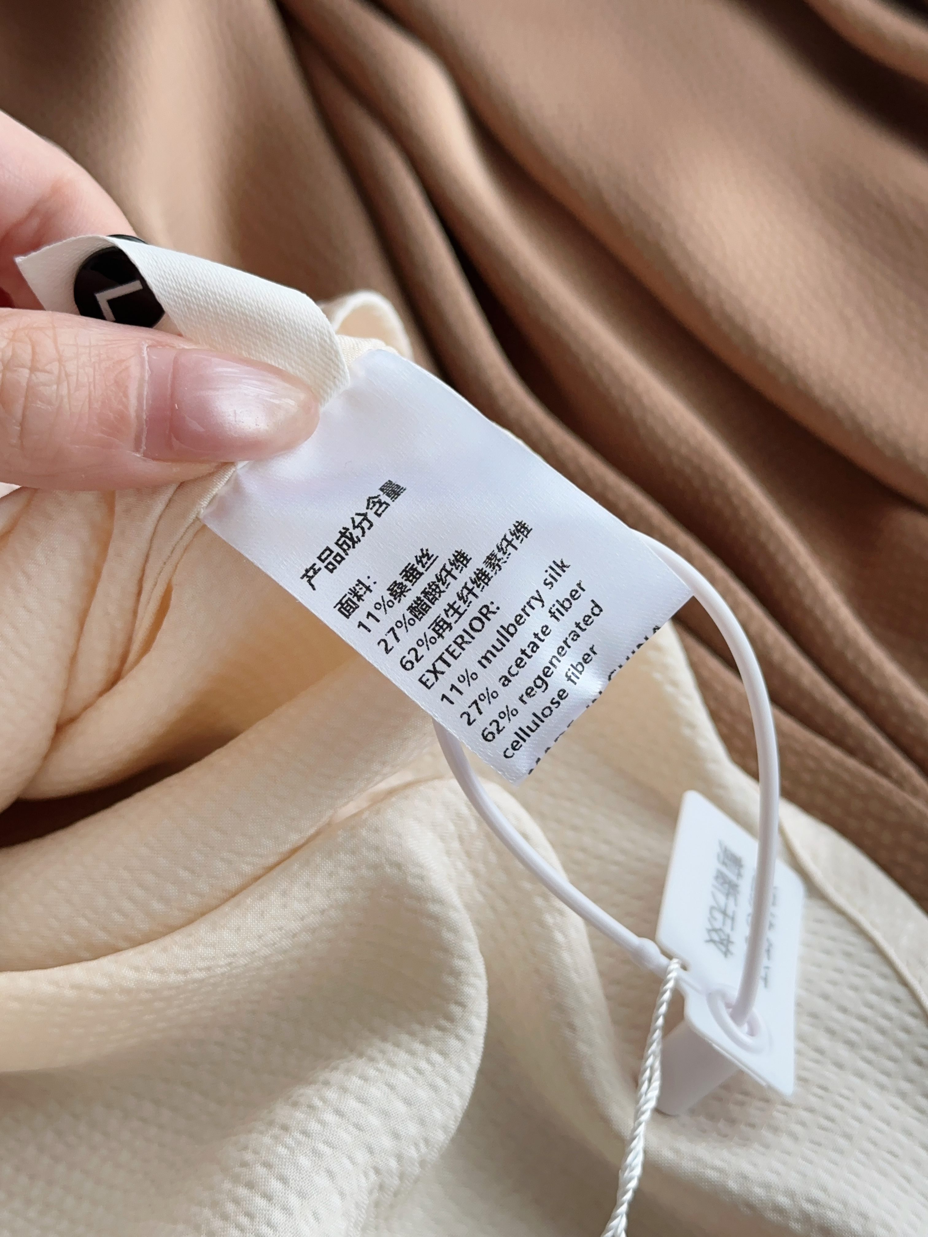 11%桑蚕丝➕️27%醋酸纤维➕️62%再生纤维素纤维三种王牌面料加持~