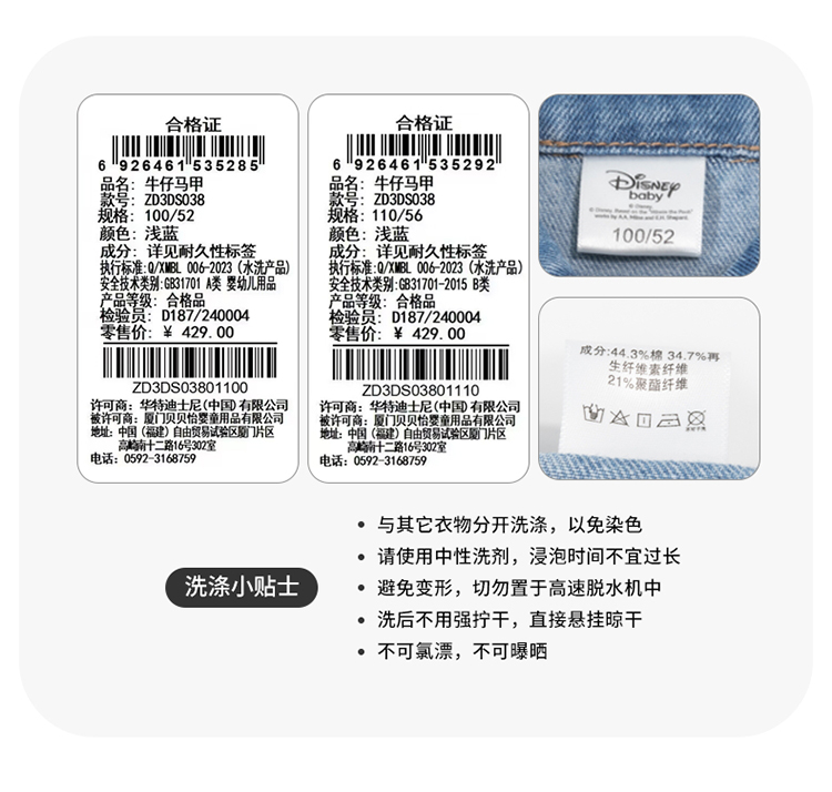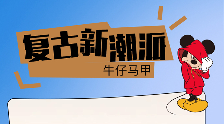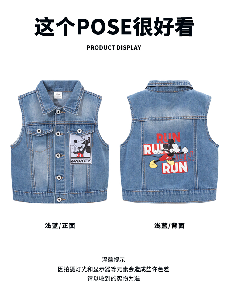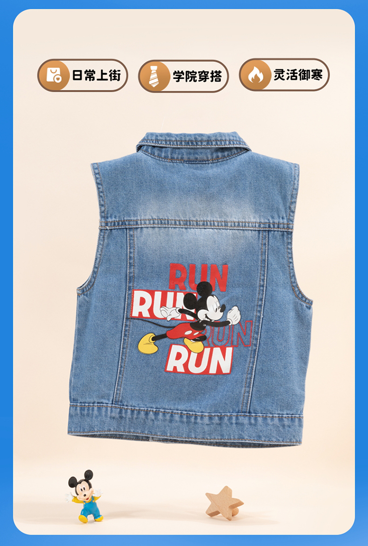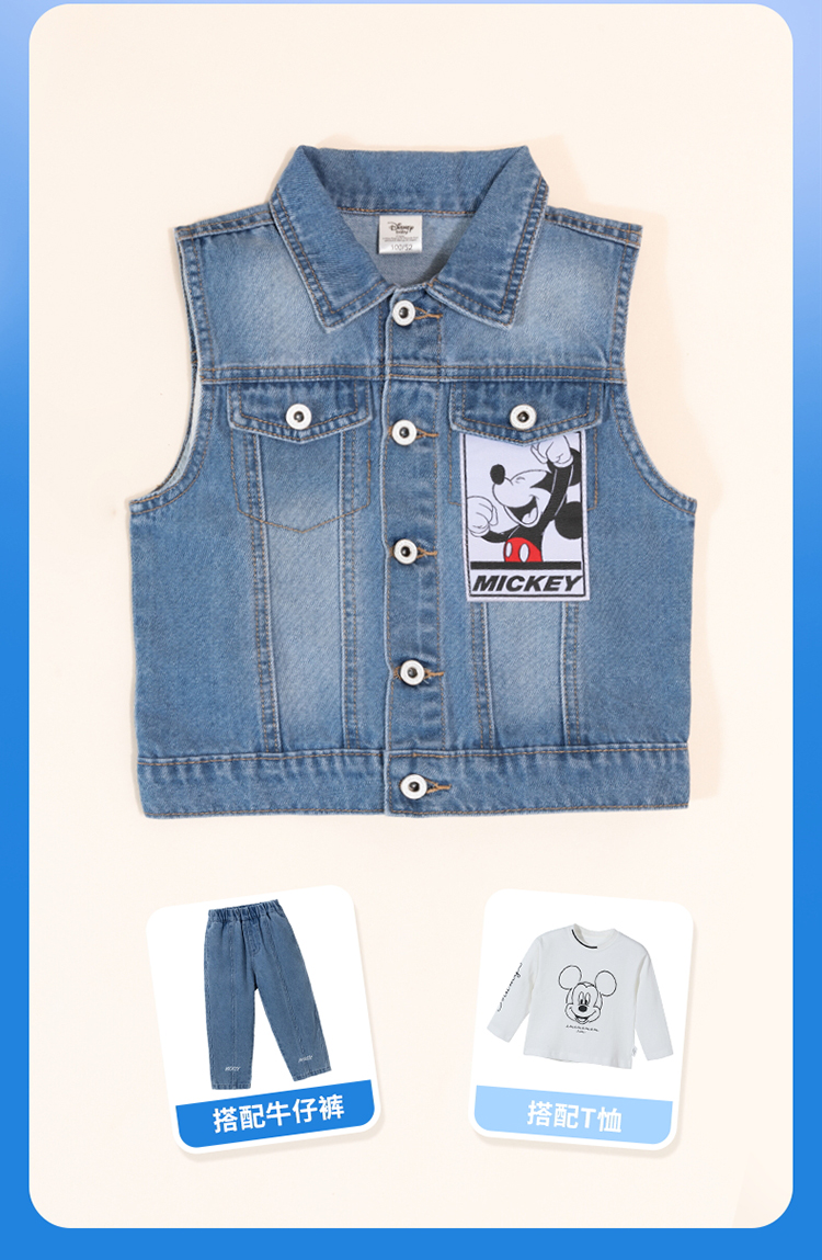 迪士尼童装男童马甲复古潮酷米奇牛仔马甲ZD3DS038