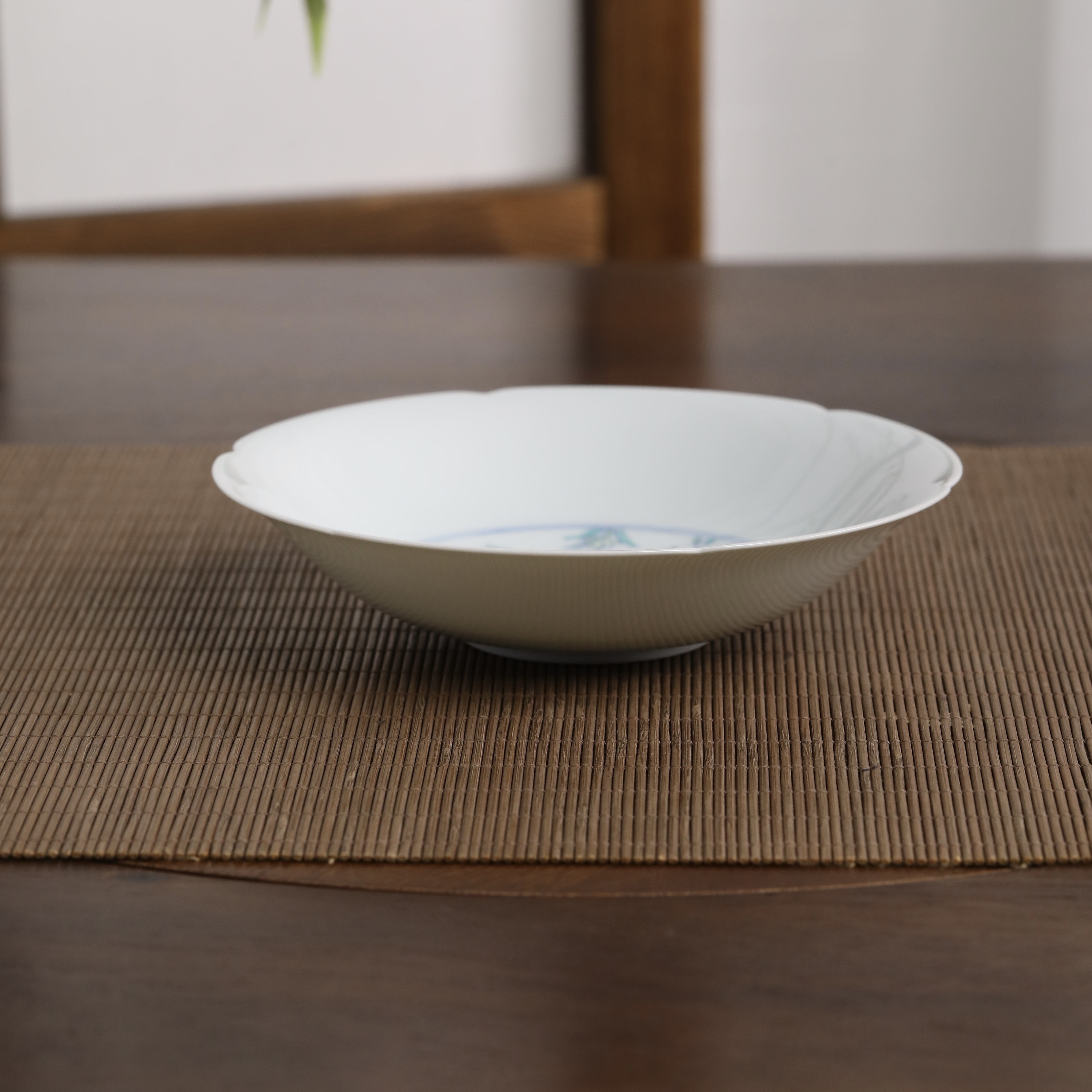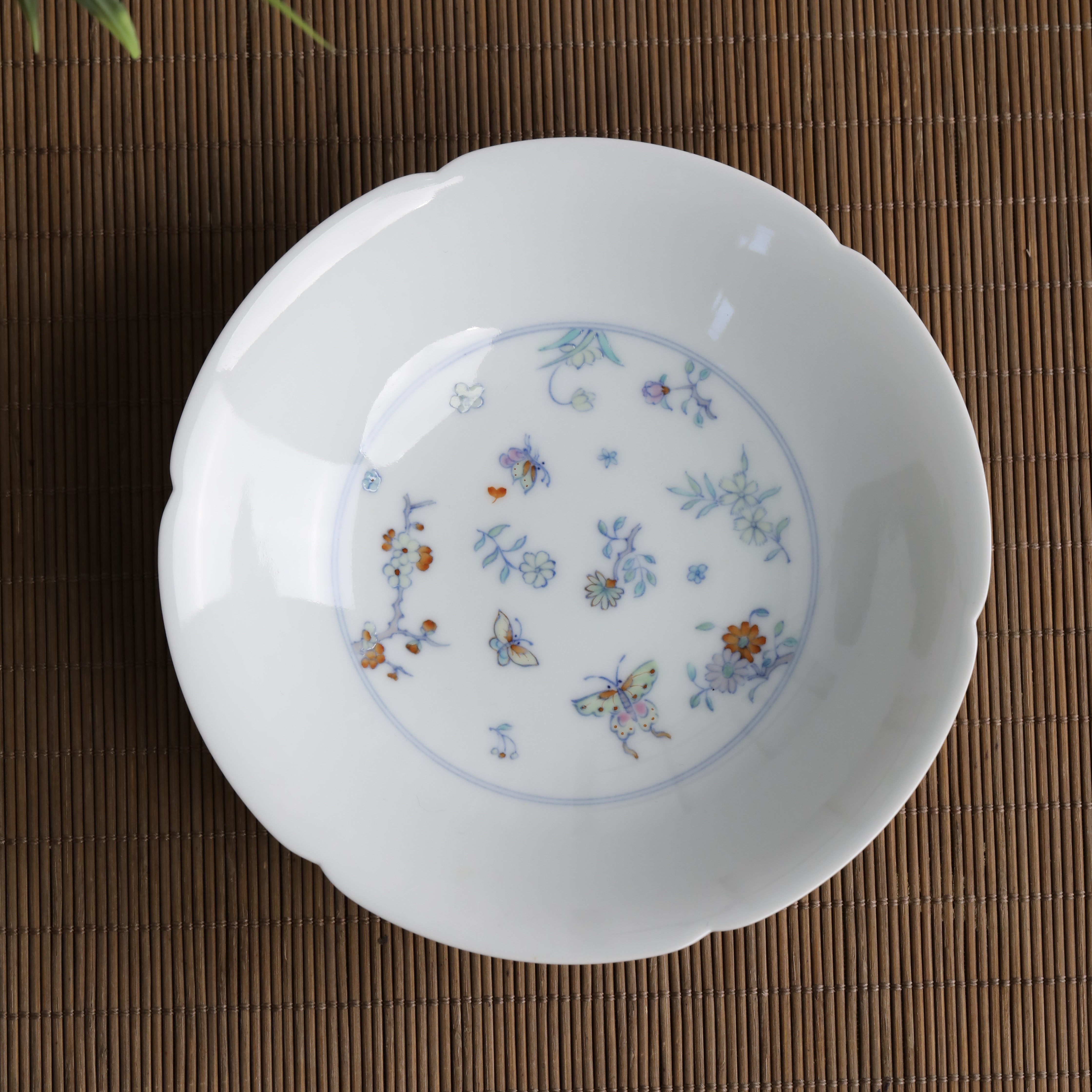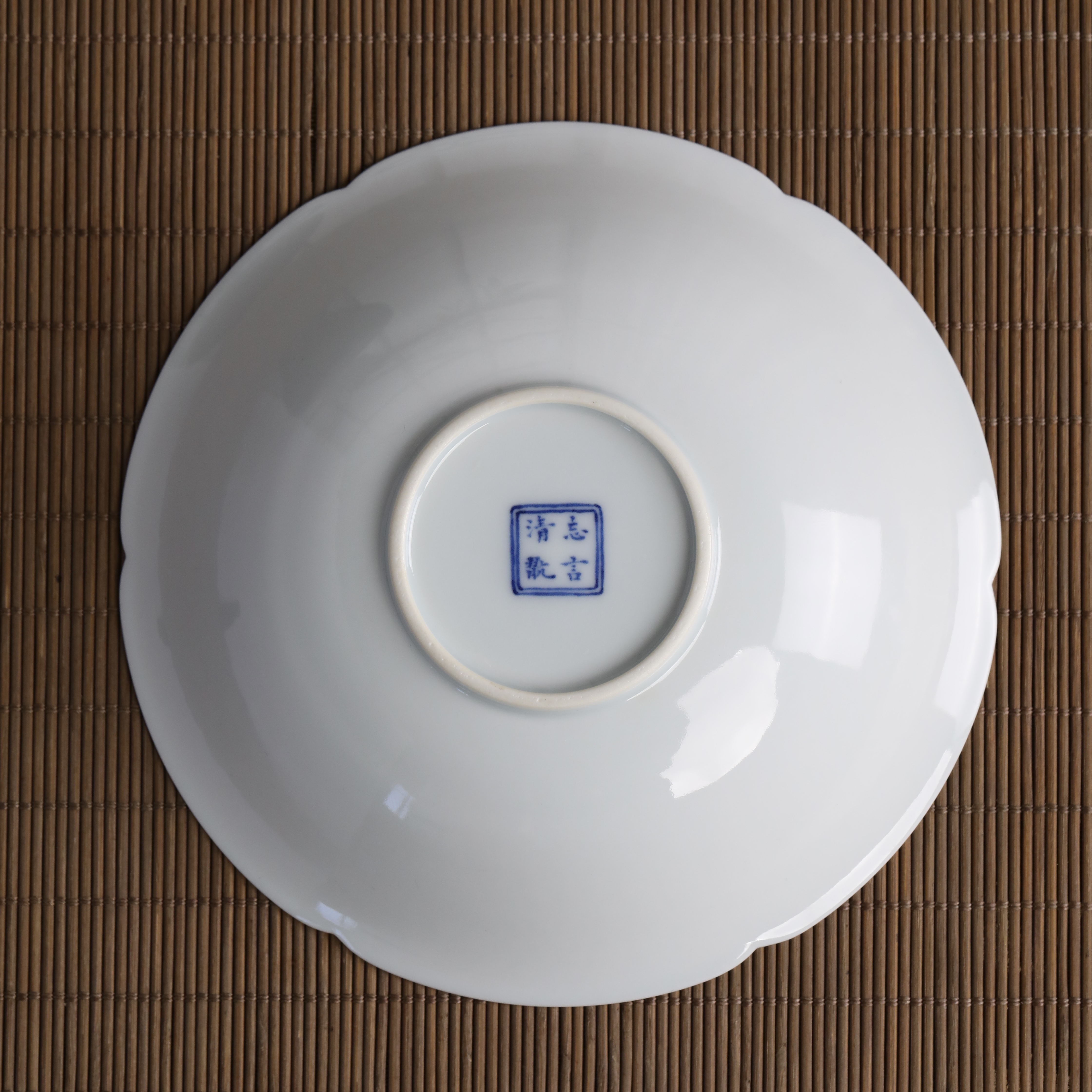 宋瓷影青浅盘半刀泥刻绘花纹 花开富贵