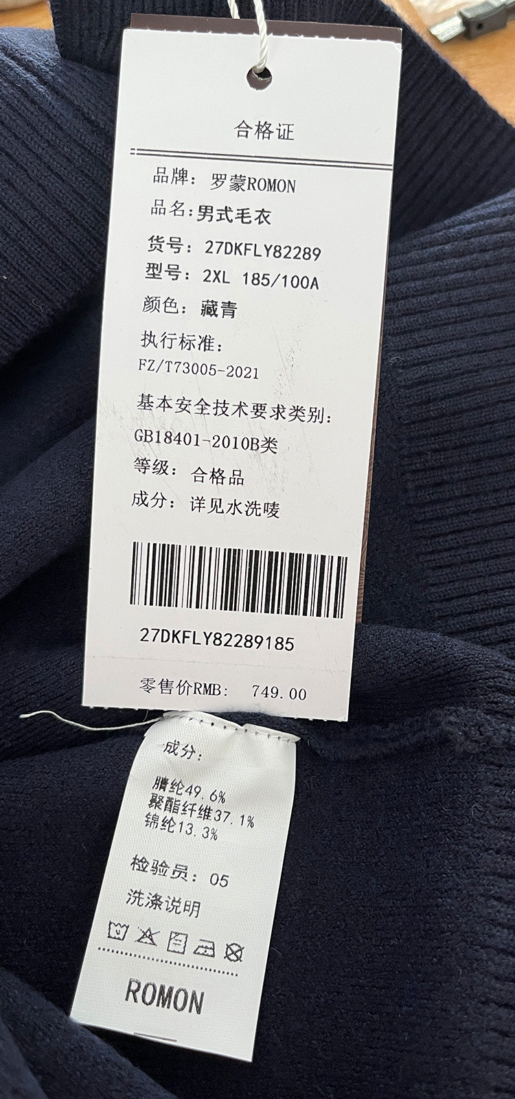 面料:腈纶49.6%聚酯纤维37.1%锦纶13.3%