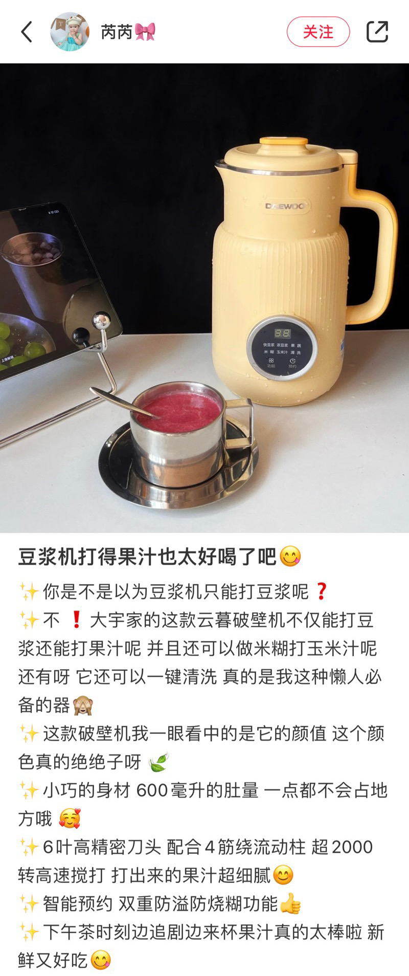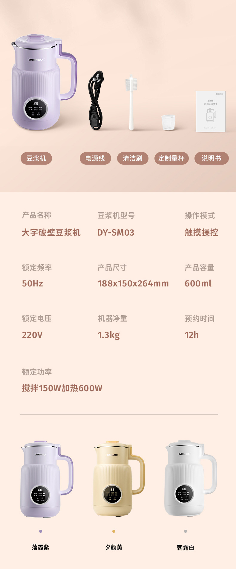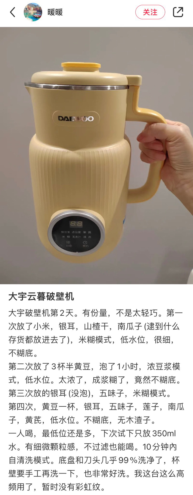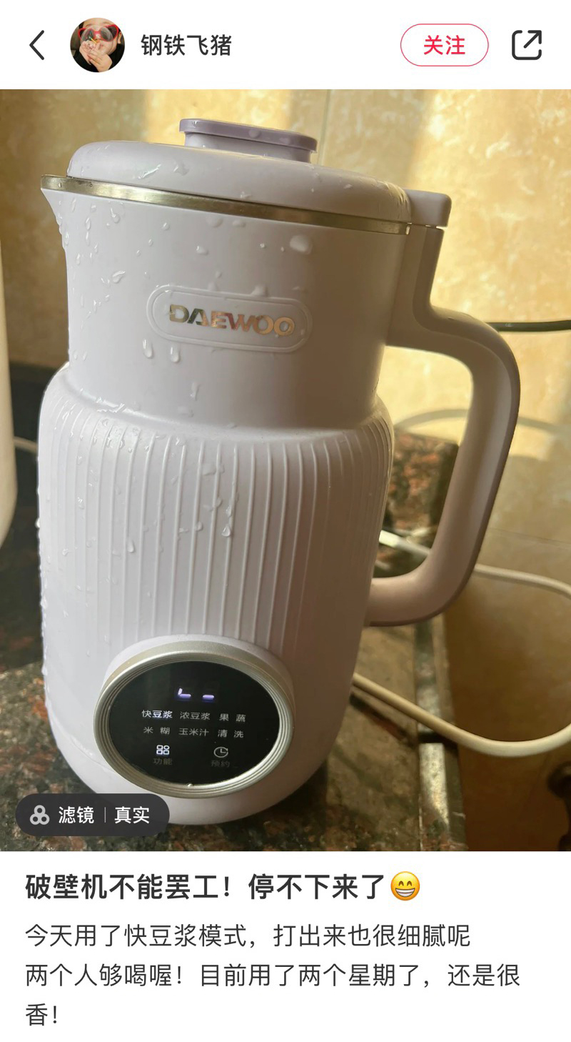 [屁侠推荐.pippa]韩国大宇/DAEWOO 细腻破壁免过滤 轻音多功能 云暮破壁料理机