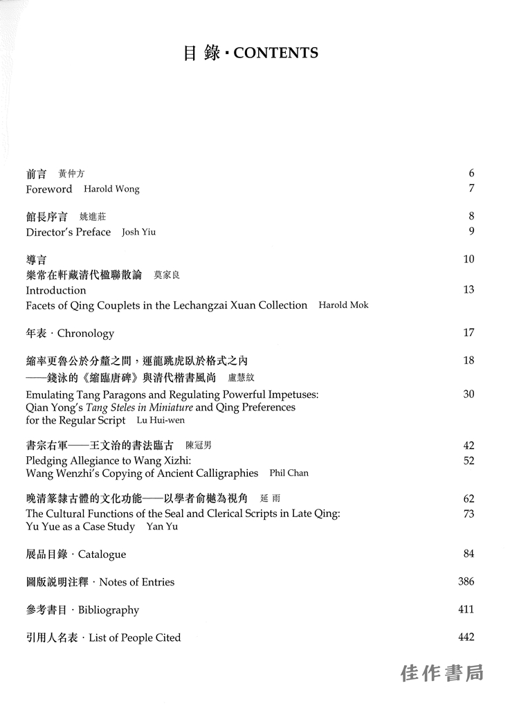 楹联书法盛行于清代,是中国书法史上惹人注目的现象,盖清代楹联既有独特的表现方式,更是文人日常酬应的风雅之物,其审美与社会价值实不容忽视。传世清代楹联甚多,除博物馆外,亦见于各地私人收藏,然若论数量之大、藏品之精,则以乐常在轩为著。 乐常在轩主人黄仲方先生家学渊源、幼承庭训、雅爱翰墨、精擅鉴藏,所藏清代楹联品类丰富,遐迩闻名,与文物馆亦渊源早种。早于1972年文物馆成立翌年,黄先生父亲黄宝熙先生即借出藏联八十二对予文物馆展出,并出版图录。其后数十年,黄仲方先生广增庋藏,先后于2003年和2007年两度假文物馆以”合璧联珠”为名,展出所藏清代楹联,并出版图录,收载书迹共三百帧,广受好评。然此实只是乐常在轩藏联之部分,尚有众多珍藏未及公诸同好。是次再精选楹联一百五十对,从清初王时敏至晚清康有为,凡一百三十四家,并展出其中七十一对,以飨各界,不仅进一步展示清代楹联书法的丰富面貌,更体现出藏家的眼光与品味。 此展览亦延承过往形式,由文物馆统筹,艺术系共同策展,艺术系师生编制图录,并邀请学者撰写专文。此合作方式不仅再次彰显文物馆与收藏家、艺术系、学者之间长期的良好关系,亦发挥了文物馆作为大学博物馆的特长与优势。毋庸置疑,这是近年中国书法又一重要展览,除了可让公众欣赏清人的笔墨艺事,亦可望为清代书法研究提供参考。