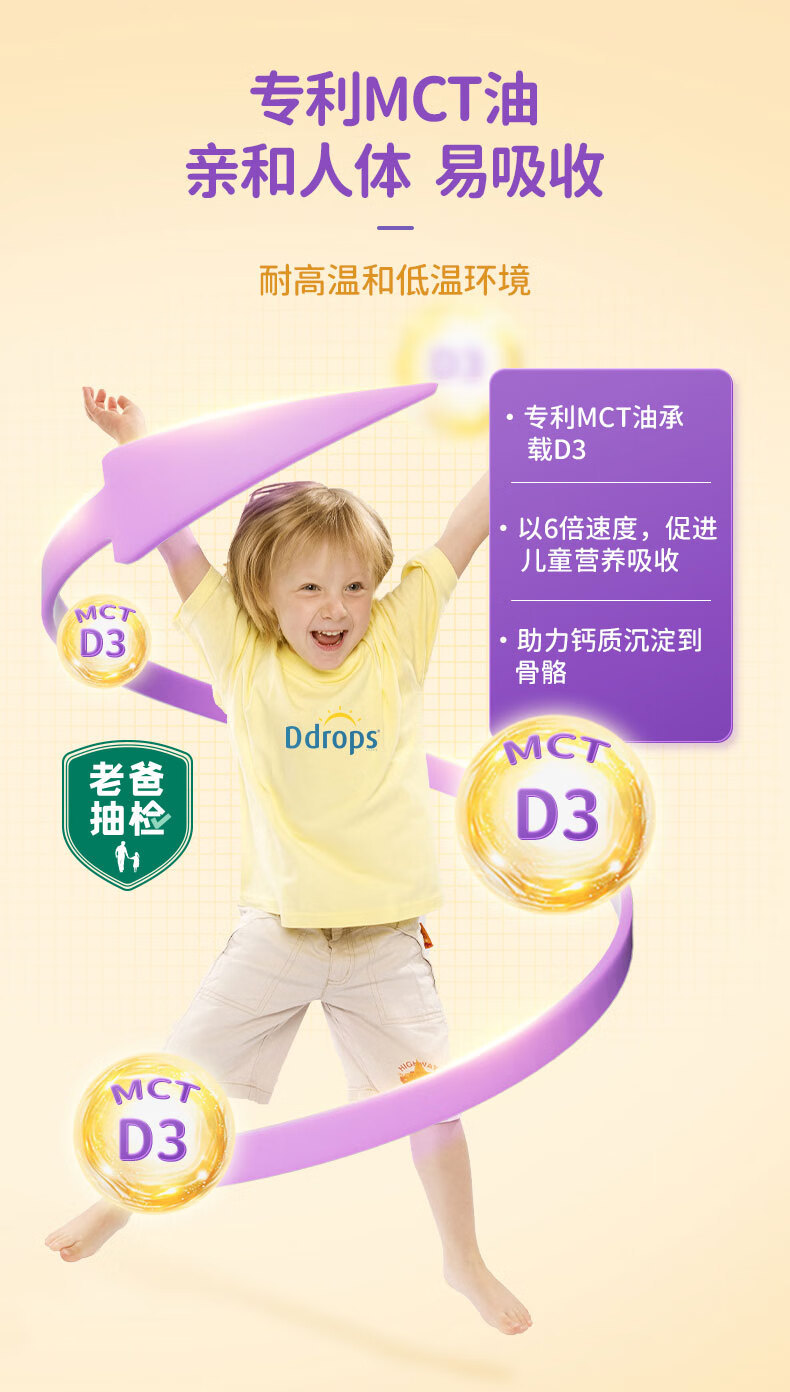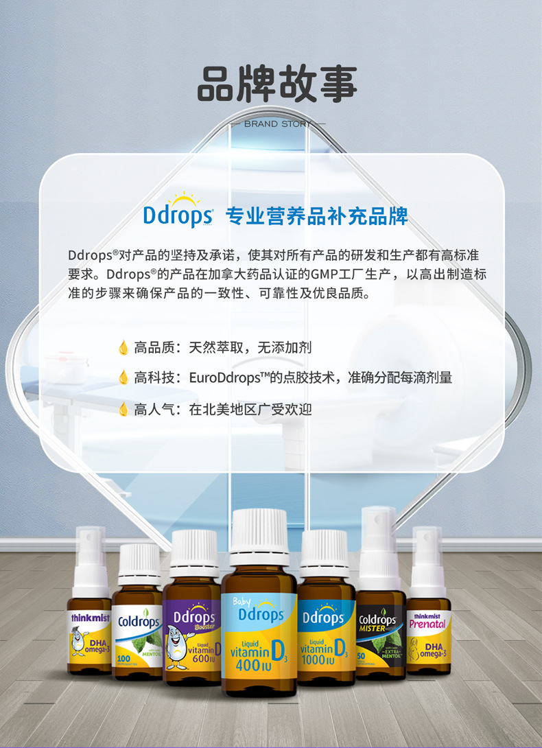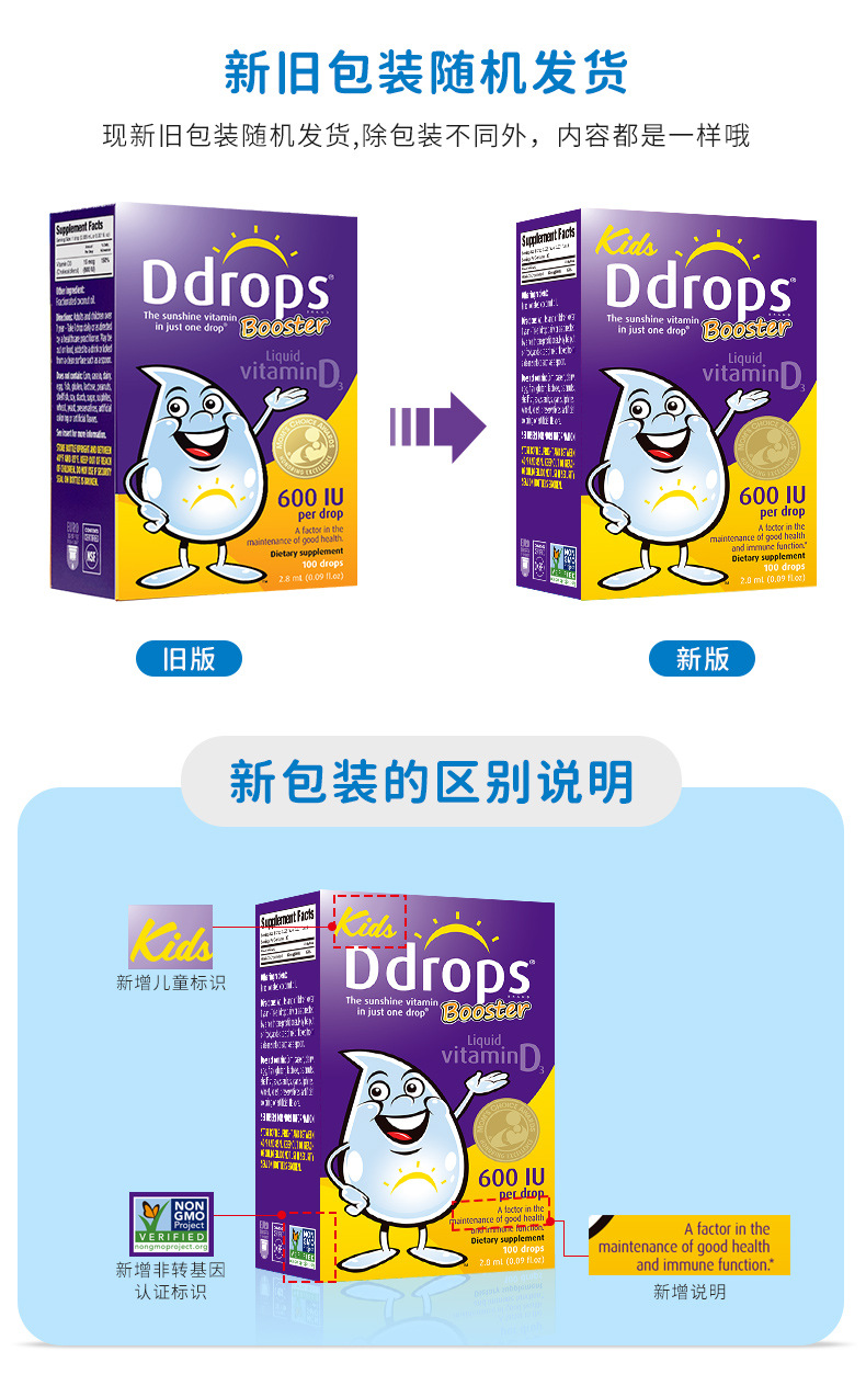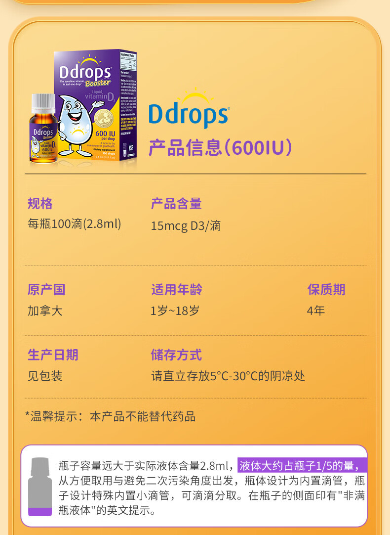 【香港直邮】美国Ddrops滴卓思婴儿液体每滴600IU维生素D3滴剂 2.8ml 1岁以上(100天量)