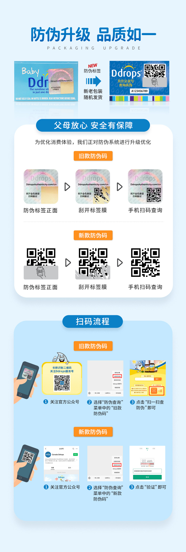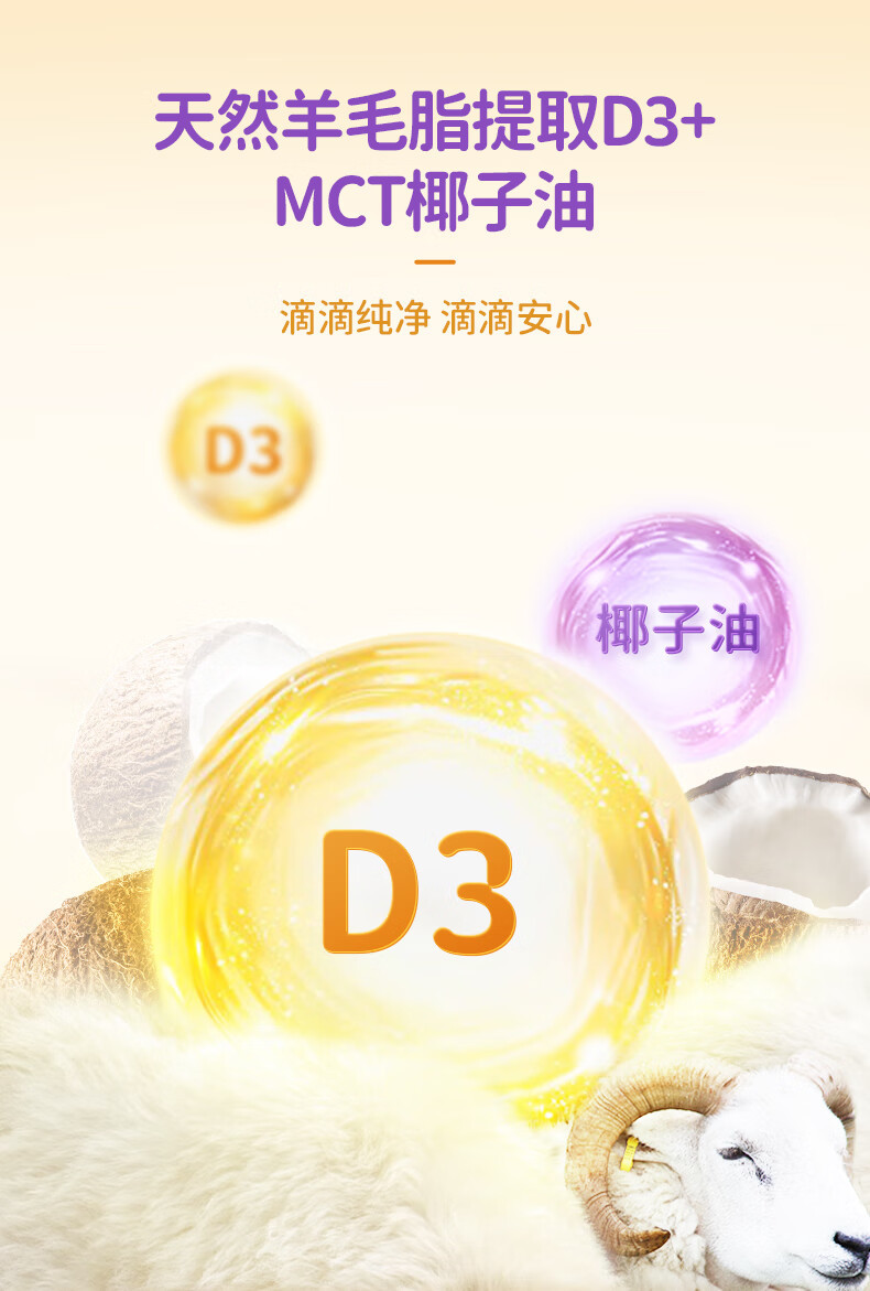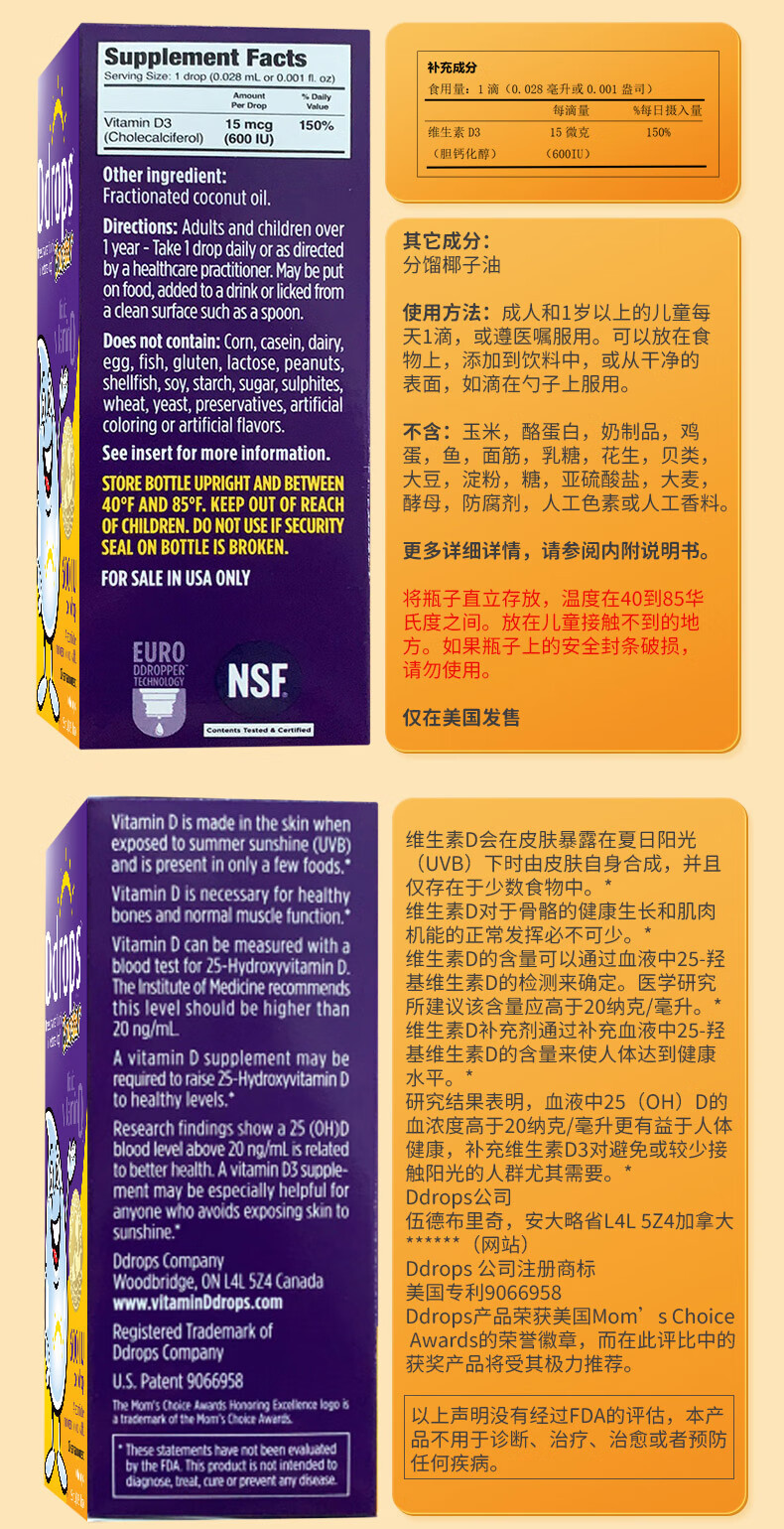 【香港直邮】美国Ddrops滴卓思婴儿液体每滴600IU维生素D3滴剂 2.8ml 1岁以上(100天量)