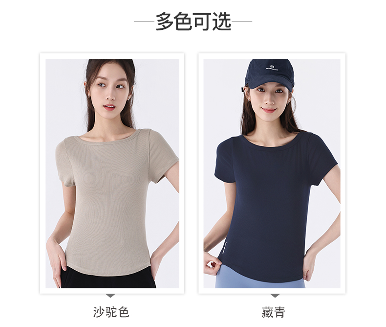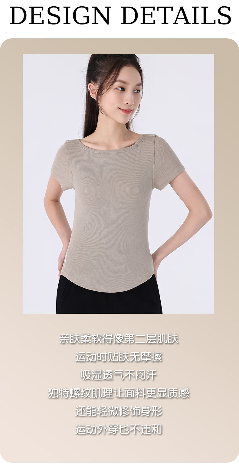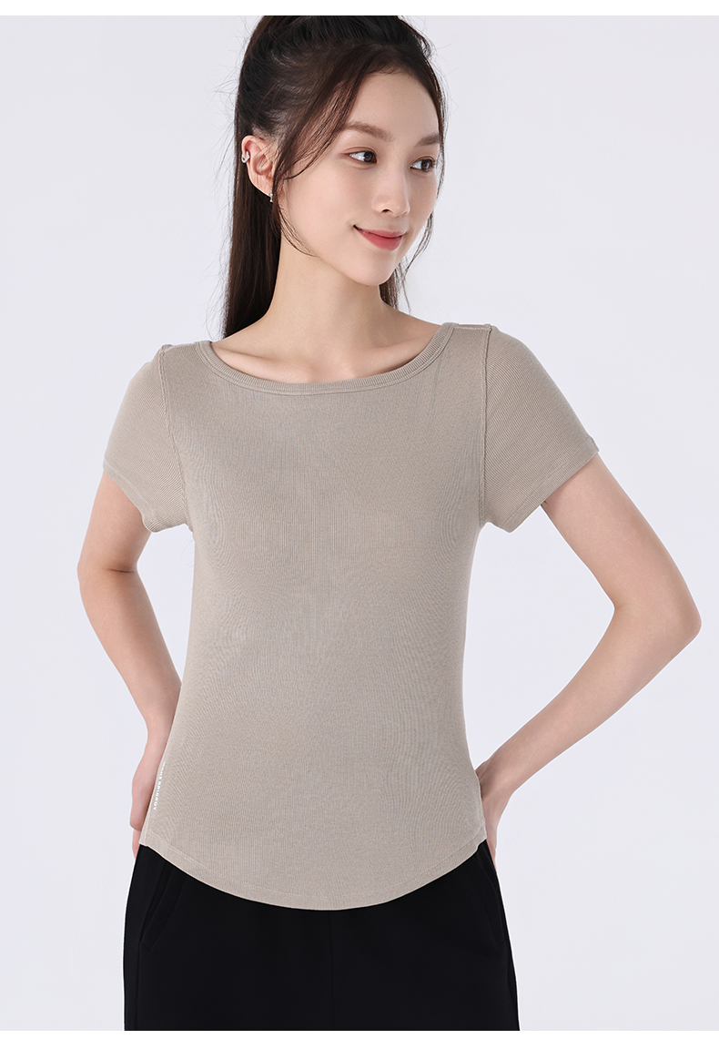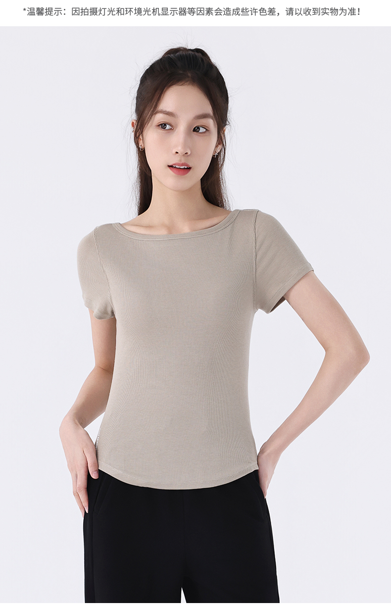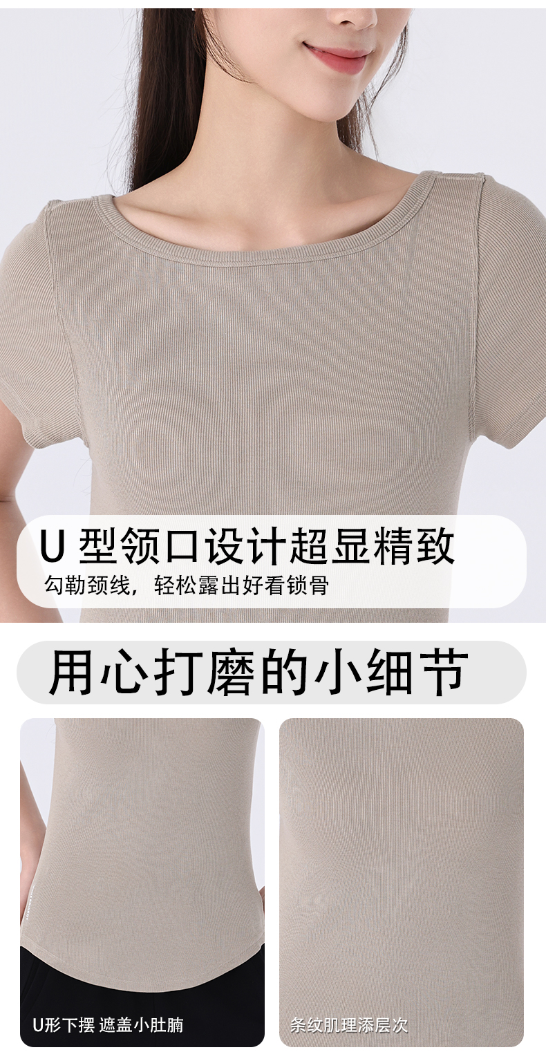 慕柏郦女短袖T恤修身女运动螺纹短款抗皱圆领1972