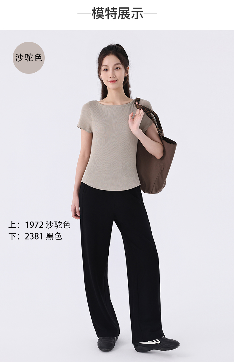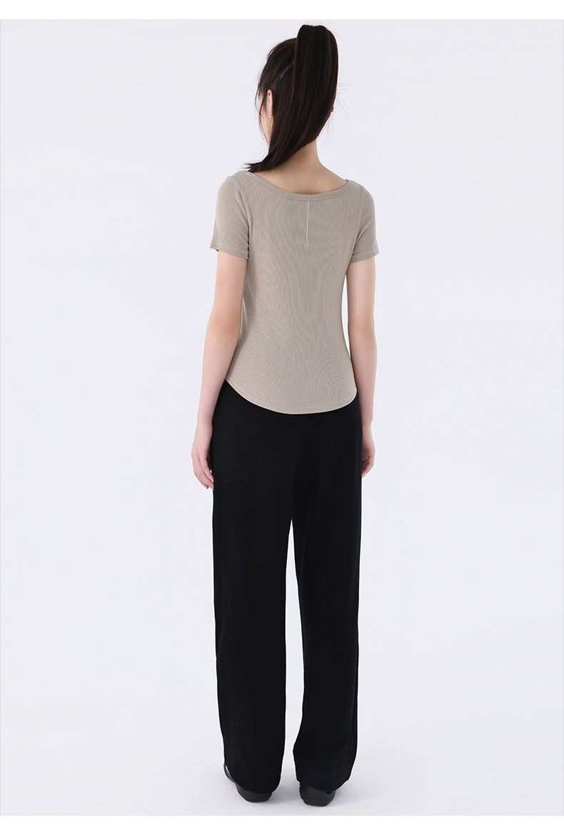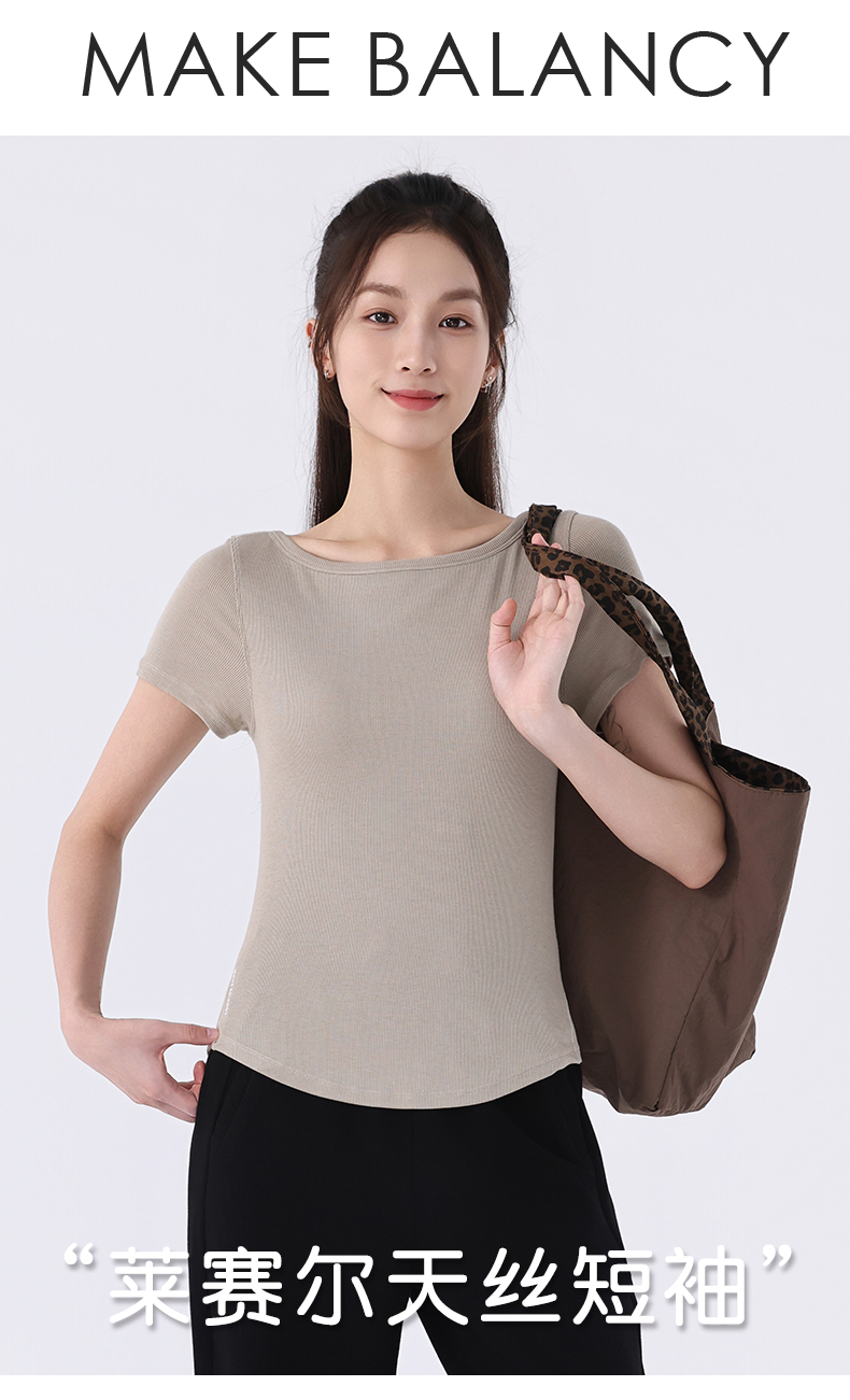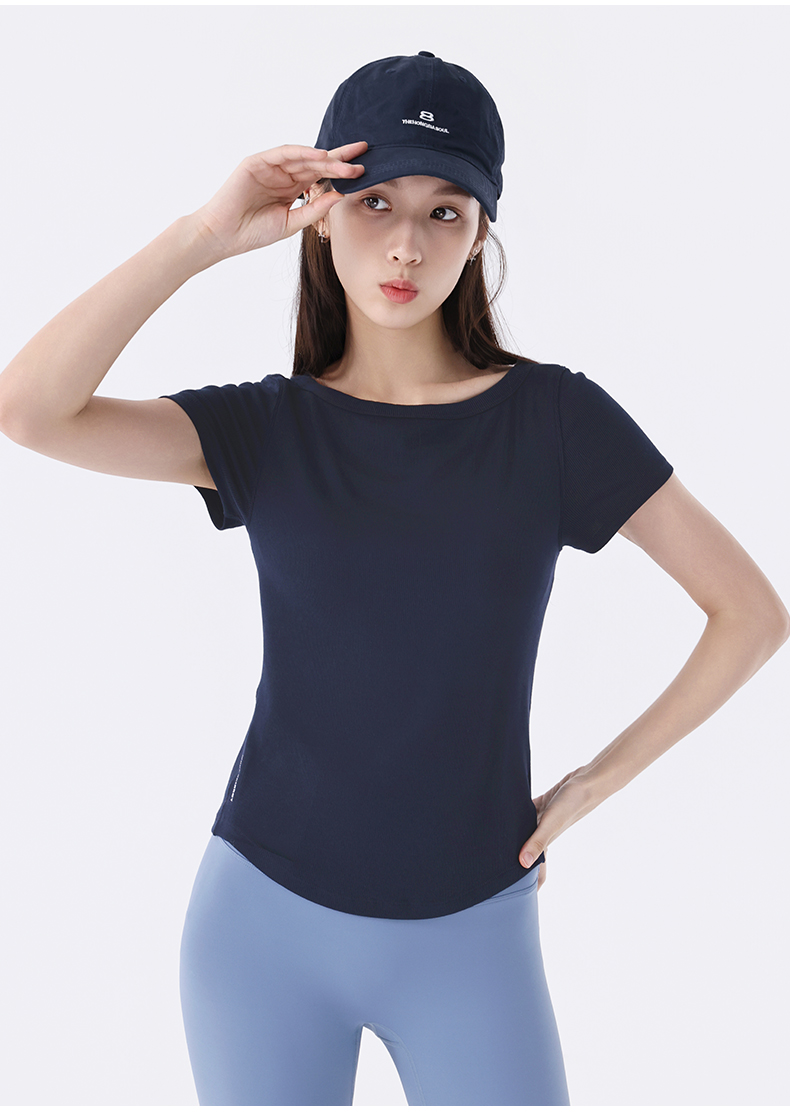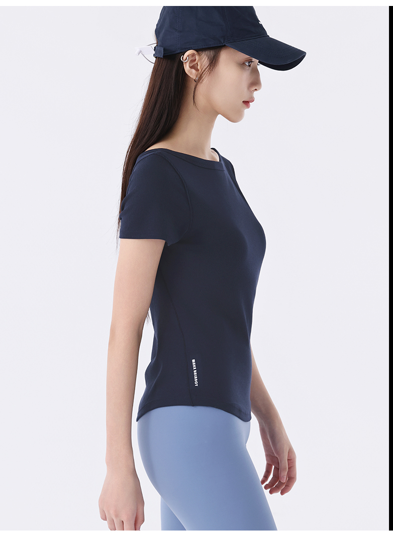慕柏郦女短袖T恤修身女运动螺纹短款抗皱圆领1972