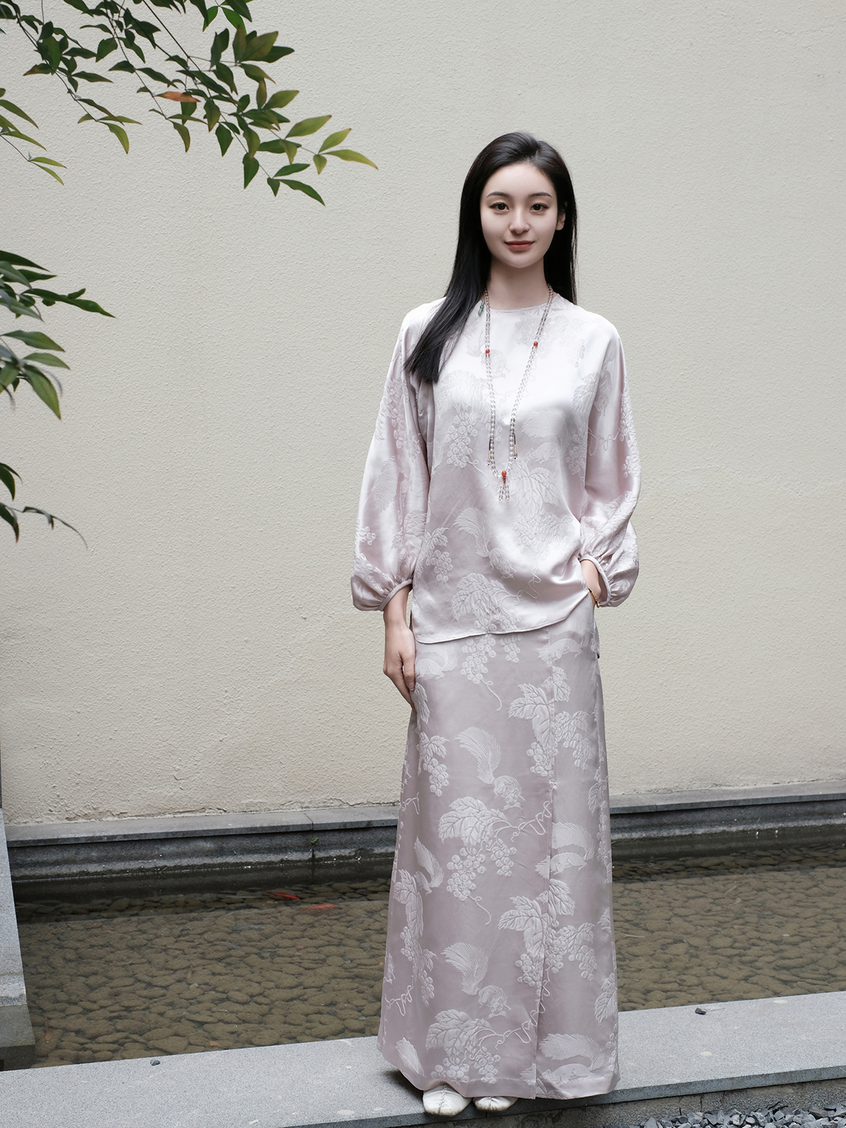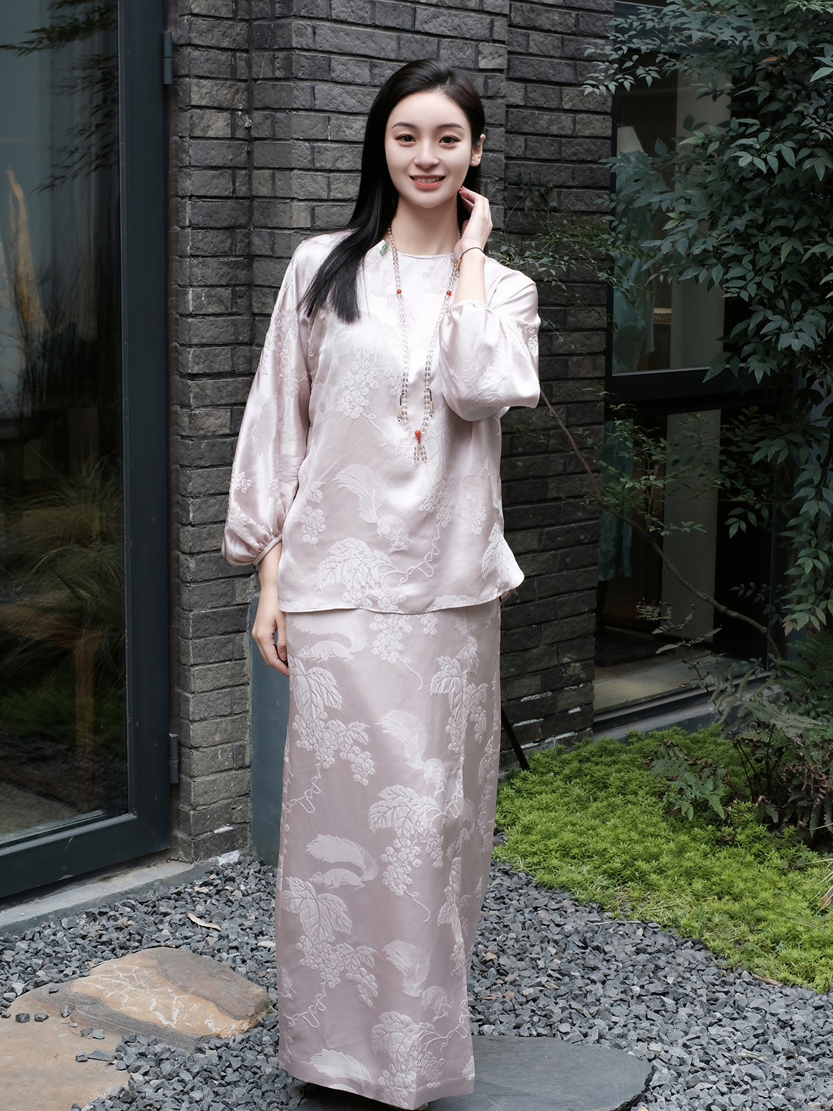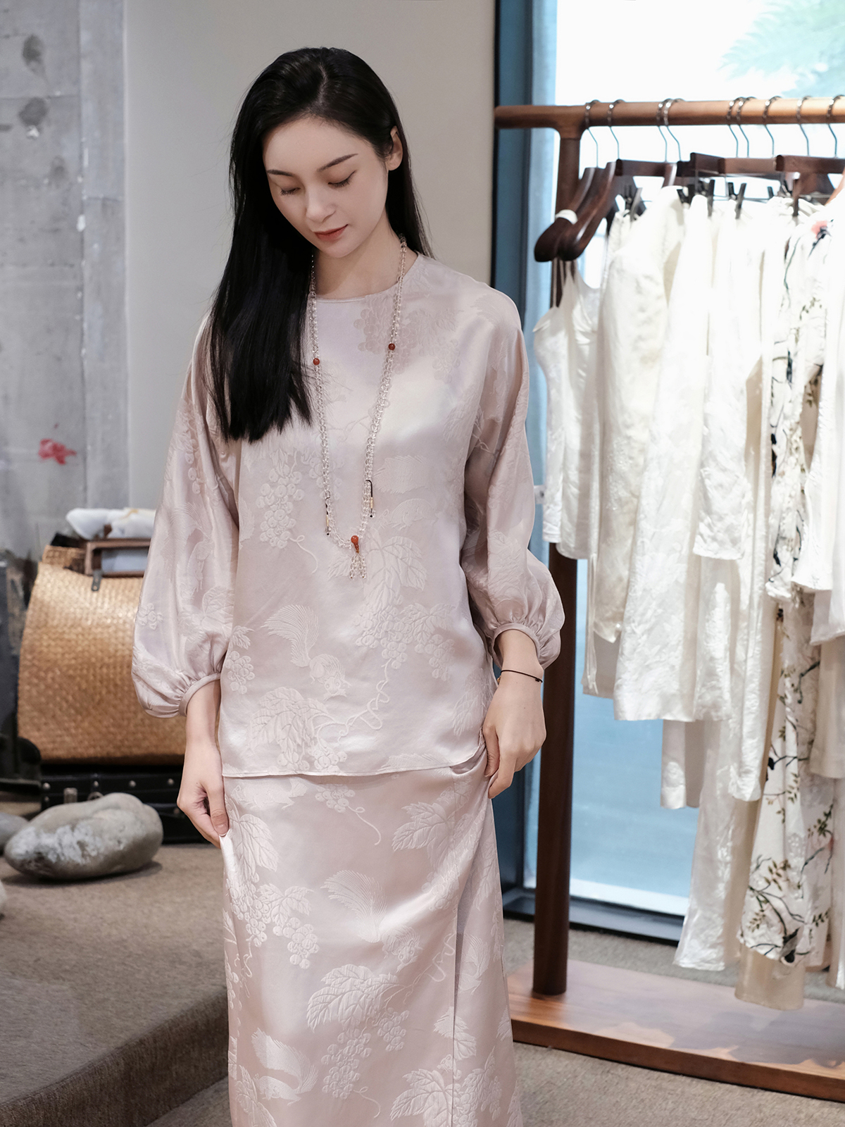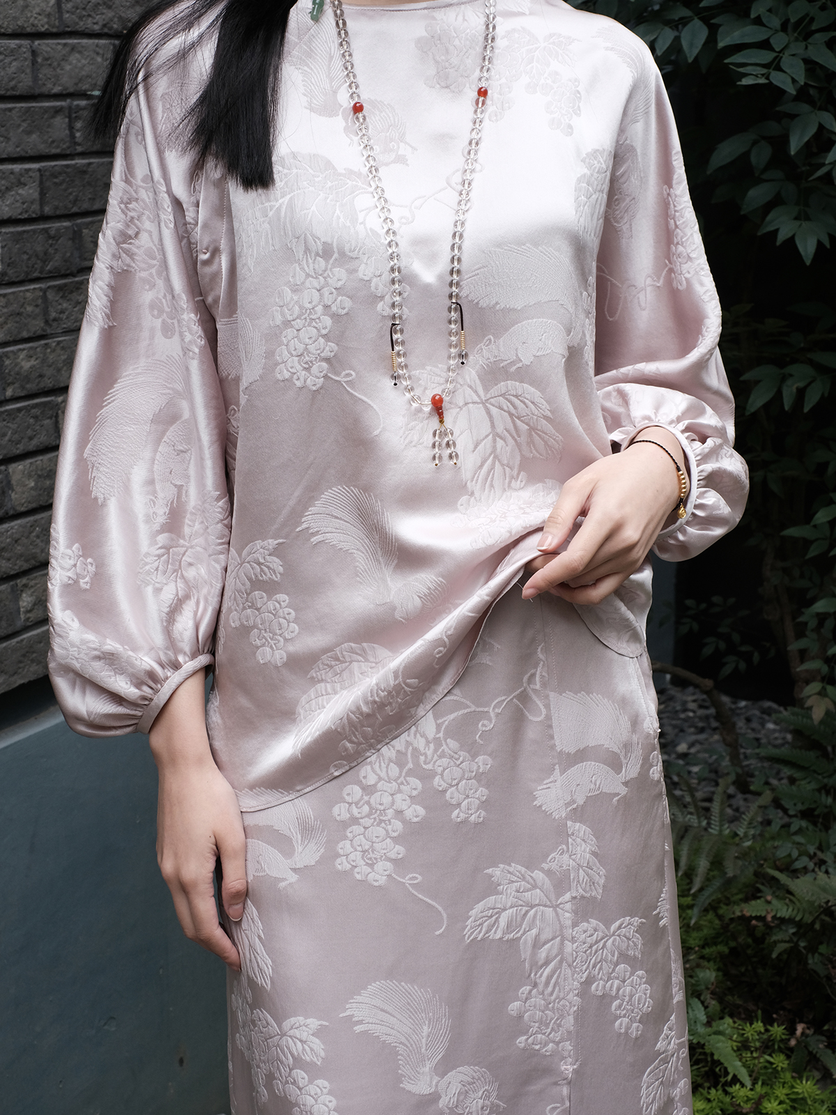 盛唐牡丹 |真丝冠乐绉松鼠葡萄纹上衣