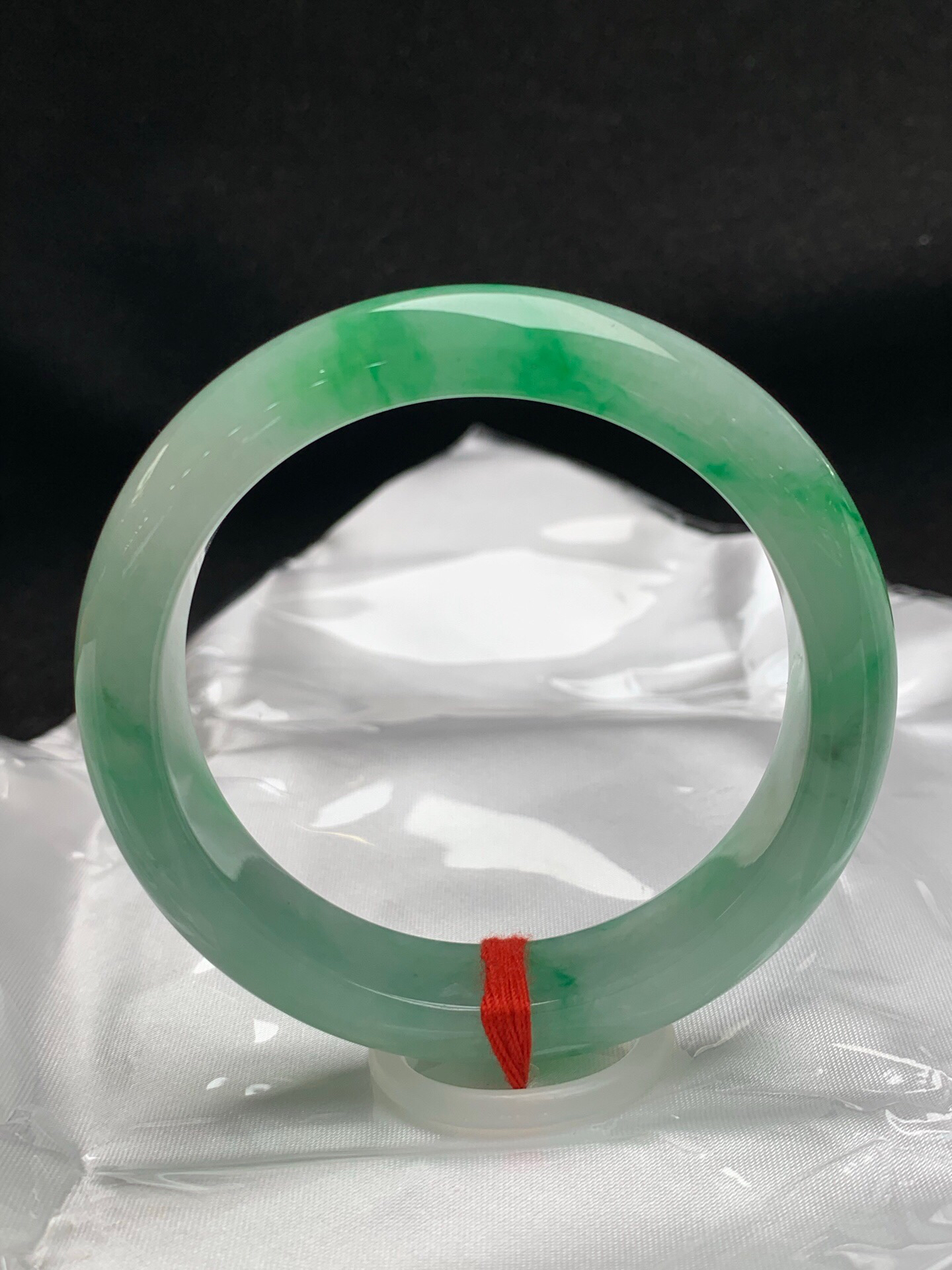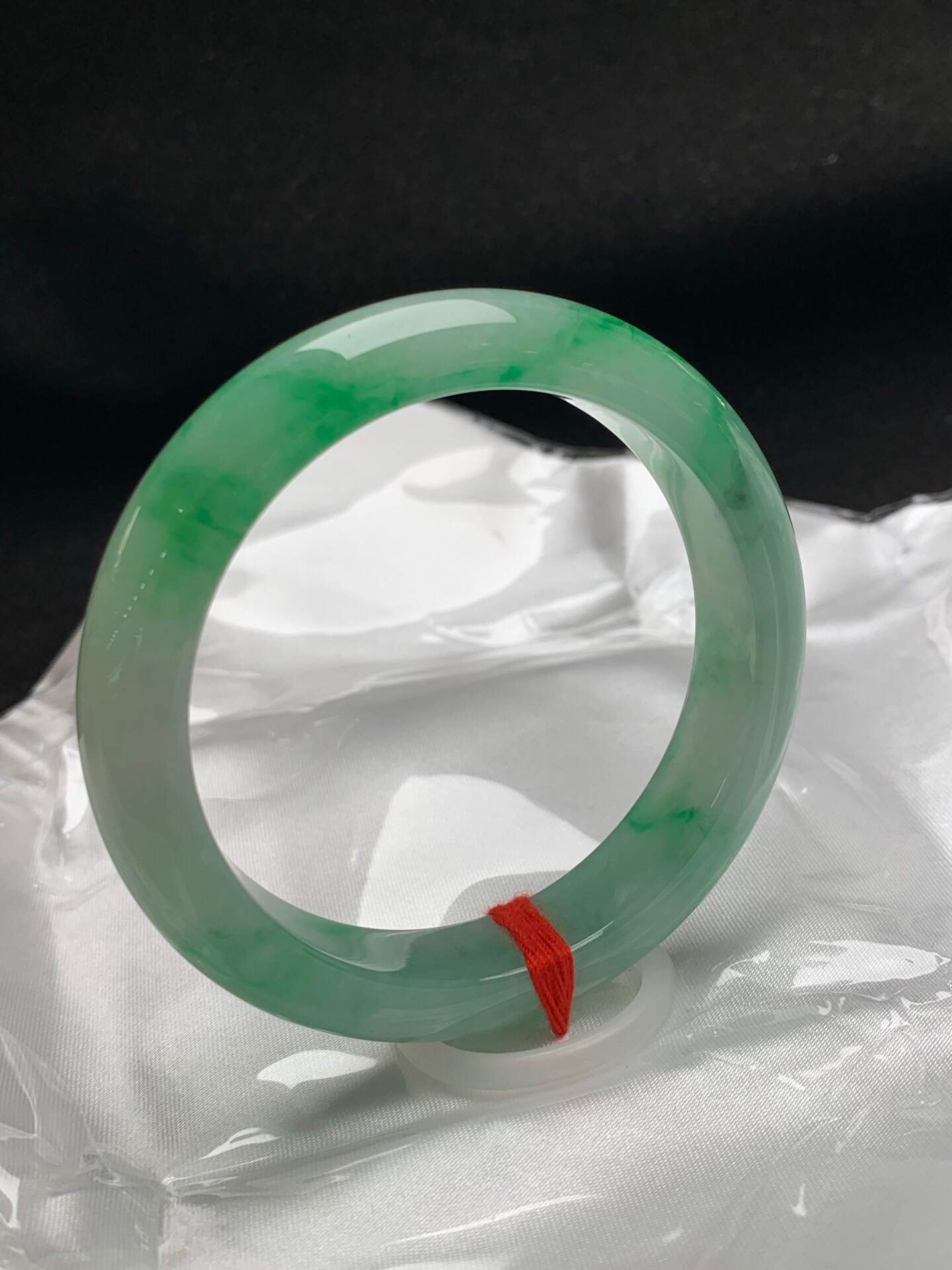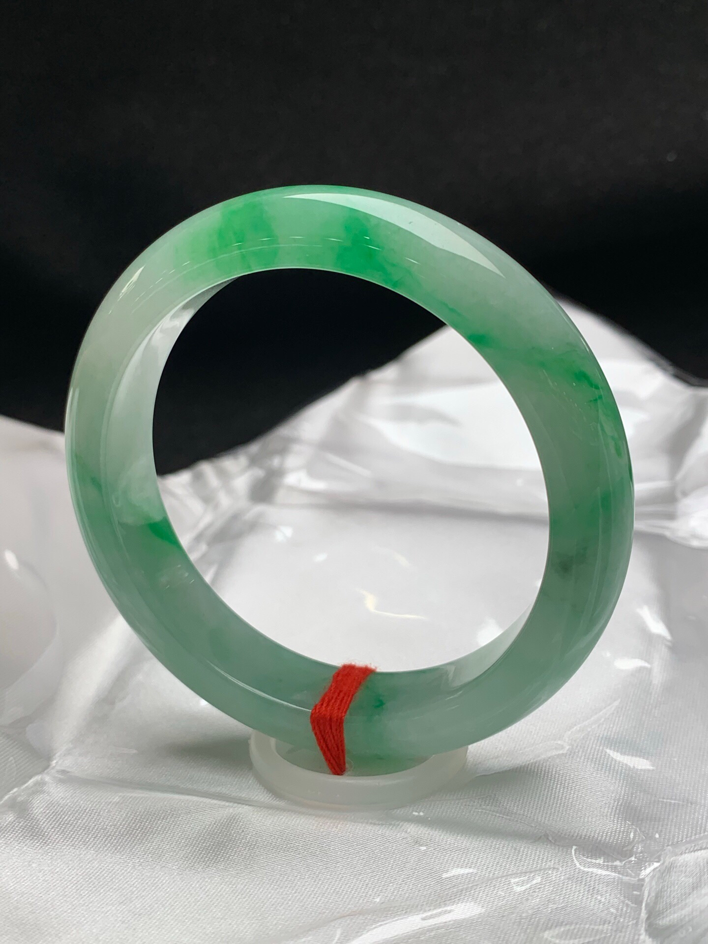 620404,55.6圈口,糯冰飘绿正圈平安镯,白底飘阳绿,色辣,种水好