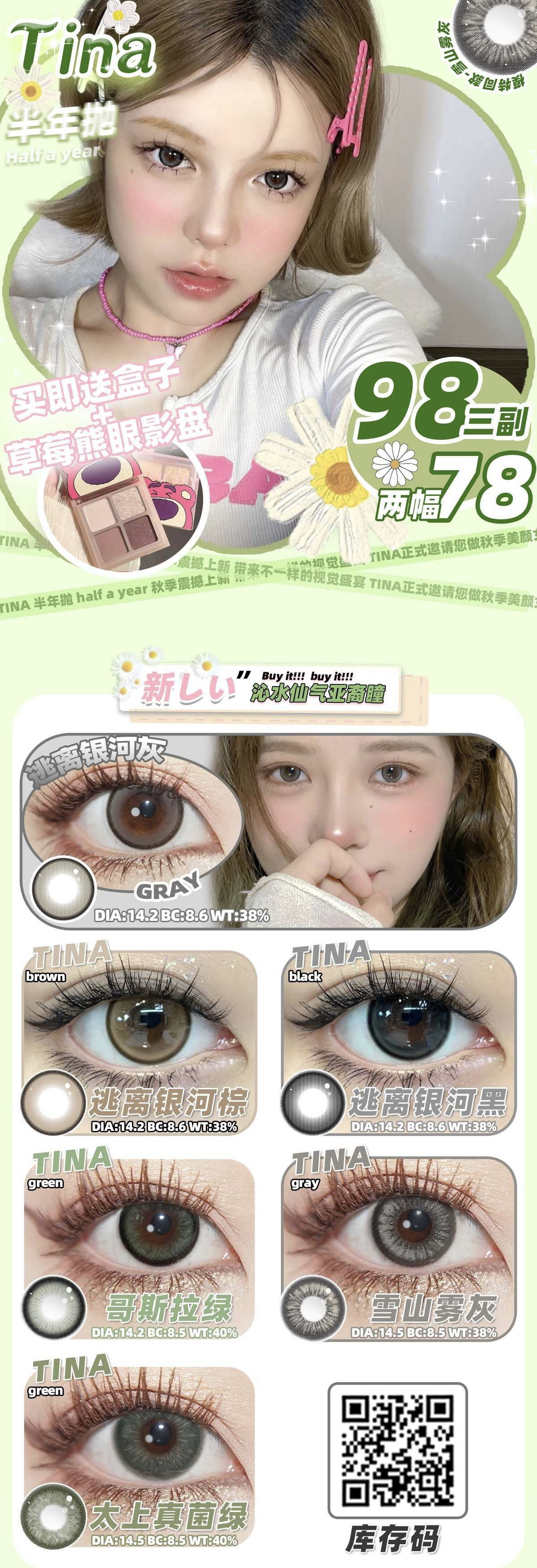 98元/任选三幅 送盒子+草莓熊眼影