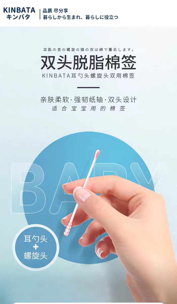 4楼Eubelle欧蓓 日本kinbata一次性棉签双头掏耳朵尖头 无菌棒 化妆棉棒婴儿小棉花 活动价:12.9元