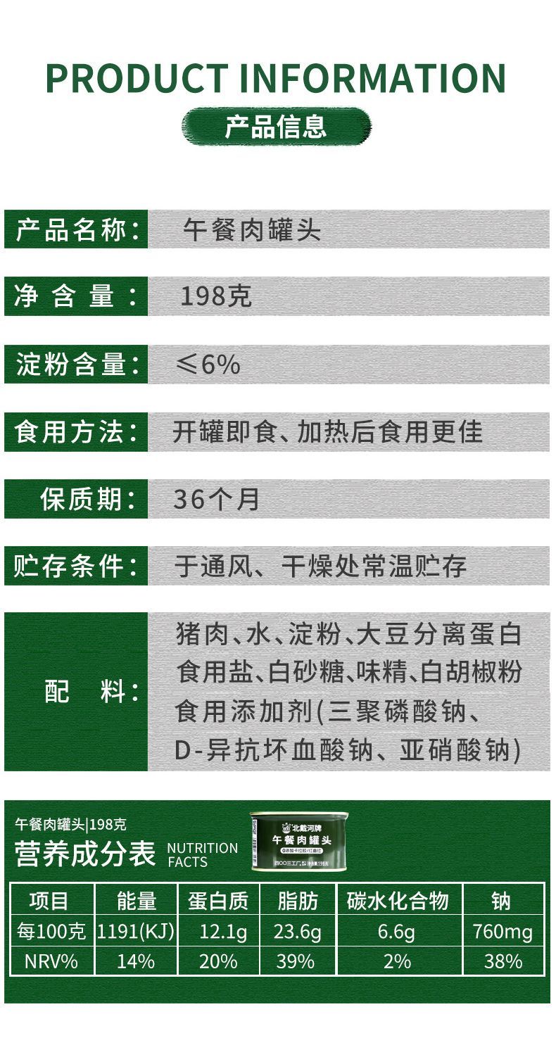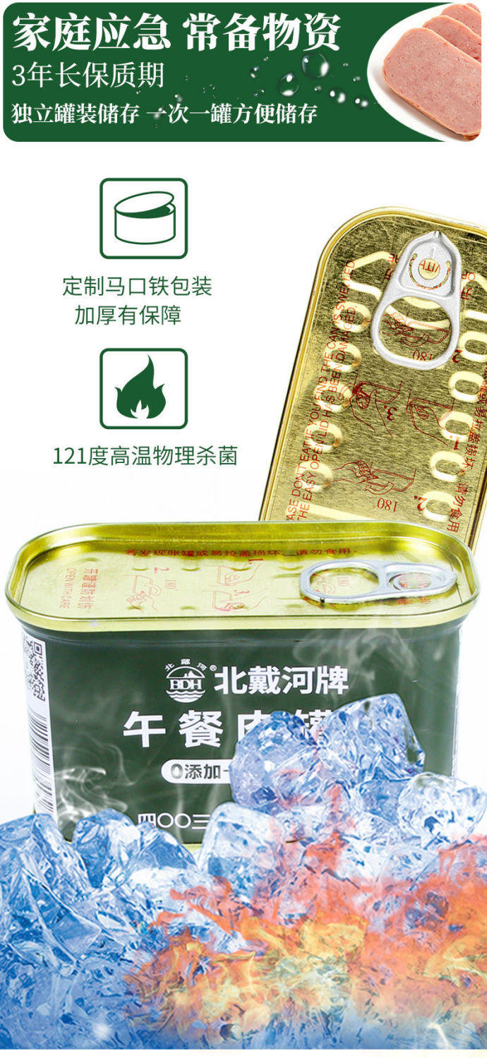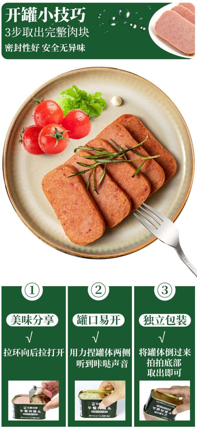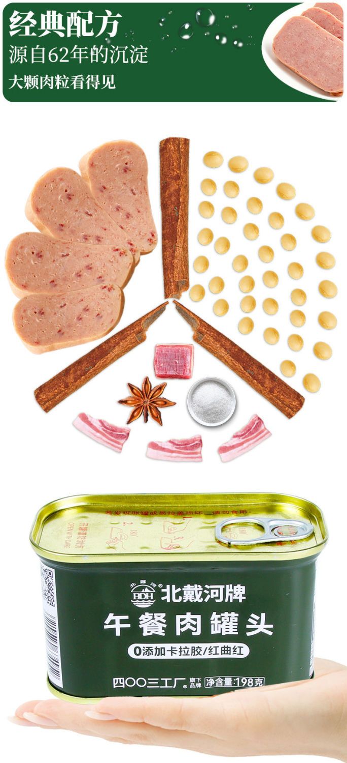 北戴河198g午餐肉罐头速食即食家庭应急长期储备食品
