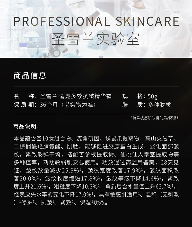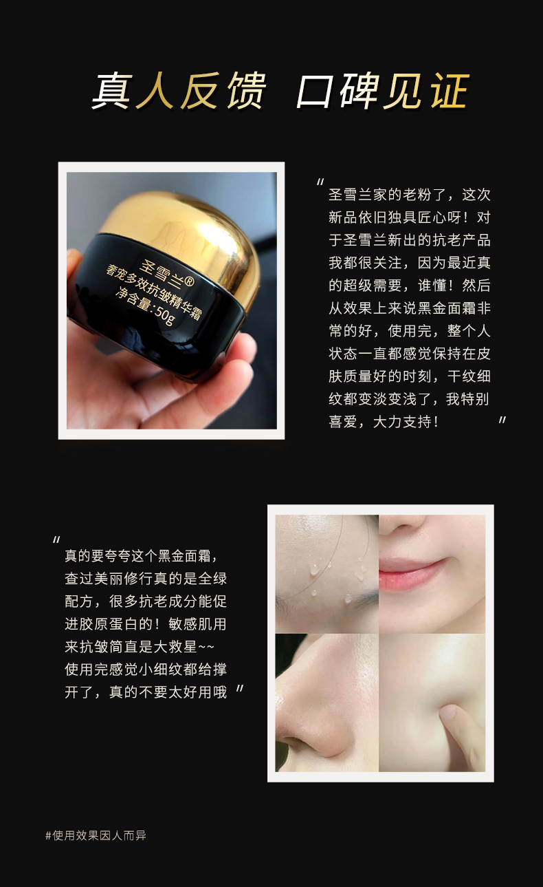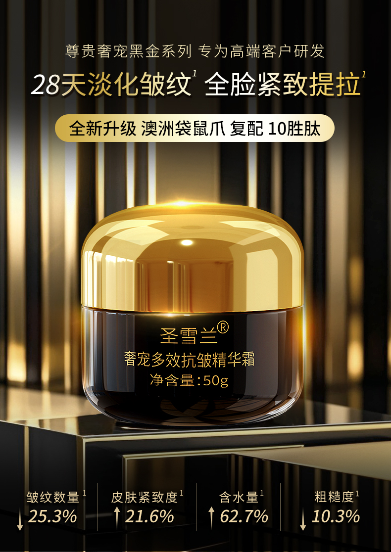 【自营】黑金系列 圣雪兰抗皱面霜50g 法令纹救星 28天见效!创始人自用款