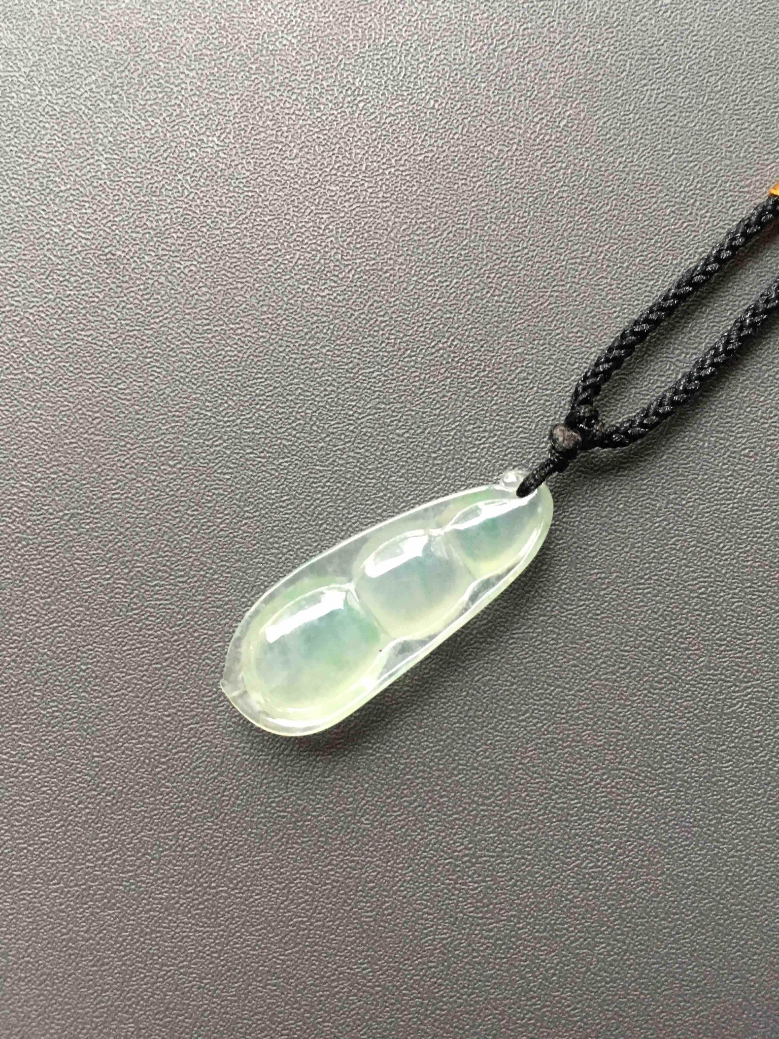 冰种飘阳绿翡翠福豆,种水晶莹剔透,荧光四射,正阳绿艳丽,飘色灵动,种色俱佳的漂亮宝贝,四季豆寓意四季平安,三颗豆粒代表连中三元,价格超实惠,性价比