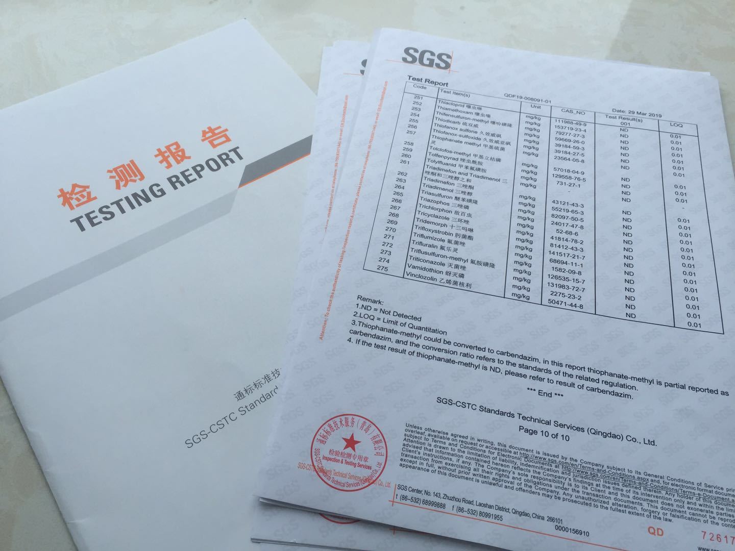▲整整10页覆盖273种农残权威检测报告