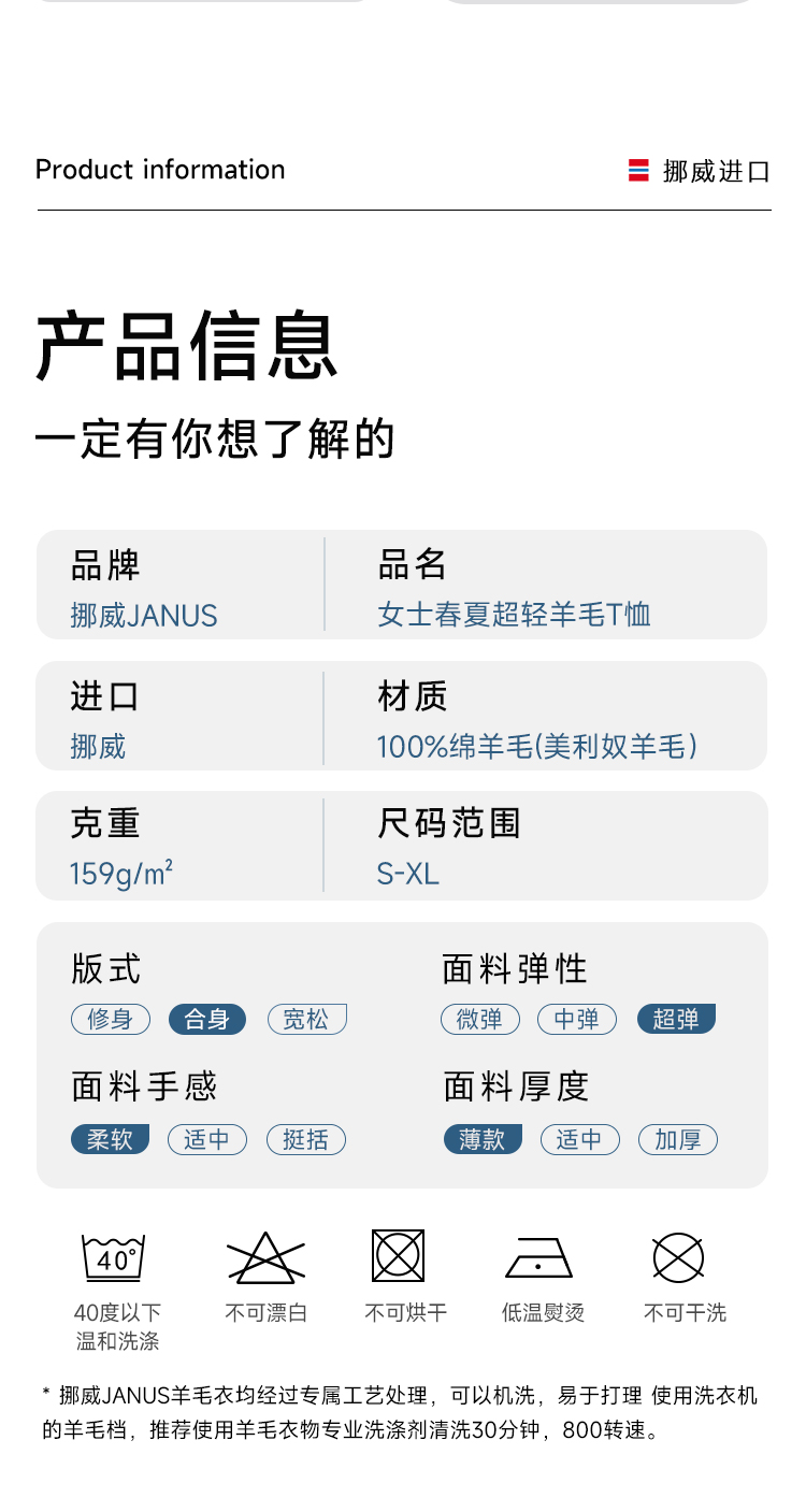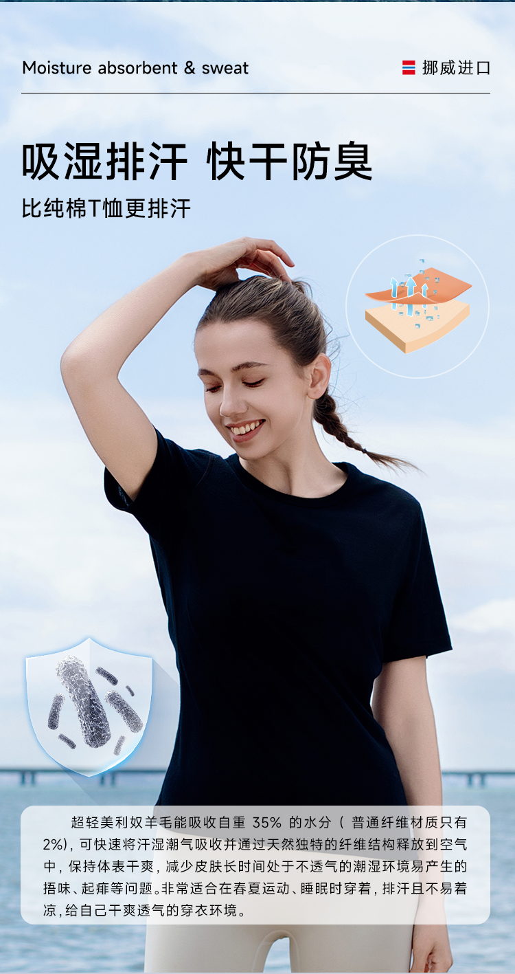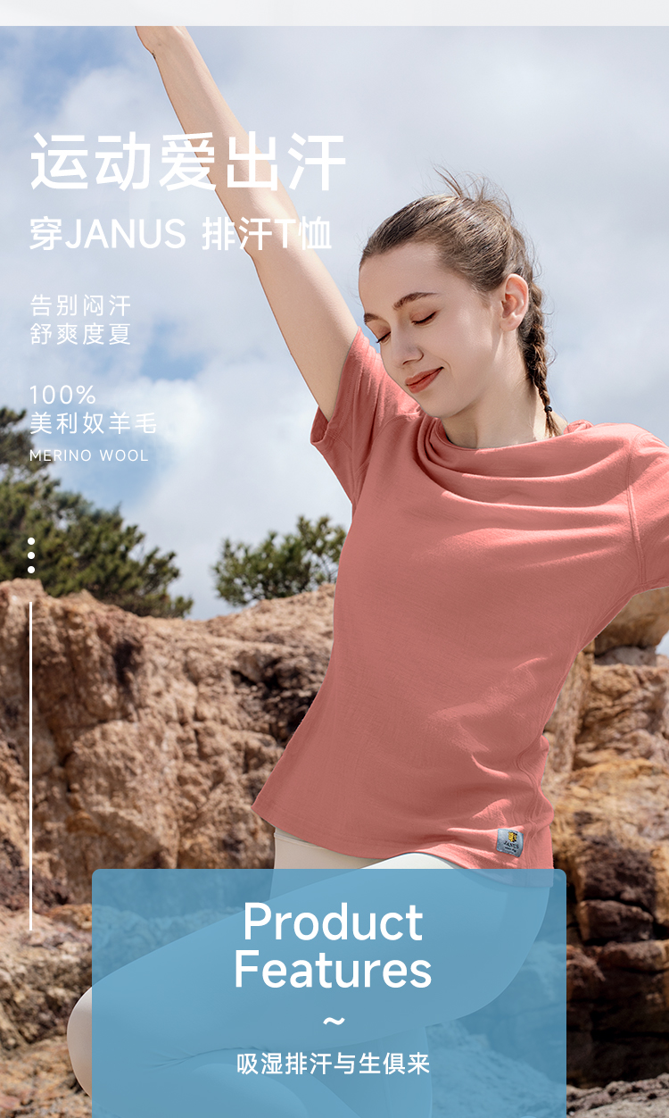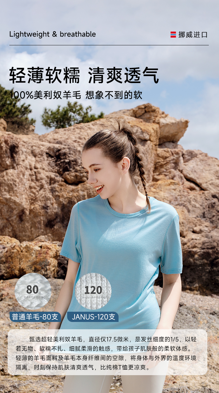 低于双11【S-2XL】挪威进口JANUS春夏100%美利奴羊毛女士超轻短袖T恤 克重159g/㎡【2025新款】