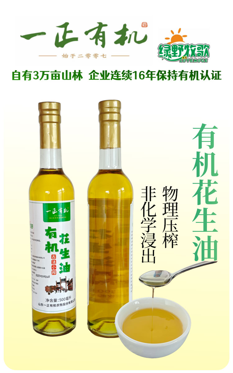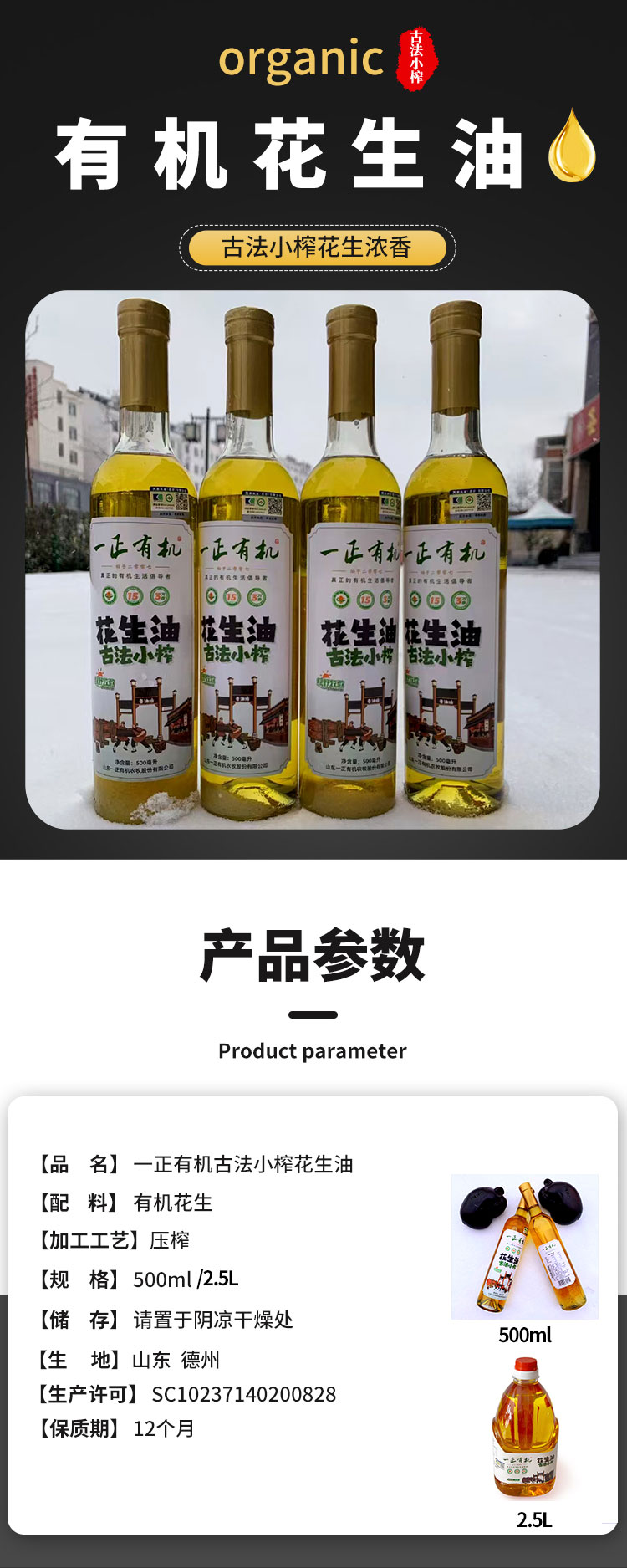 【厂商直发】有机花生油有机花生原料健康纯香纯正食用油古法小榨包邮