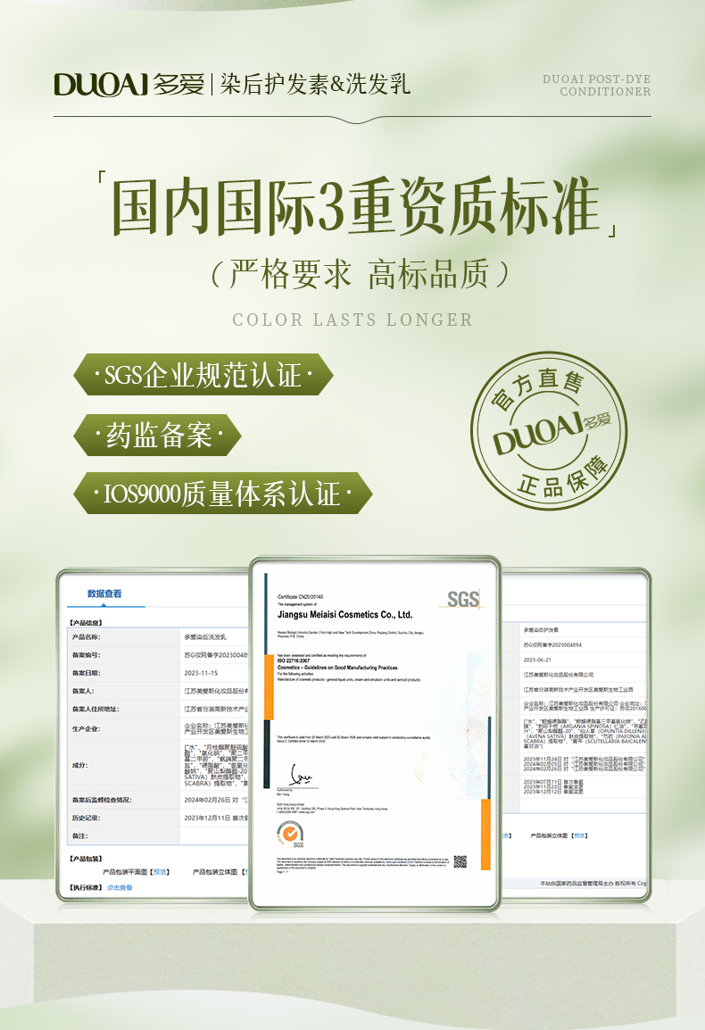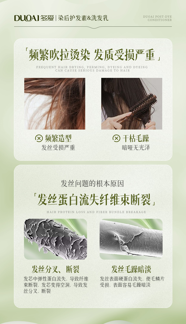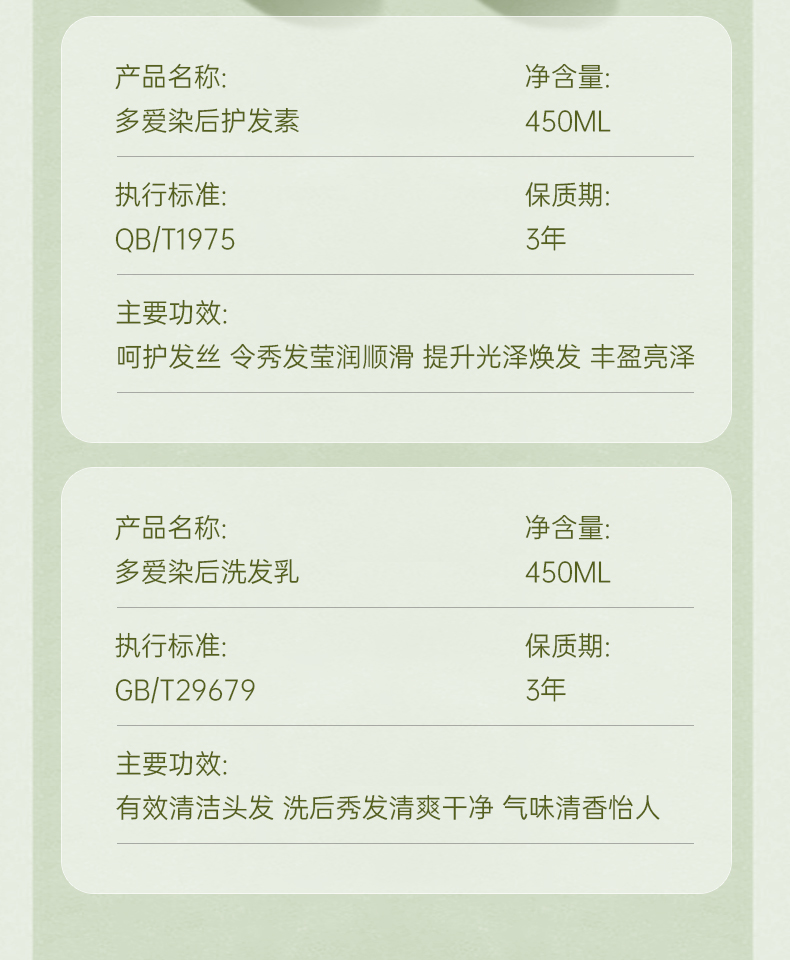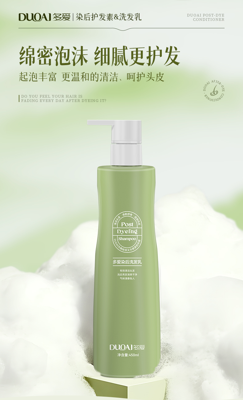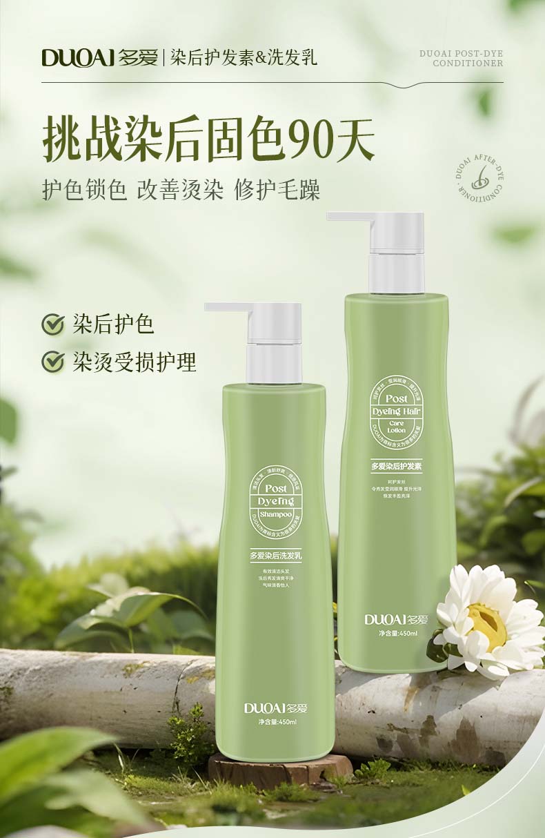 【品名】多爱 染后洗护套装 固色 修护 温和细腻 450ml/瓶 【规格】洗发水450ml*1瓶+润发乳450ml*1瓶 【产地】国内 【保质期】3年 【发货包装】独立包装 【发货地】江苏 【发货快递】中通 【补邮费地区】新疆、西藏+15元/单 内蒙古、宁夏、甘肃、青海、海南+5元/单 【发货时效】48-72小时,周末节假日顺延 |