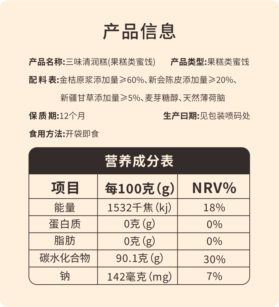 【品名】天昆果王 三味清润糕 酸甜可口 独立包装 108g*4袋 【规格】108g*4袋 【产地】国内 【保质期】12个月 【发货包装】独立包装 【发货地】河北 【发货快递】极兔、中通随机发 【不发货区域】新疆、西藏、港澳台 【补邮费地区】青海、海南+5元 【发货时效】48-72小时,周末节假日顺延 |