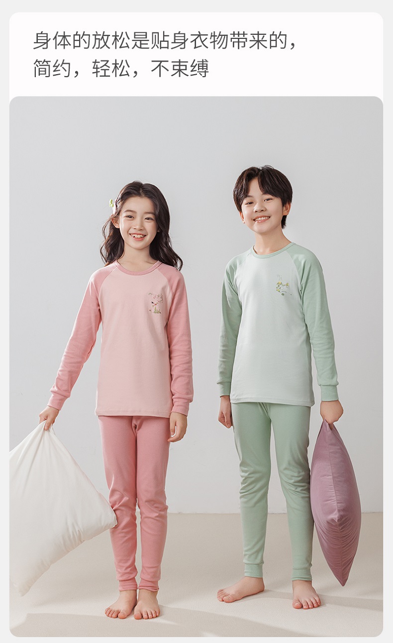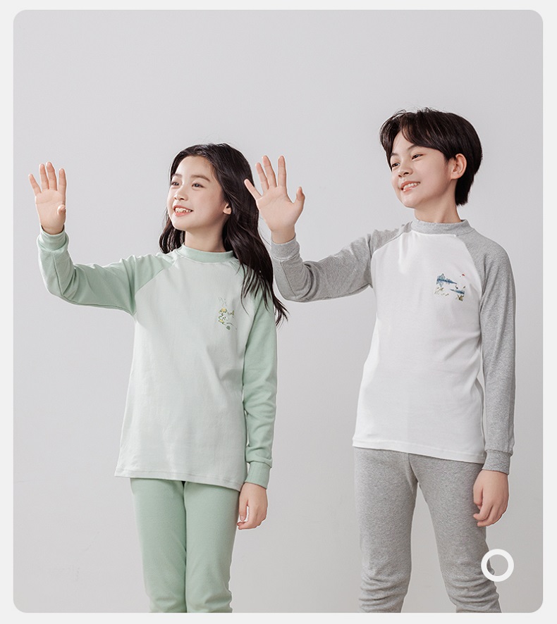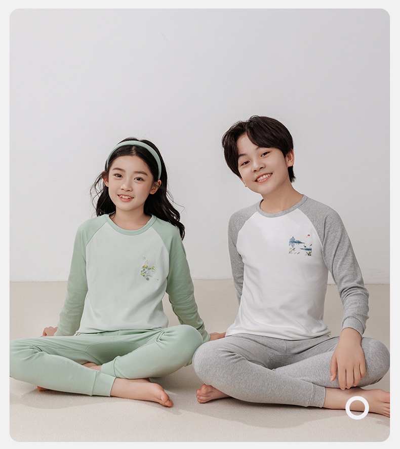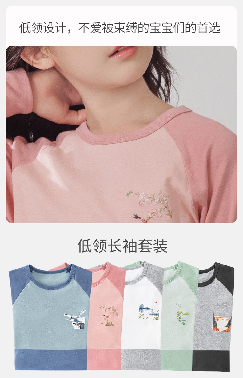 【A类纯棉,140-180cm】【原创设计,节气插画】【圆领+中领可选】秋冬新款儿童24节气纯棉圆领中领长袖保暖内衣中大童印花青少年家居服