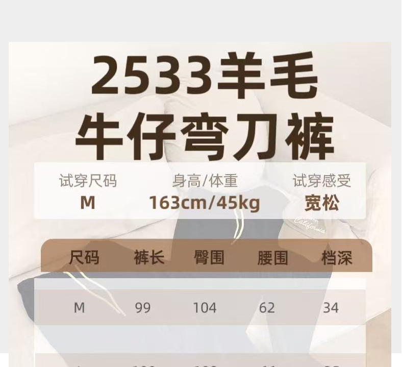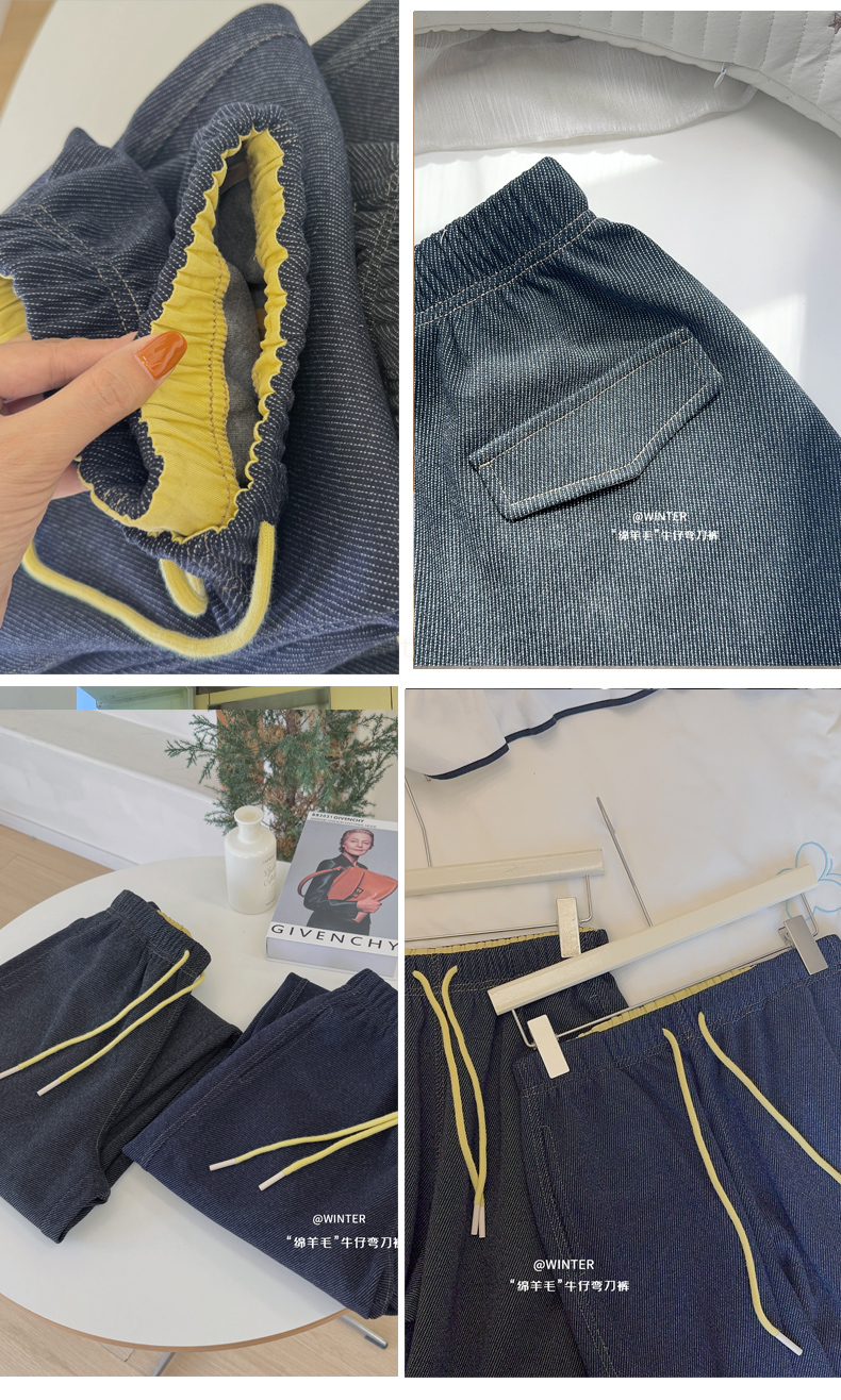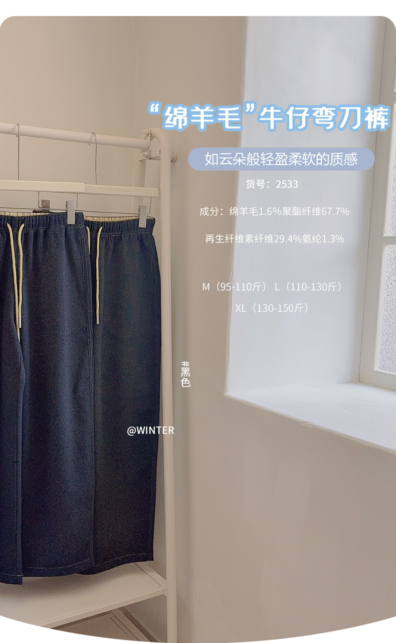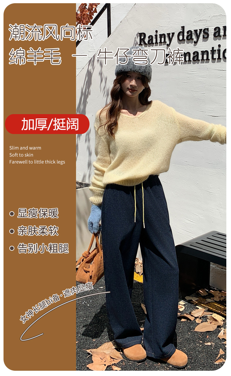 【超模君精选】LUOQIQI绵羊毛牛仔弯刀裤 羊毛牛仔面料柔软舒适又保暖 微弯刀裤型显瘦遮肉 款式时尚百搭不挑人
