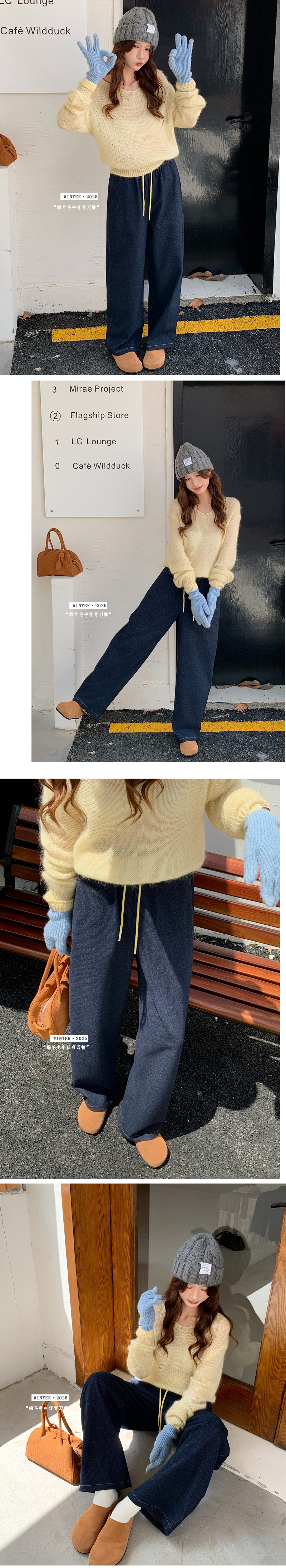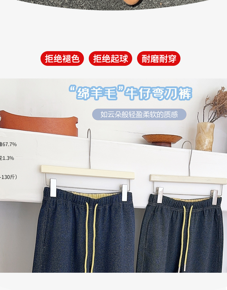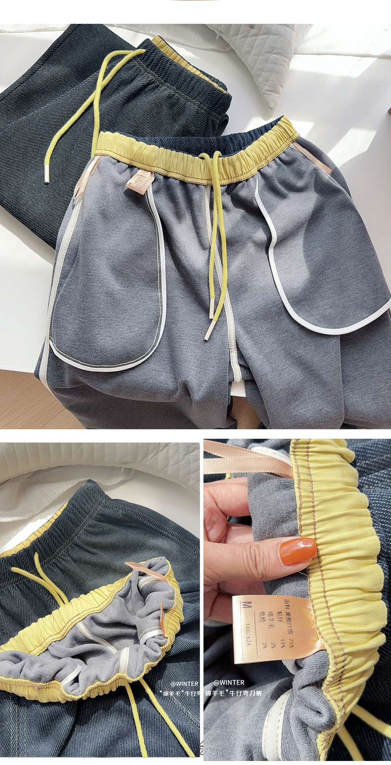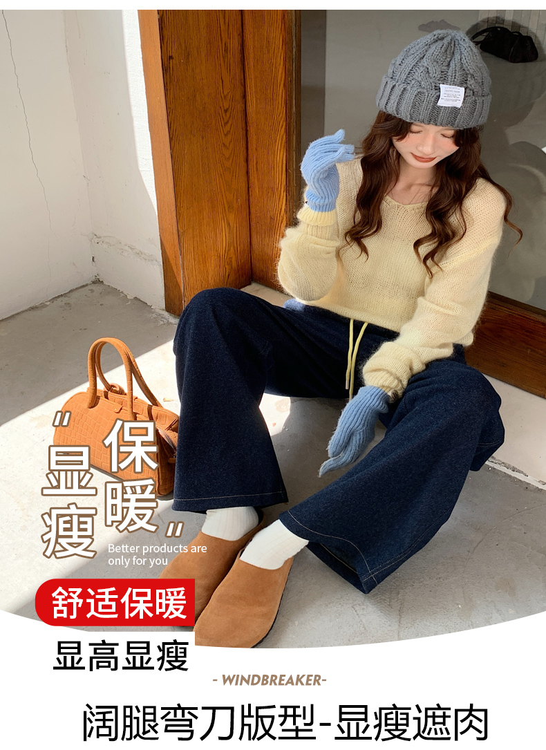 【超模君精选】LUOQIQI绵羊毛牛仔弯刀裤 羊毛牛仔面料柔软舒适又保暖 微弯刀裤型显瘦遮肉 款式时尚百搭不挑人
