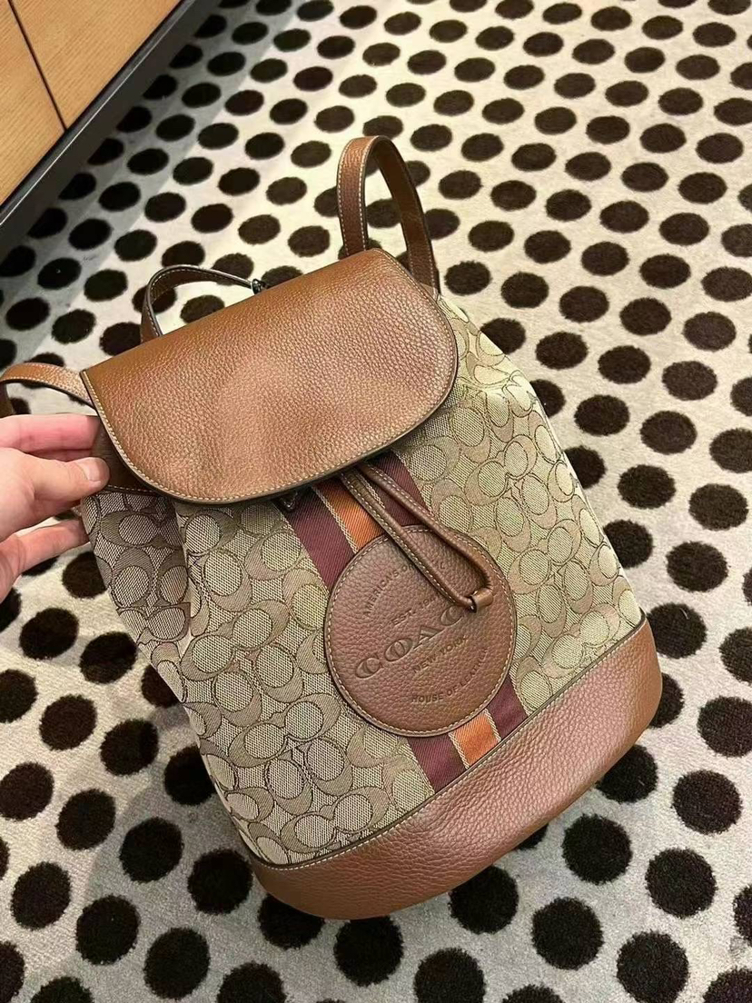 🇺🇸1350包邮!Coach新款dempsey双肩包,中号尺寸大约30.5×26cm,翻盖吸扣抽绳设计,帆布拼接牛皮材质,大小合适,轻便好看又实用。