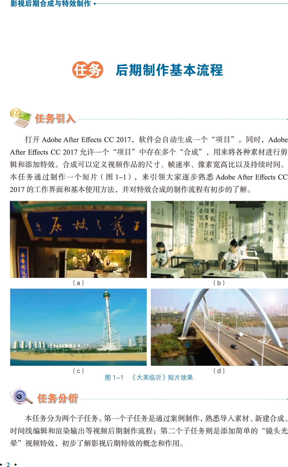本书主要介绍Adobe公司推出的专业影视后期特效软件Adobe After Effects的使用方法和制作技巧。通过职业院校学生学习和实训,可以使其掌握影视项目的基本制作流程以及三维动画、文字动画、蒙版抠像、跟踪稳定等常用特效的制作方法。本书运用先进的AR/VR技术,用手机扫描书中识别码,即可呈现识别码对应的动画等数字化资源。