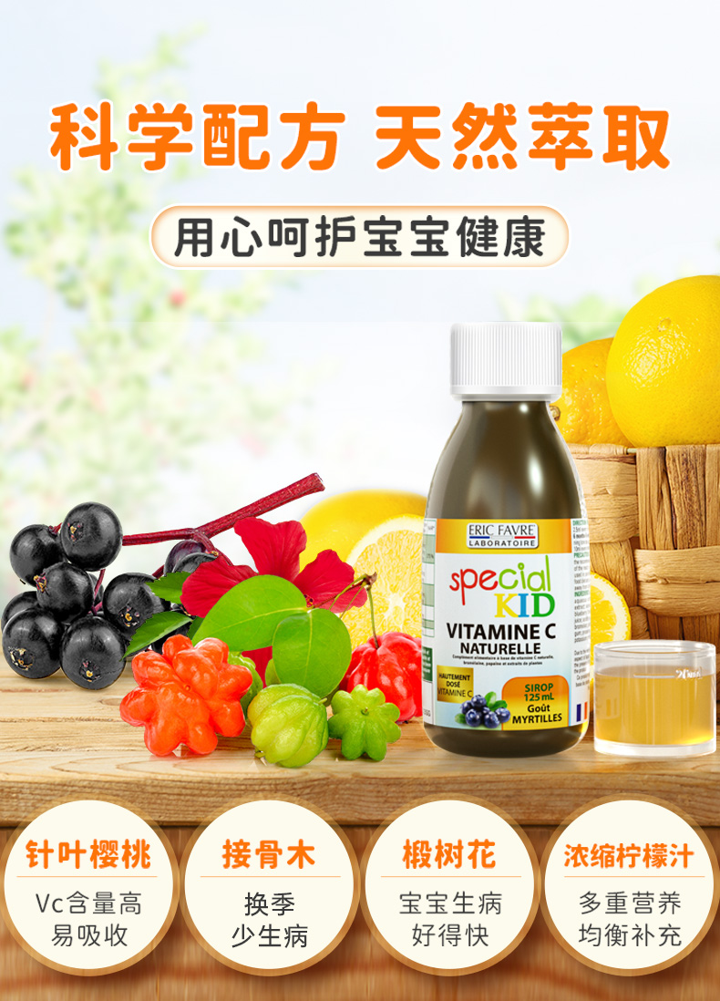 法国ERIC FAVRE艾瑞可 维生素C接骨木营养液125ml|保税
