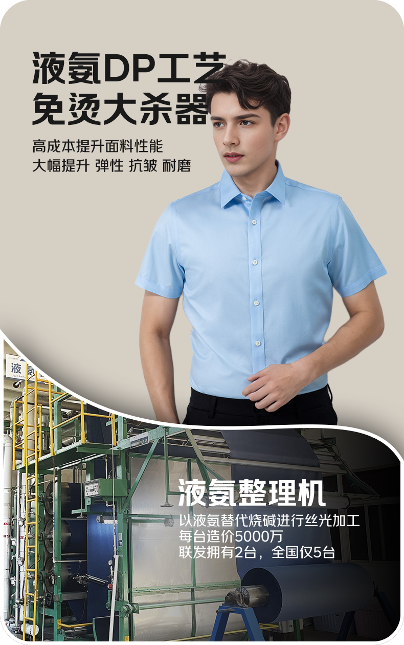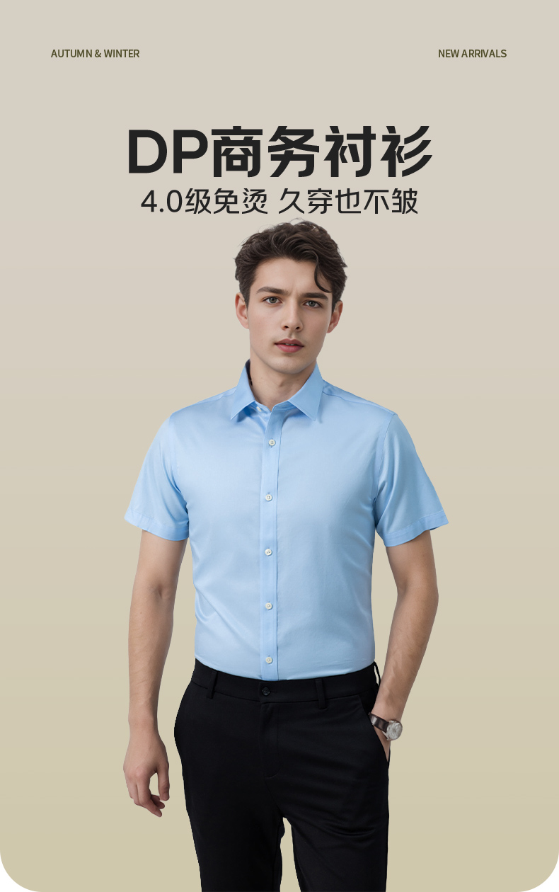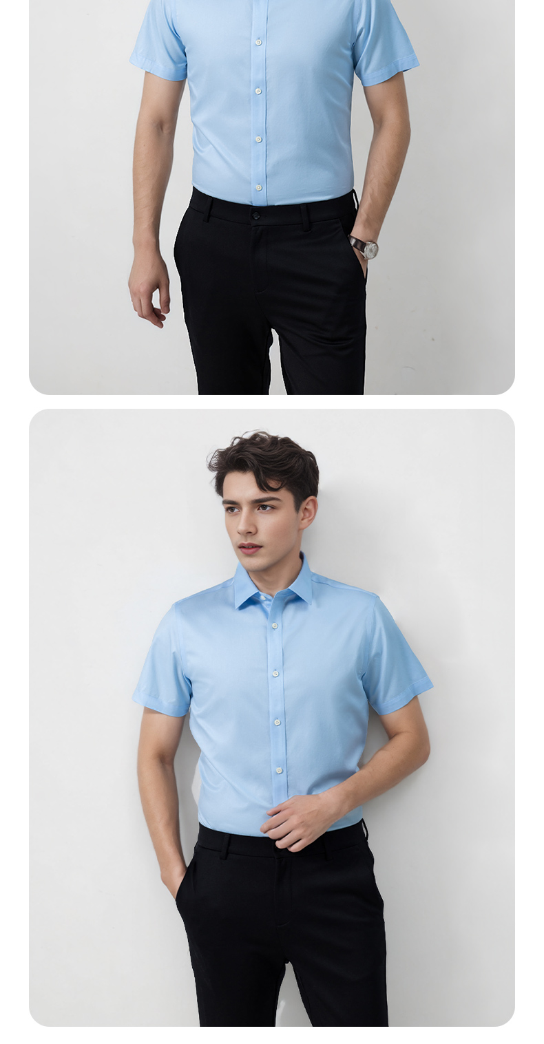 【高支长绒棉DP免烫短袖 多款多色】夏季光泽质感纯棉联发男士衬衣短袖衬衫