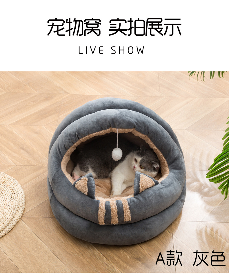 【宠物用品】-半封闭猫窝狗窝 四季舒适加绒宠物窝 不可拆