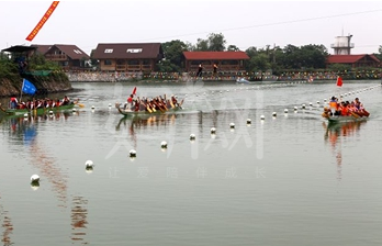 3、游戏安排:专业教练指导,集体玩“破冰”游戏——龙舟赛(家长参与,小朋友加油)