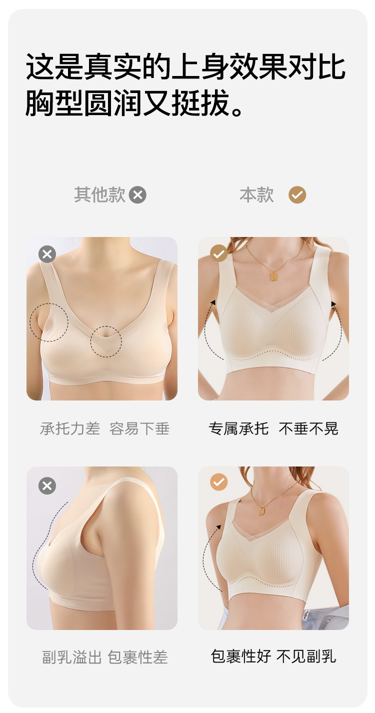 反重力提拉聚拢防下垂美背内衣女舒适运动文胸罩背心式轻氧无感2件装