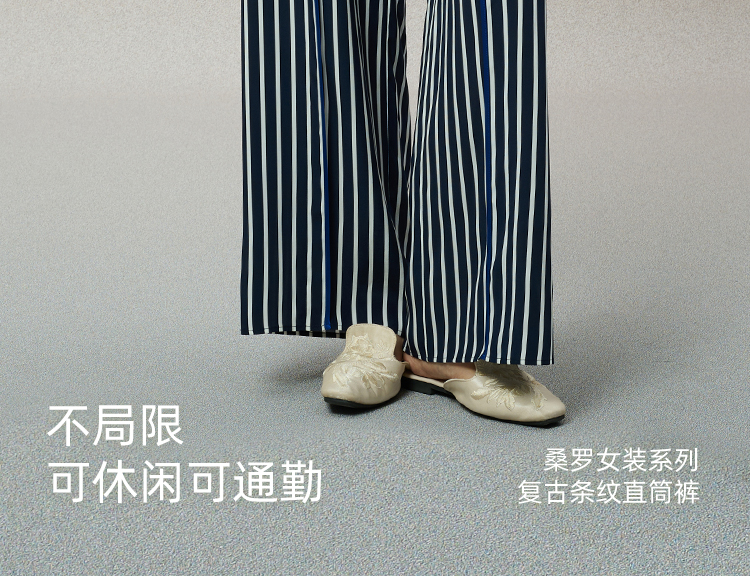 【免烫哑光真丝】桑罗阔腿裤女25年春季新款时尚条纹100%桑蚕丝长裤