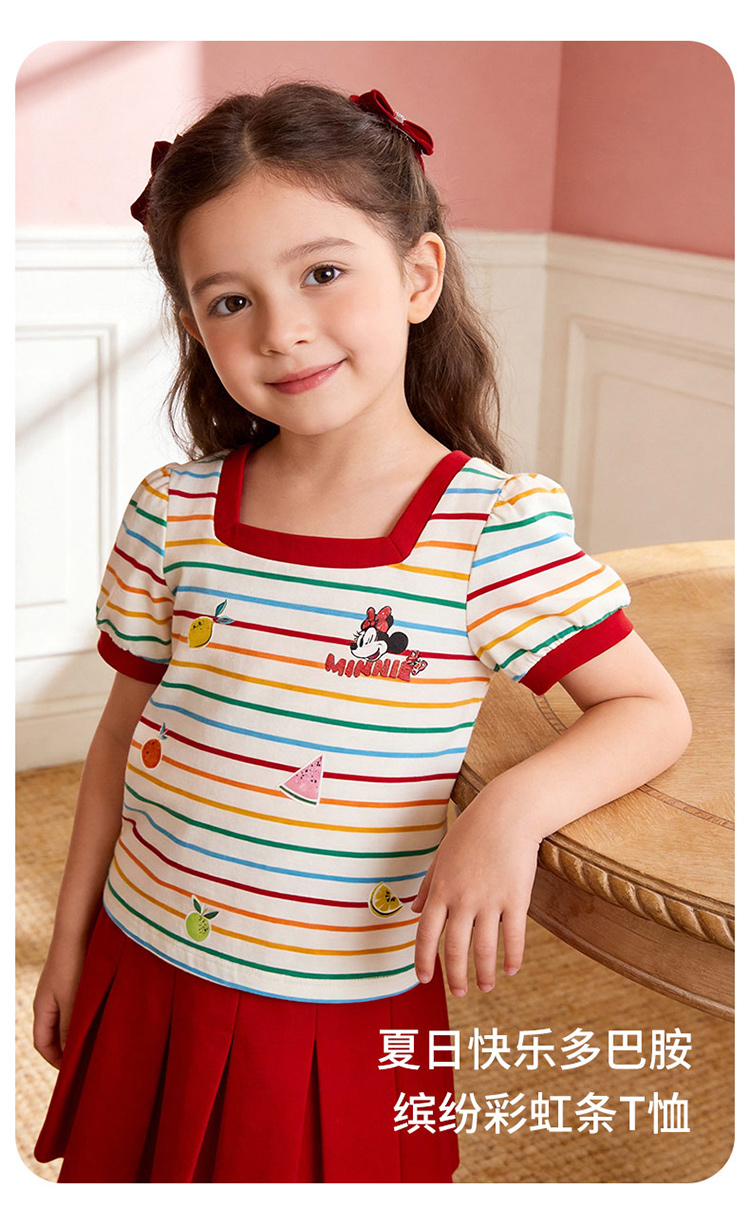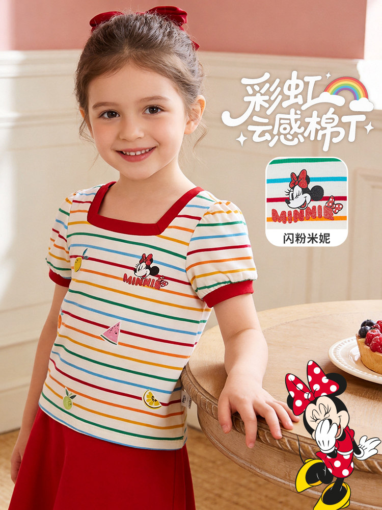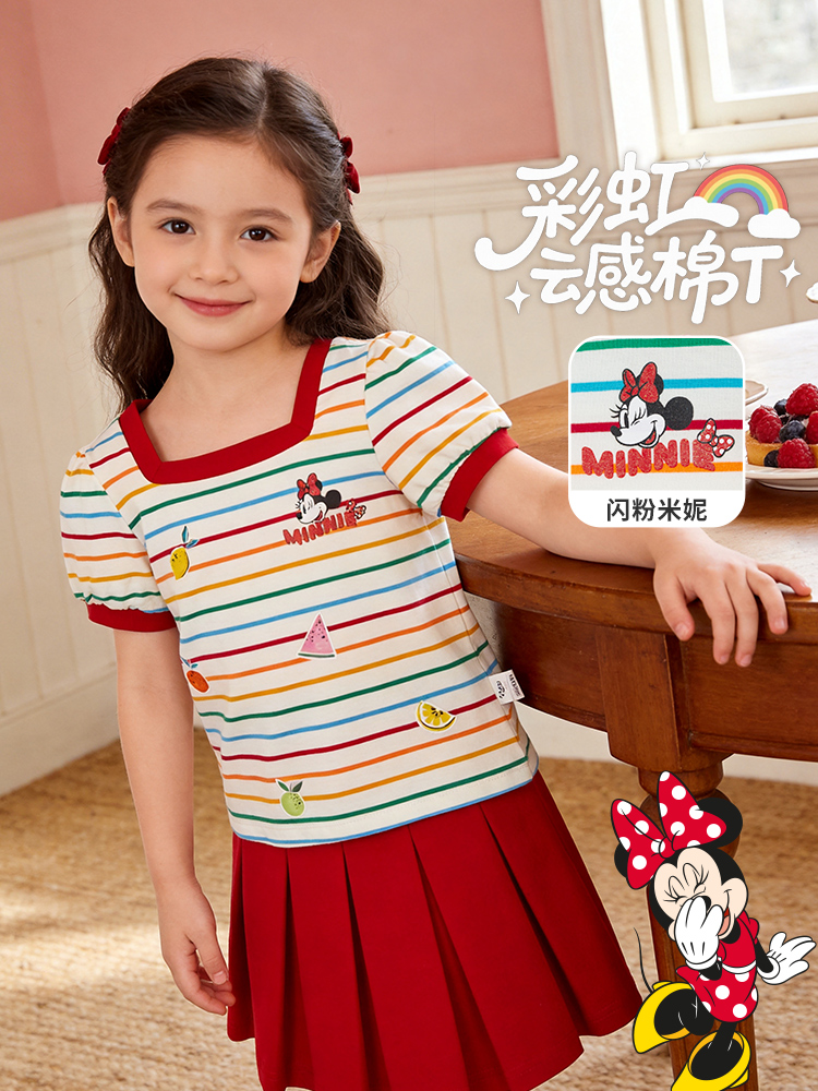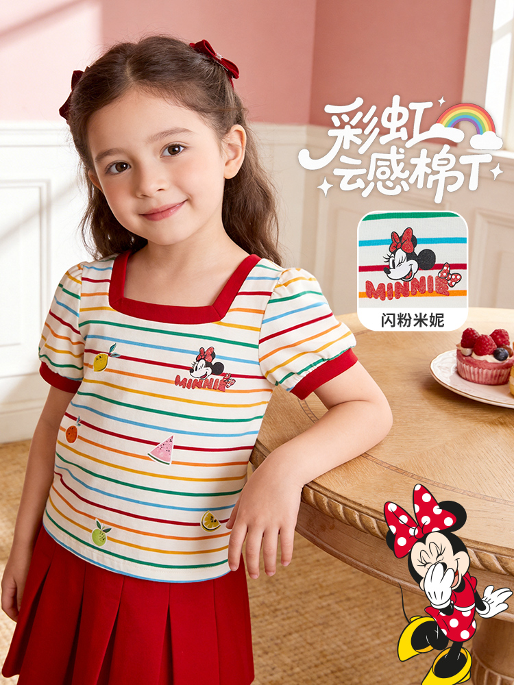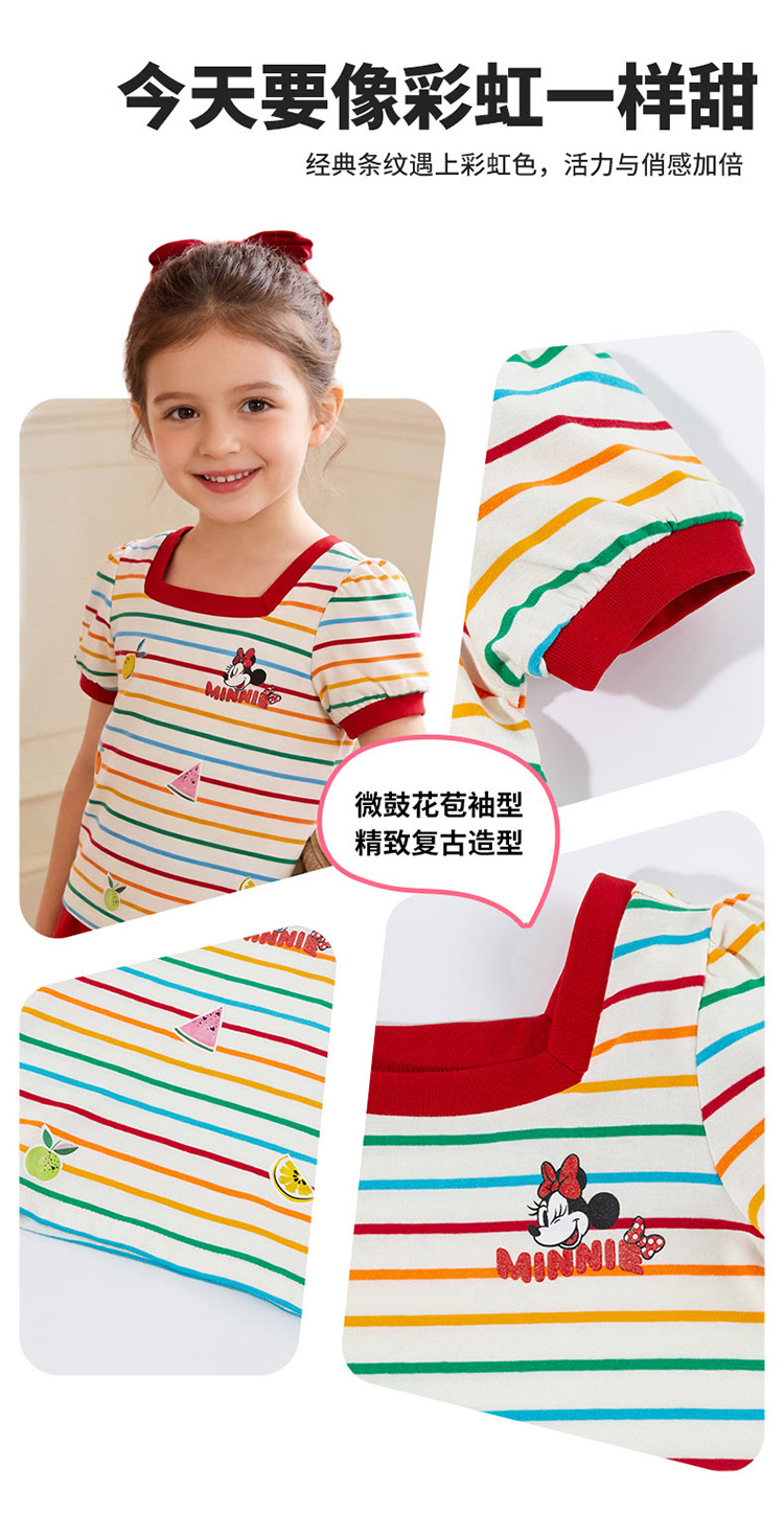 迪士尼夏日彩虹条米妮女童短袖T恤XD2ES052