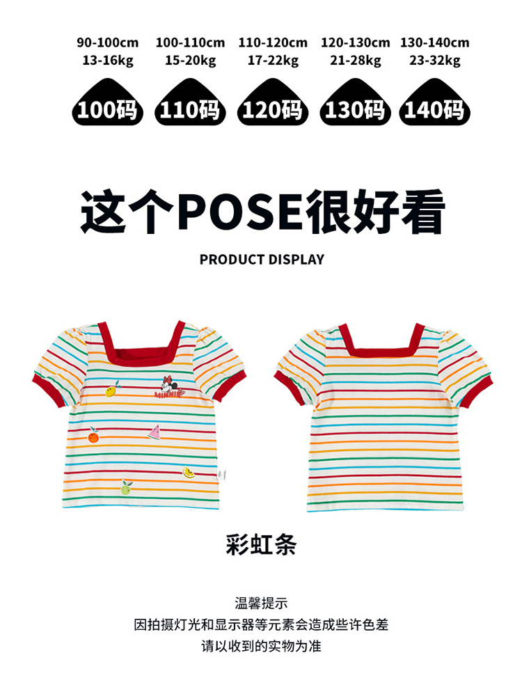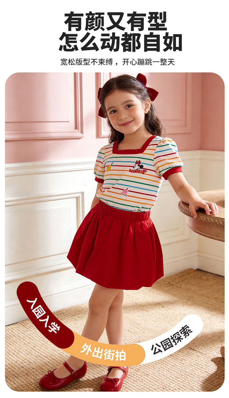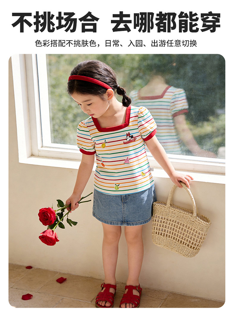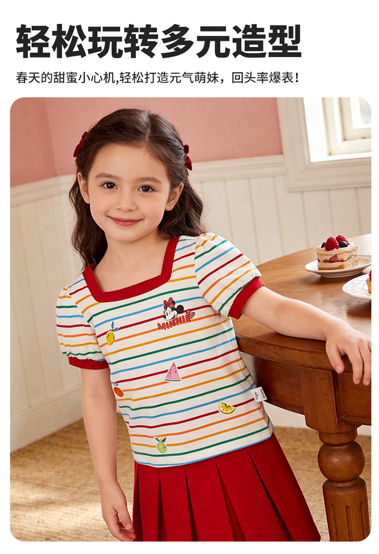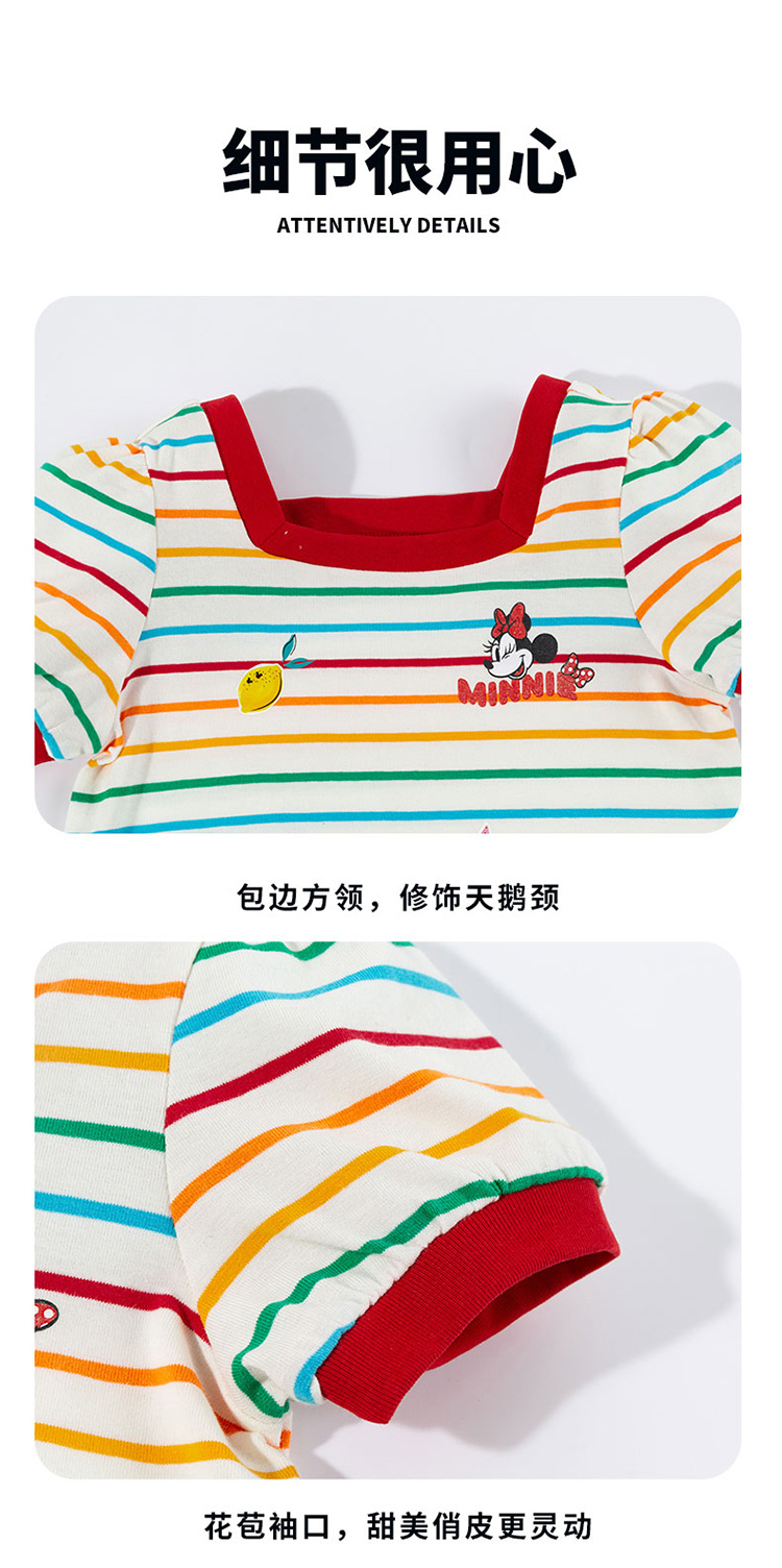 迪士尼夏日彩虹条米妮女童短袖T恤XD2ES052