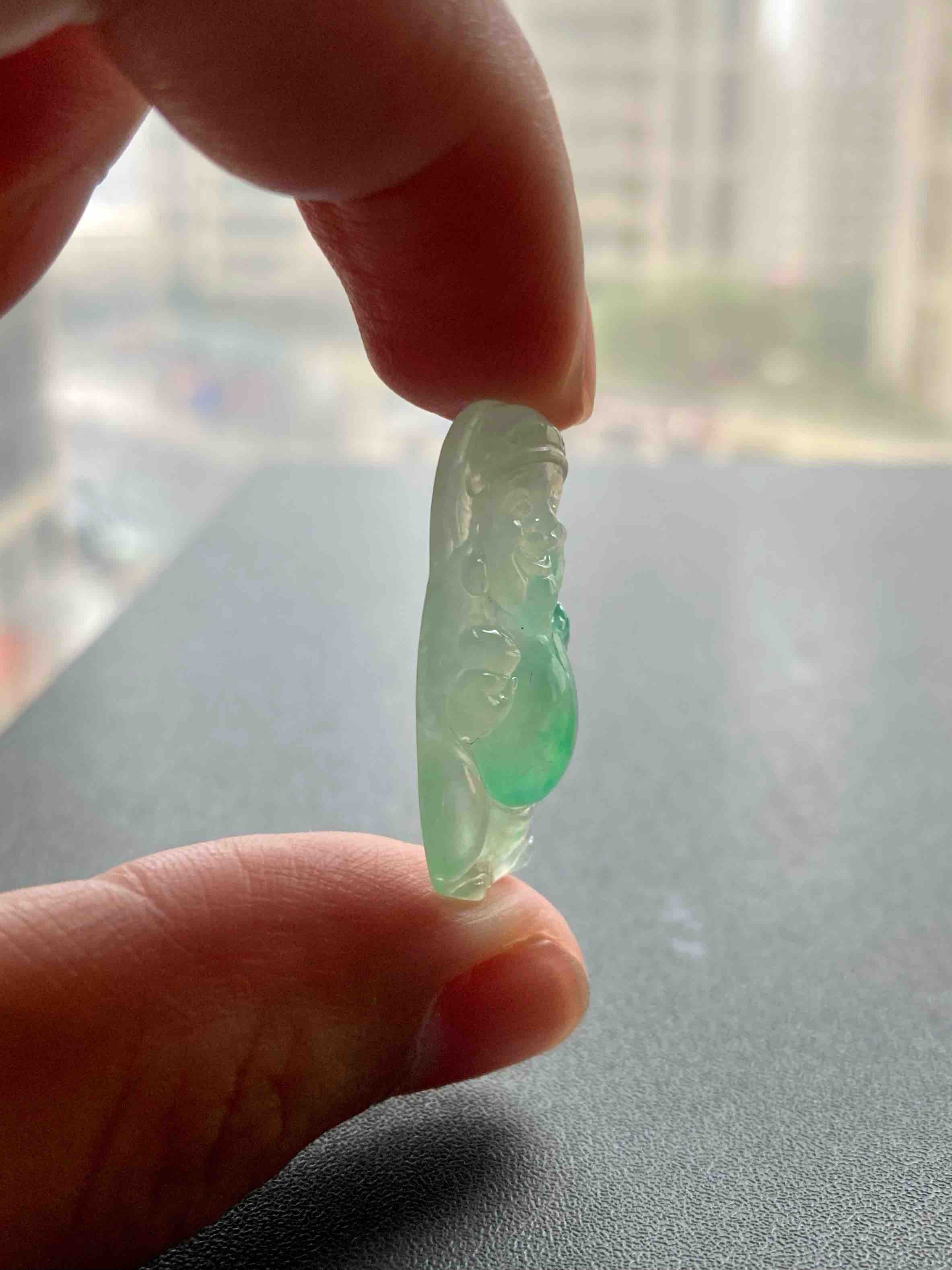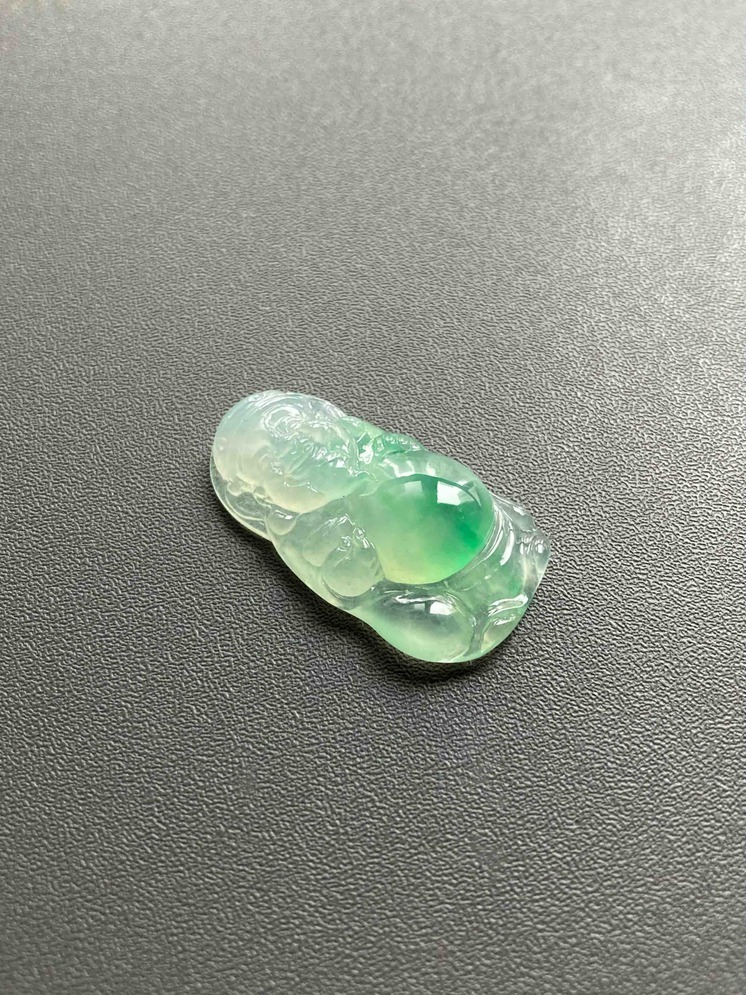 招财进宝也要比别人的特别一点,见过这么漂亮的翡翠财神爷吗,高冰种飘阳绿,尺寸大气,雕工精美,种水晶莹剔透,绿色甜美无比,新年添财运,财源滚滚来。