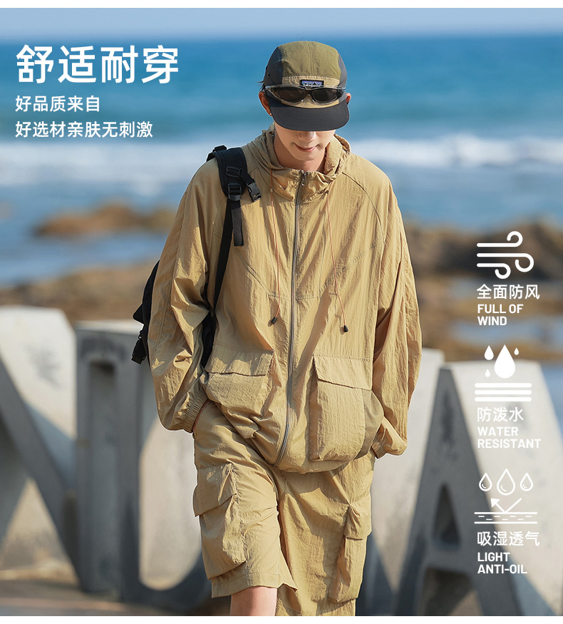 【超值防晒套装】senlinjeepsd情侣山系户外轻量化仿生蝉翼防晒套装 外套A87-DQC621/短裤A87-DQC2201