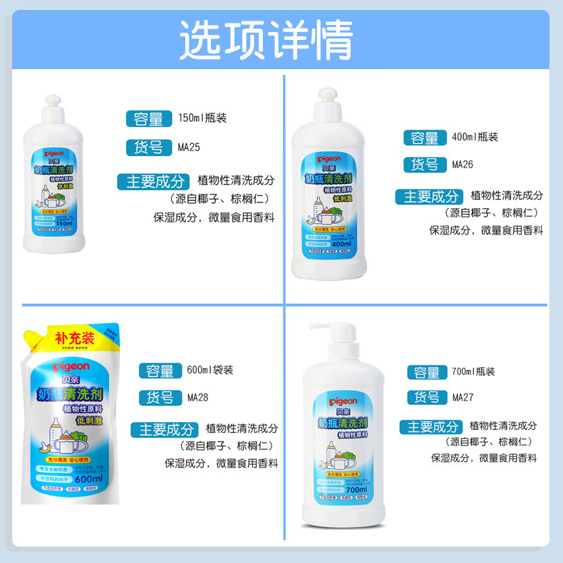 贝亲奶瓶清洗剂 果蔬清洗泡沫 150/400/600/700ml MA25/26/27/28