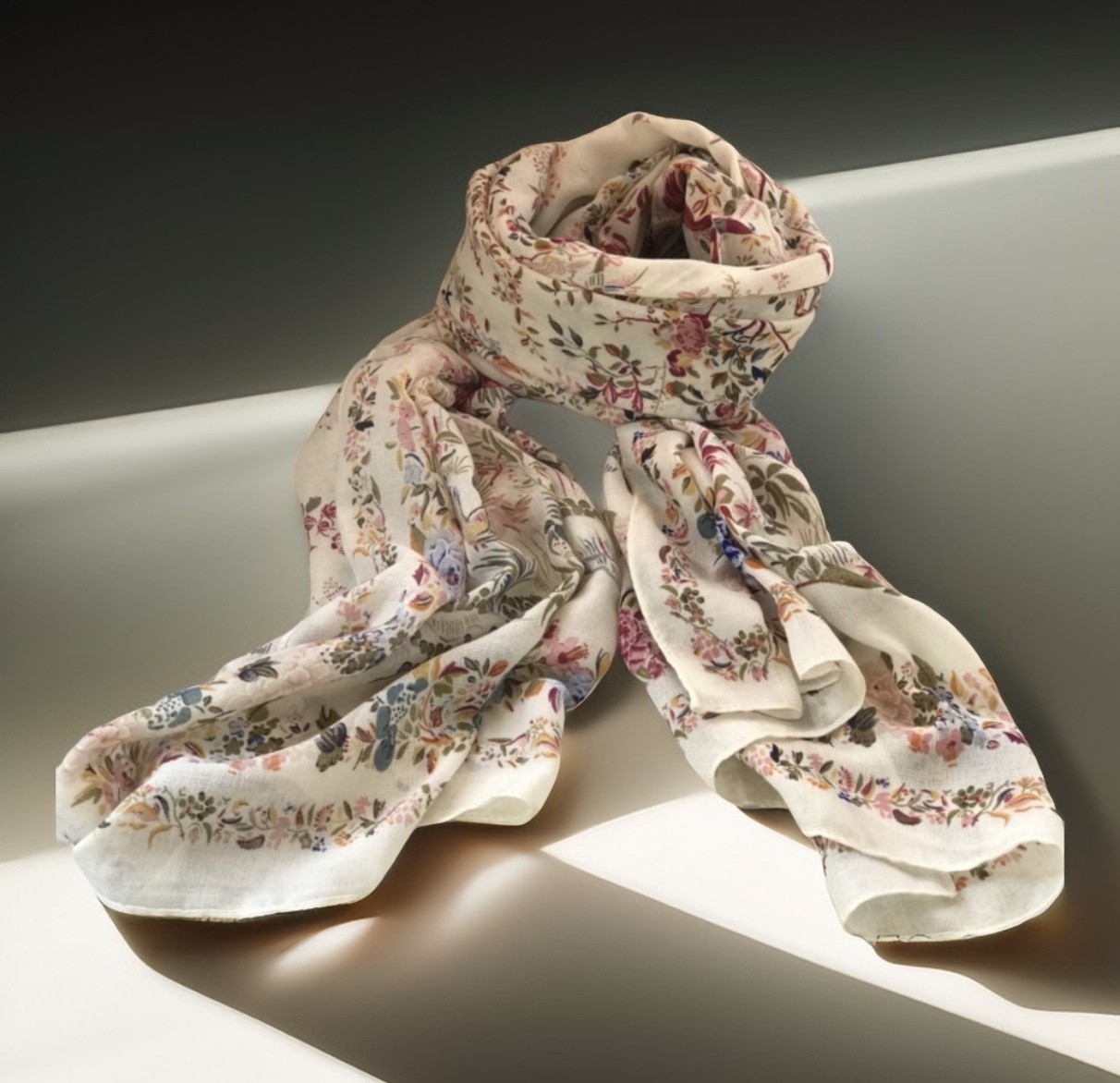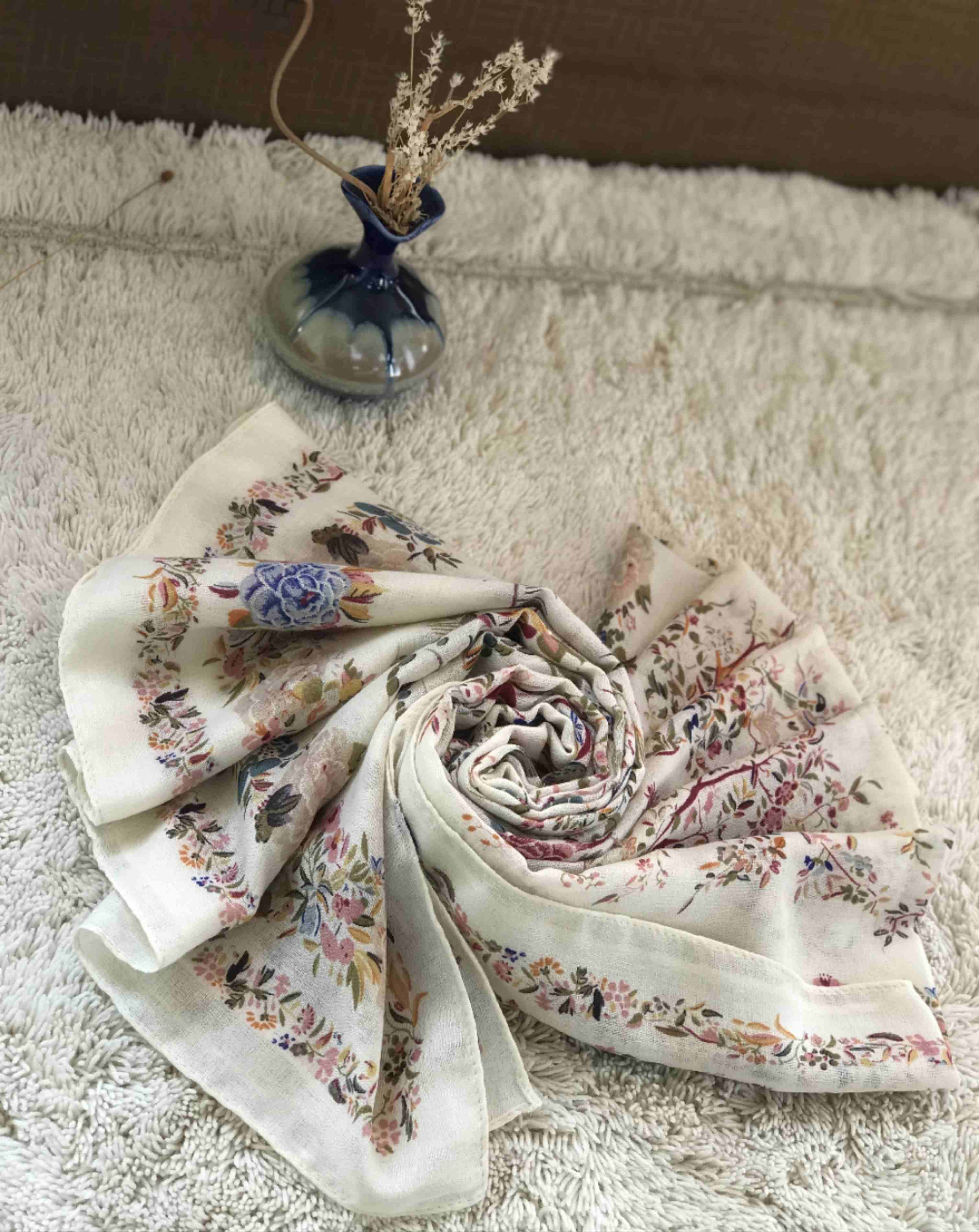 优品堂【花影摇曳】围巾、薄披肩、空调巾三用长巾