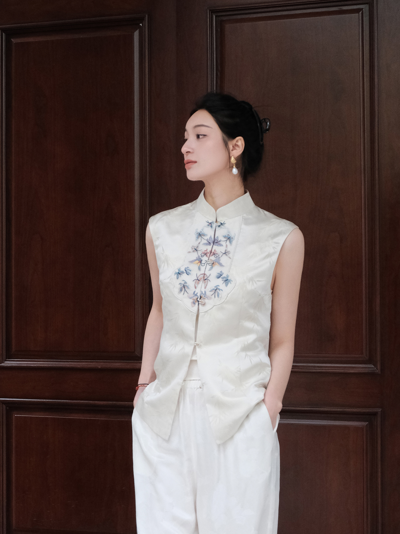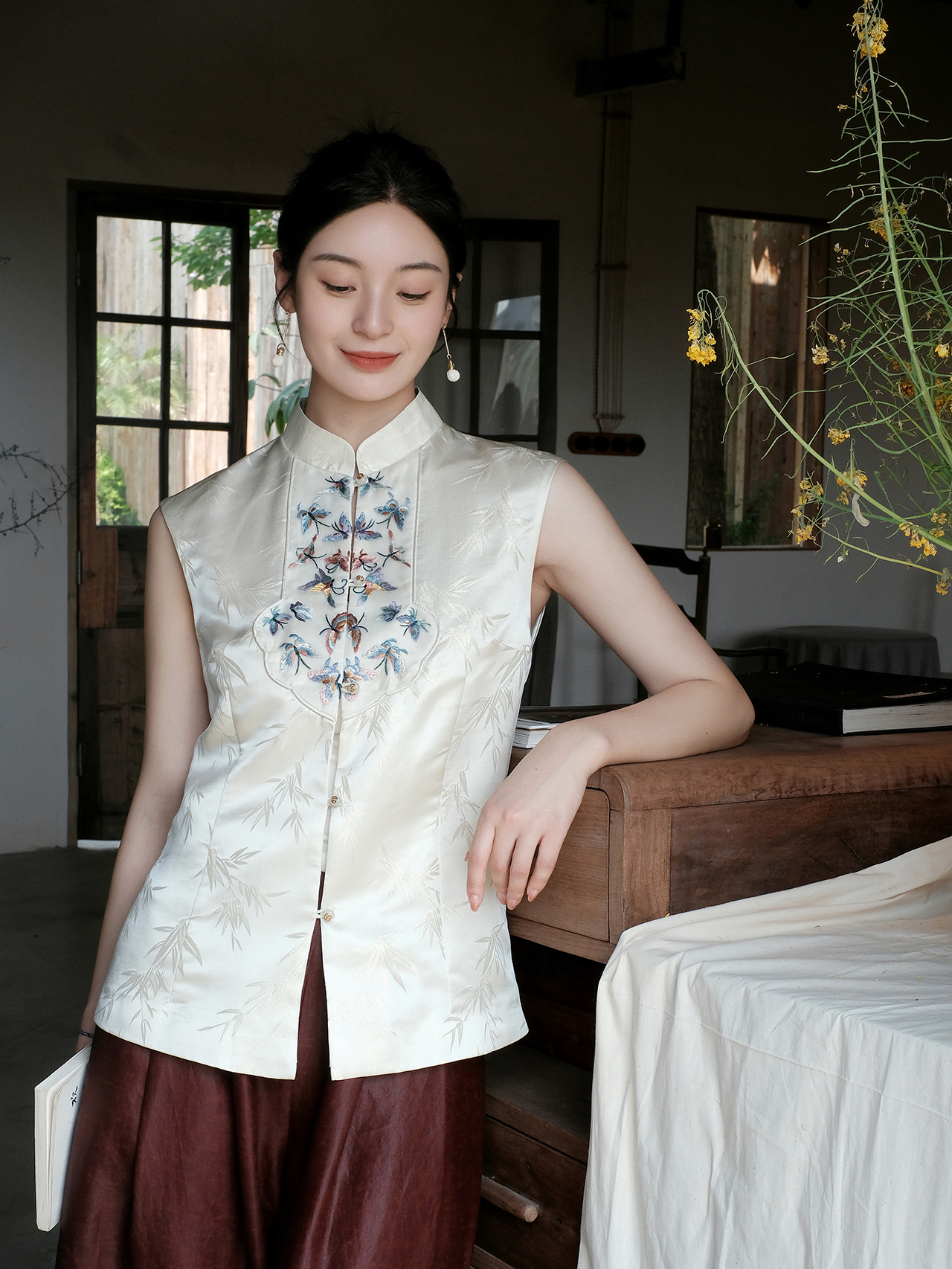 盛唐婧 |花鸟浮雕提花马甲