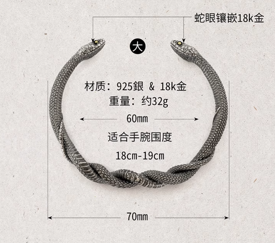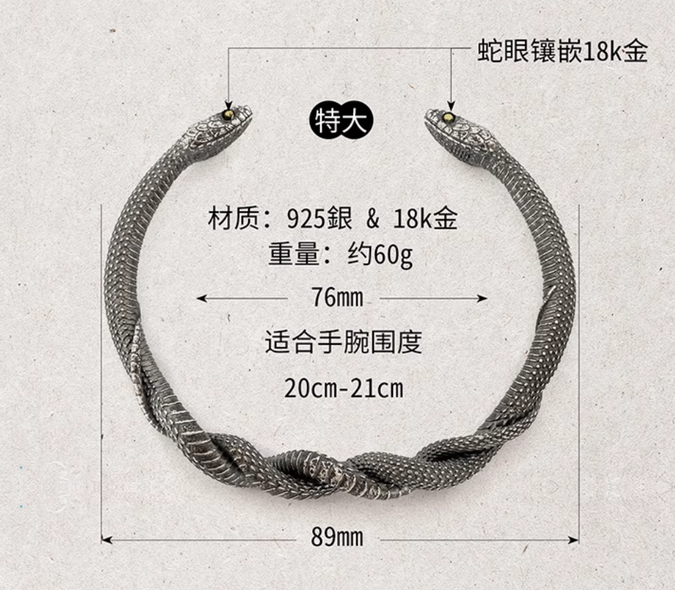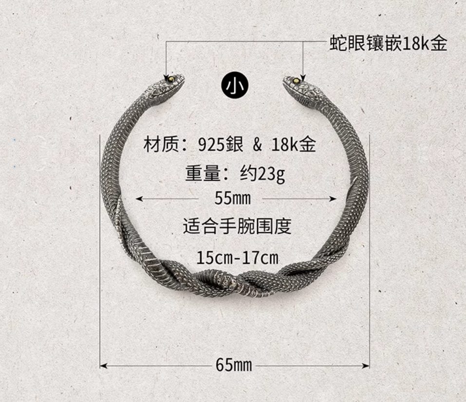 吾蟲-银镶金 双蛇缠绕手环 开口镯 情侣个性复古潮流礼品【官方授权 48小时发货】