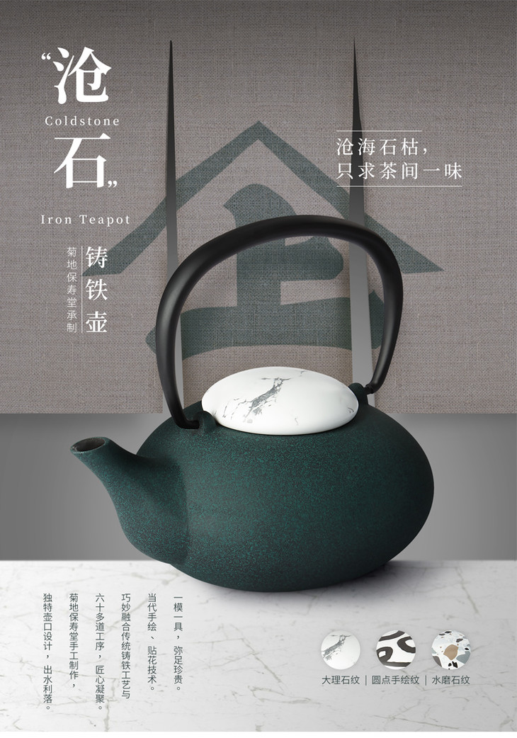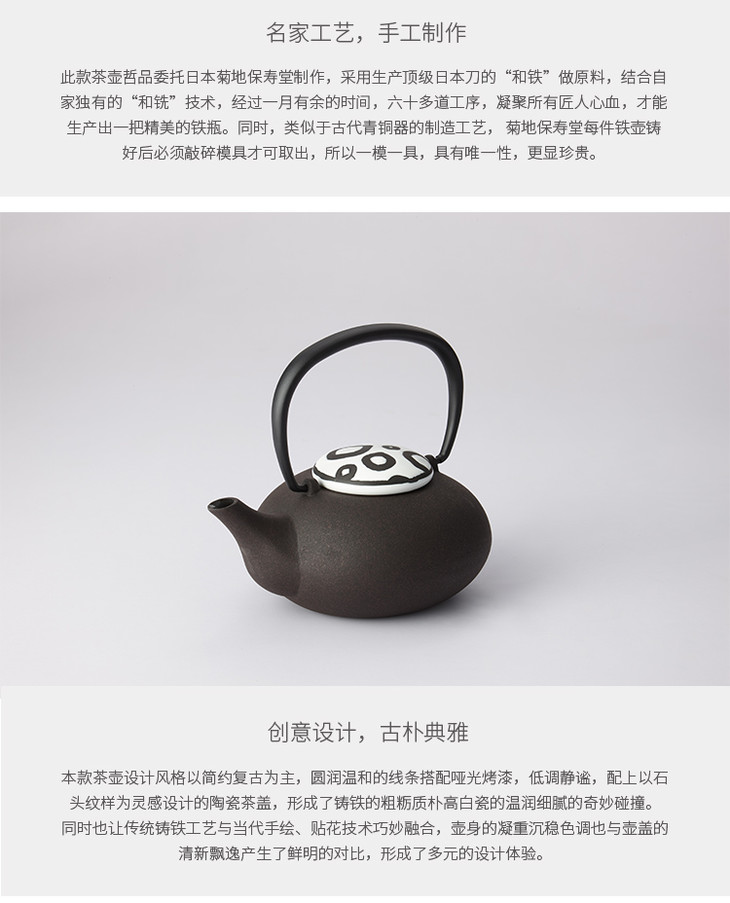 哲品 日本菊地保寿堂定制版铸铁壶-沧石系列