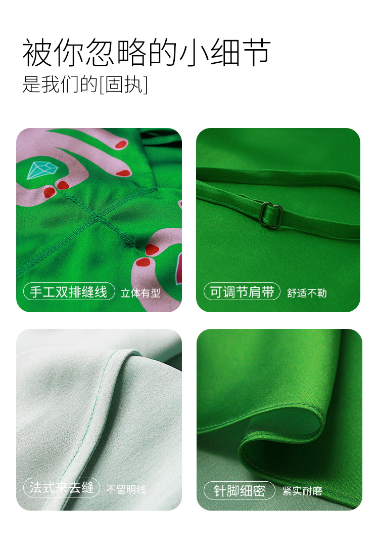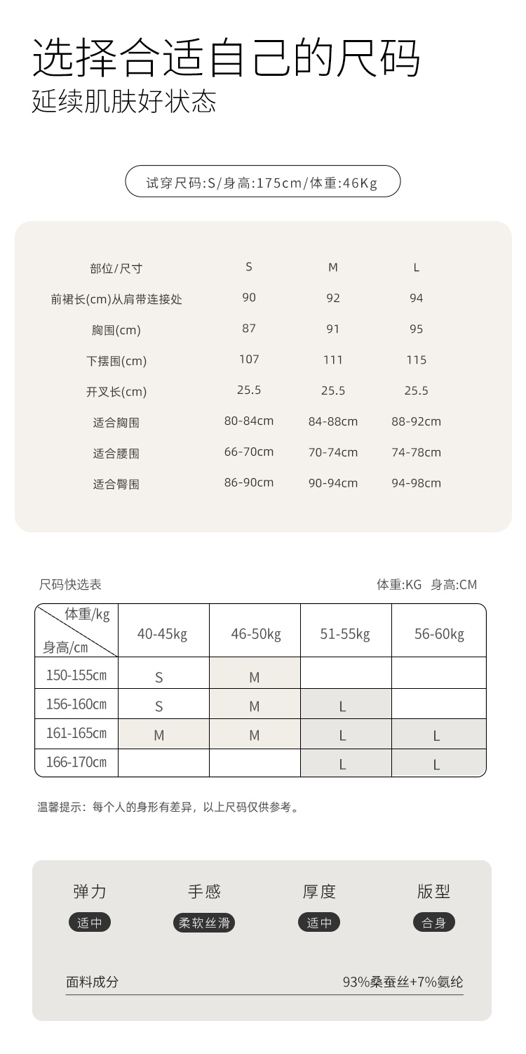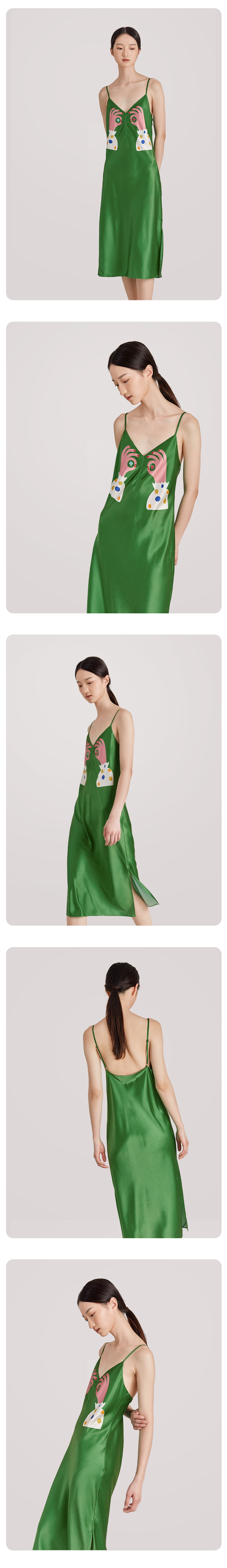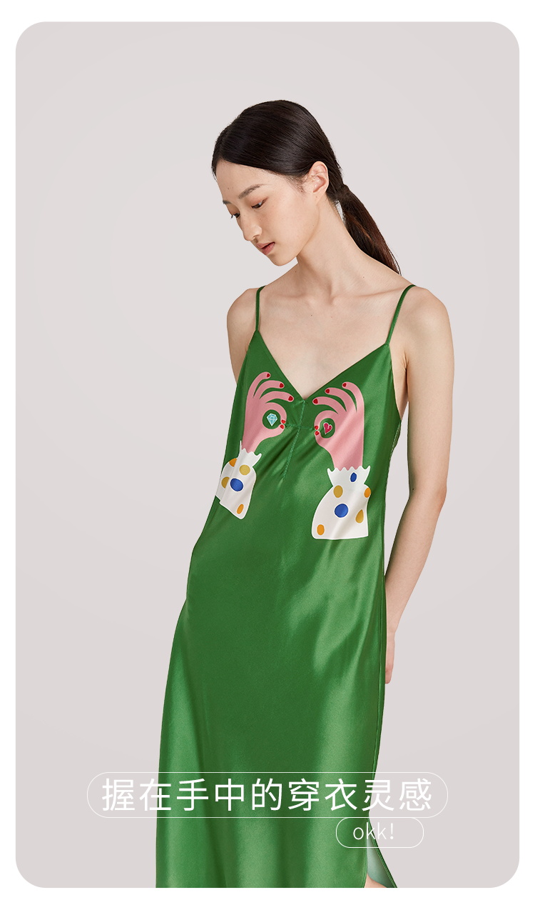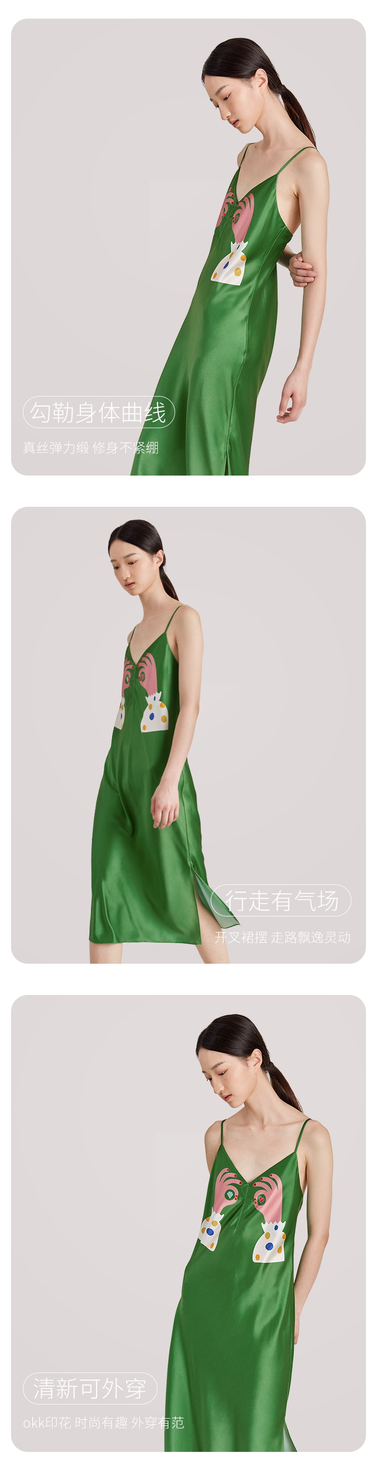 【采】SANGLUO OKK萌趣弹力桑蚕丝睡裙吊带气质修身可出游外穿开叉长裙