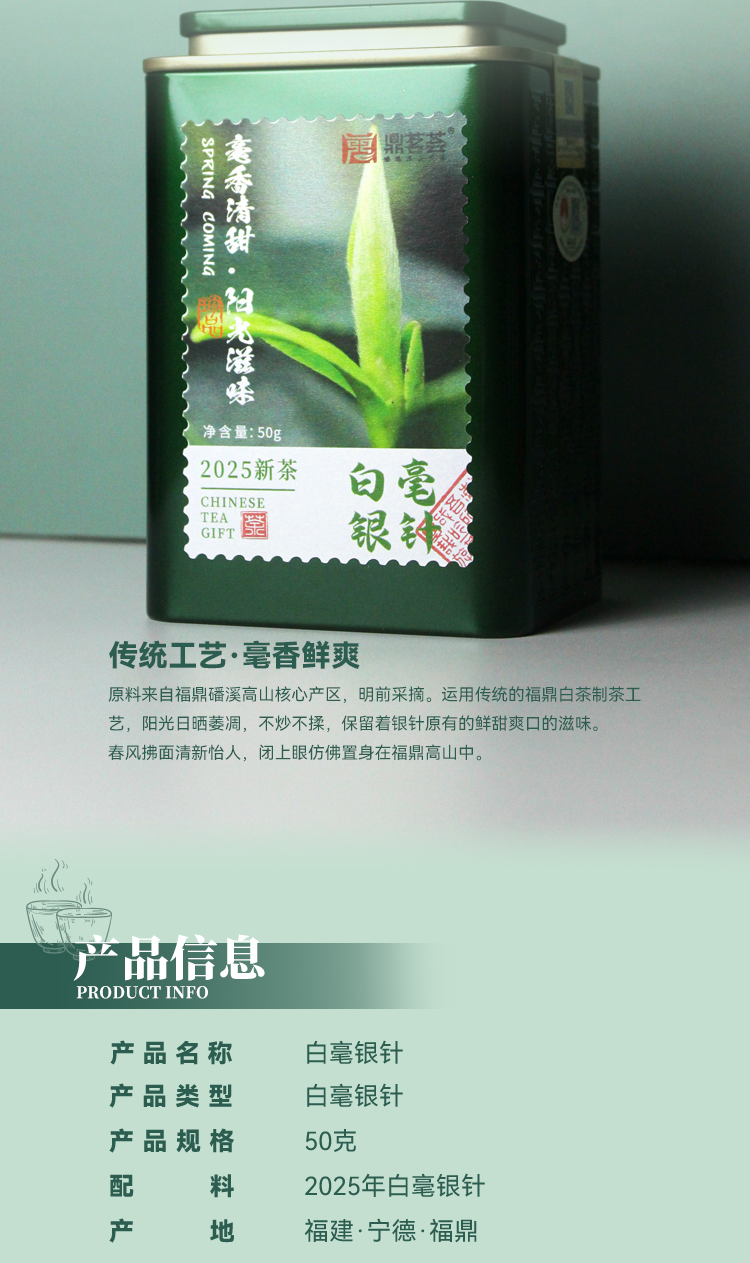 鼎茗荟丨2025年磻溪白毫银针 福鼎白茶 一级 50g/500g
