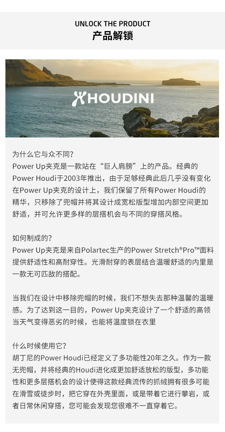 HOUDINI胡丁尼 Power Up Jacket 高阶魔术师户外女立领保暖抓绒衣 830020/830067